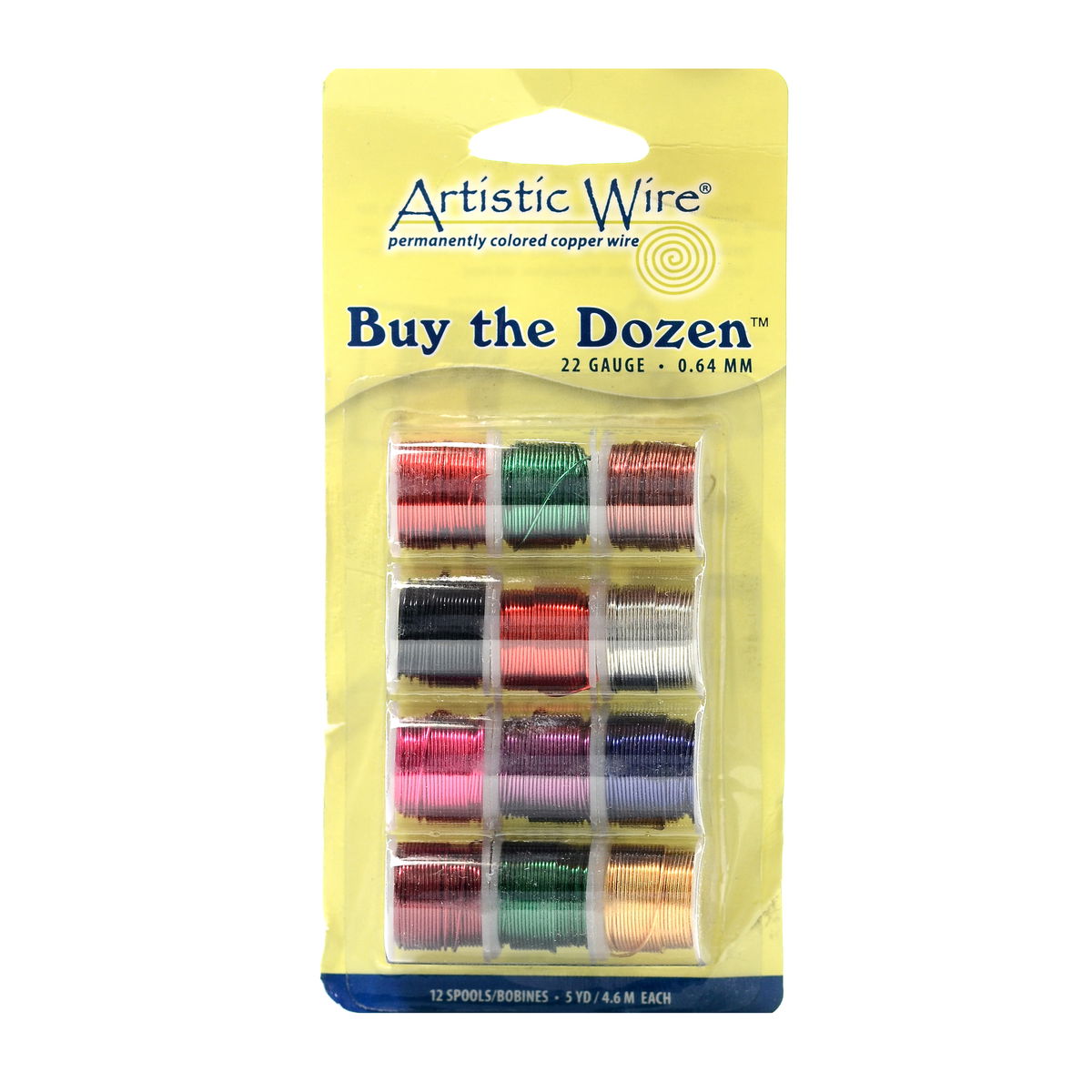 Paquete de 12 bobinas de alambre de cinco yardas en colores surtidos. Artistic Wire es un alambre de cobre redondo, de calibre fino y color permanente, perfecto para manualidades. Es fácil de doblar y conserva su forma, creando bucles y curvas redondeadas para crear hermosas joyas, artículos de decoración para el hogar, manualidades de papel, regalos o cuentas de alambre. Artistic Wire está disponible en una variedad de colores y calibres para todo, desde delicados encajes hasta cestería. Artistic Wire es resistente a rayones, descascarillado y desgaste gracias a su proceso especial de esmaltado. Tras aplicar el esmalte, el alambre recibe una capa transparente para evitar el deslustre. Los juegos de alambres plateados de calibre 22 y 24 contienen: orquídea, melocotón, azul pavo real, rosa, azul plata, fucsia, verde espuma de mar, plata que no se deslustre, mandarina, limón, verde Navidad y azul hielo. Los juegos de alambre plateado de calibre 26 contienen: oro, blanco, amatista, lila, ciruela, azul pavo real, rosa, limón, azul plateado, plata inoxidable, mandarina, verde espuma de mar. Los juegos de alambre regulares (los 3 calibres) contienen: aguamarina, azul oscuro, marrón, verde Kelly, natural, morado, rojo, clara de huevo, burdeos, bronce, cobre estañado y latón inoxidable. Nota: Los colores del juego pueden variar.