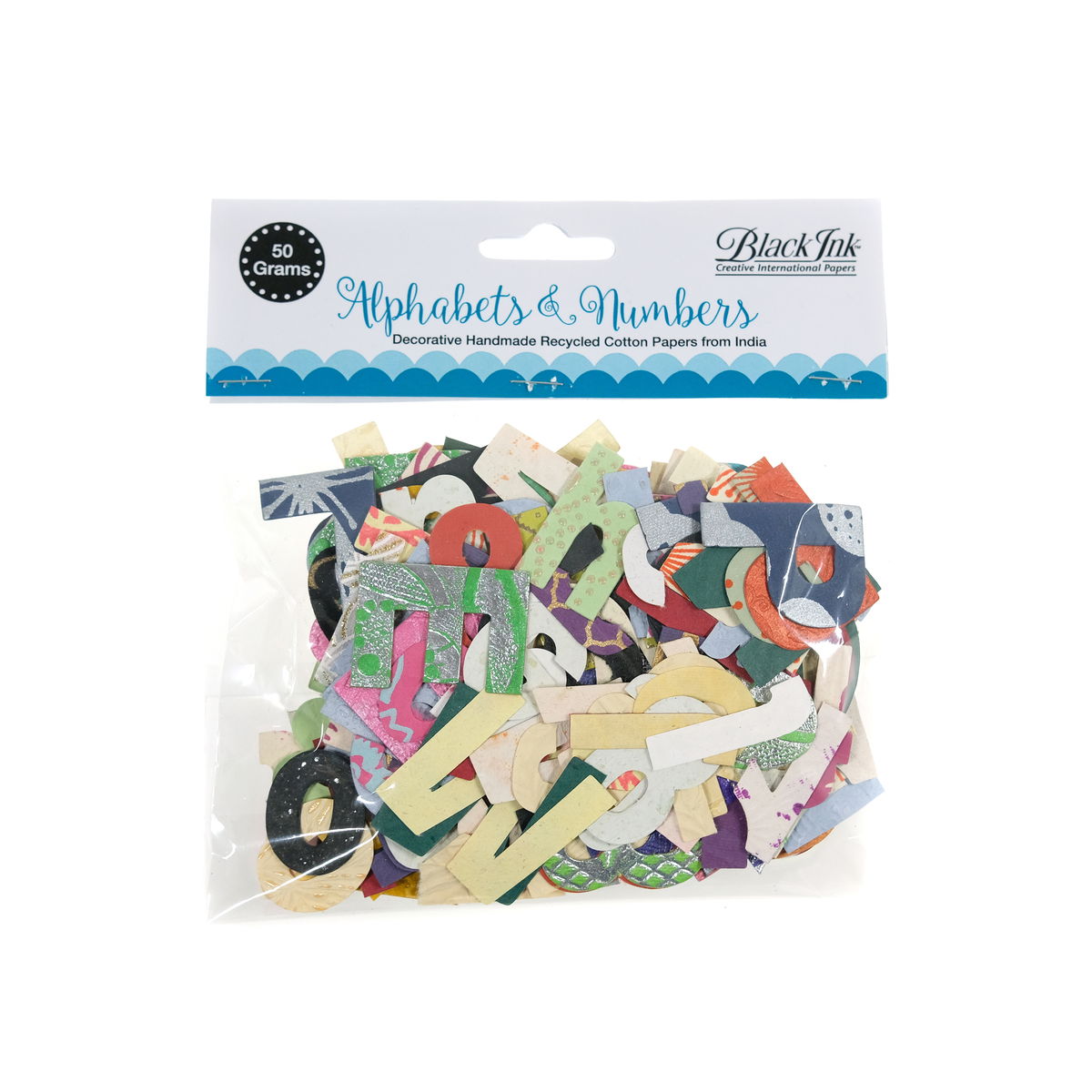 La variedad es fundamental en la práctica. La superposición de piezas transparentes crea profundidad sin volumen; las superficies en relieve captan la luz y añaden dimensión; los patrones serigrafiados ofrecen un interés visual inmediato. Las fibras de algodón se adaptan mejor a los soportes húmedos que los papeles de pulpa de madera, ya que aceptan adhesivos y acrílicos diluidos sin disolverse ni deformarse excesivamente. Los paquetes de Formas y Recortes de Papel vienen en cuatro gramajes, lo que ofrece opciones desde delicadas superposiciones hasta elementos focales sustanciales. Los paquetes de Alfabetos y Números, disponibles en dos gramajes, ofrecen formas de letras prefabricadas para trabajos con texto sin la molestia de cortar caracteres individuales.
