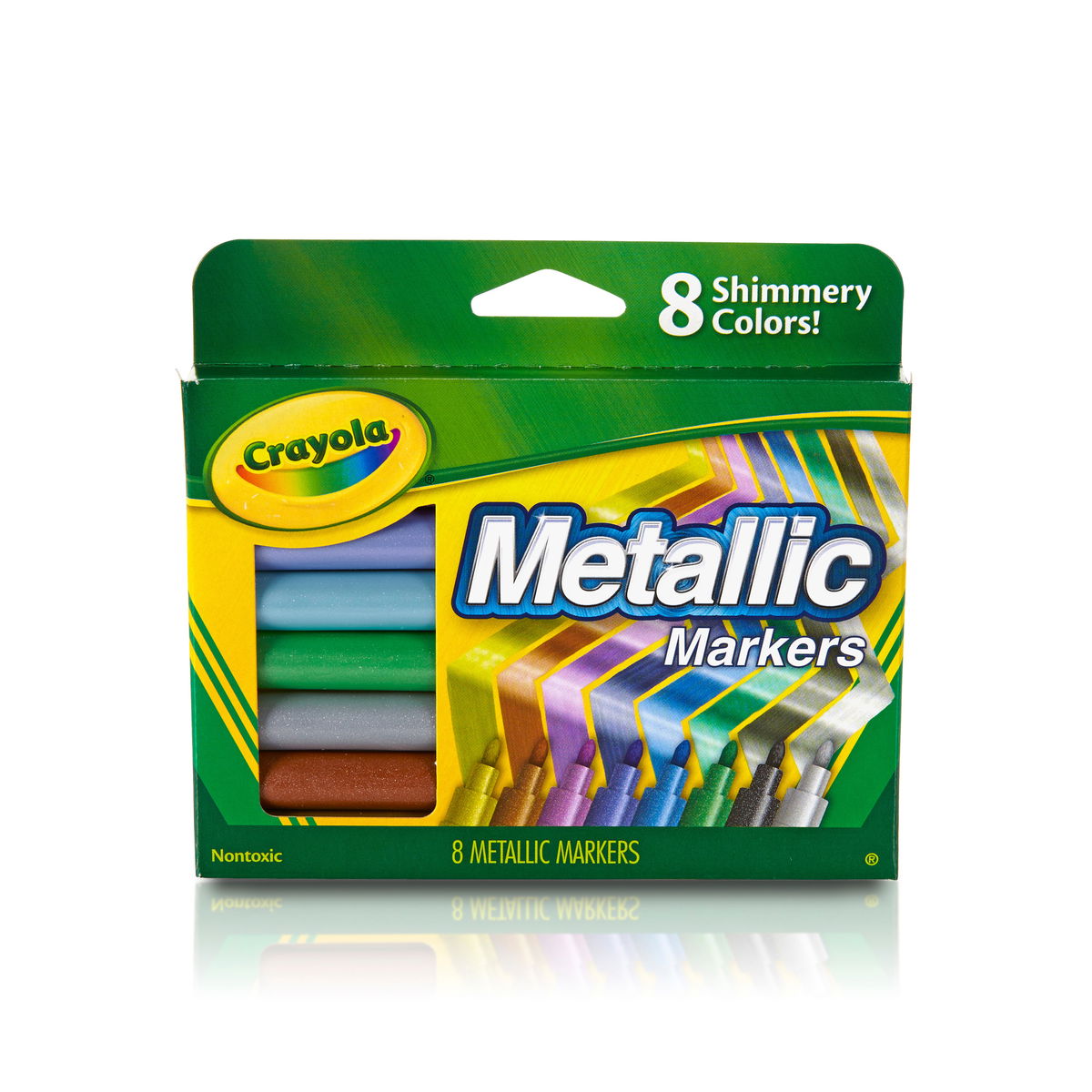 El brillo metálico transforma los dibujos planos en obras de arte dimensionales. Estos marcadores ofrecen un brillo auténtico sin la suciedad de los metálicos líquidos. Los marcadores metálicos Crayola ofrecen un color opaco y reflectante que capta la luz como el metal real, realzando las letras en cartulina oscura y añadiendo detalles acentuados a las piezas de técnica mixta. Las puntas redondas mantienen su forma con el uso constante, permitiendo tanto trazos amplios como trabajos con detalles moderados sin deshilacharse.