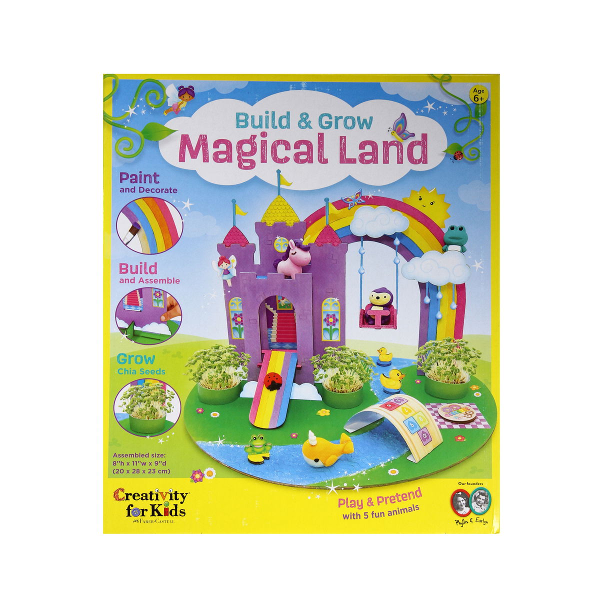 ¡Construye y cultiva un encantador hábitat de jardín! Los accesorios de madera en miniatura vienen listos para ensamblar y decorar. Los niños pueden jugar con las figuras de animales incluidas y cultivar un huerto de semillas de chía. A partir de 6 años.