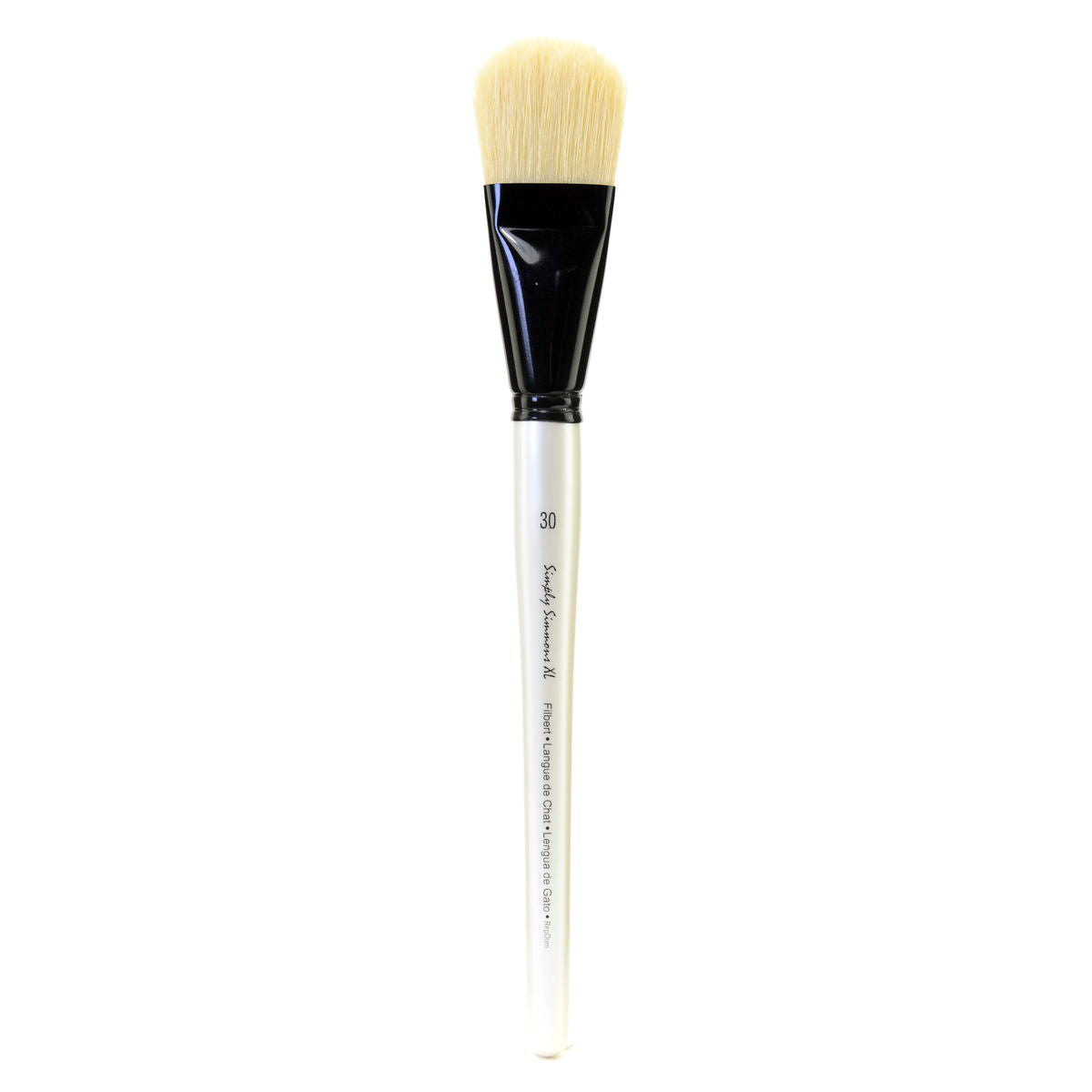 Tres tipos de cerdas distintas satisfacen diferentes necesidades técnicas. El Oro Sintético Suave maneja colores fluidos y medios a base de agua, ideal para lavados amplios y superficies lisas donde se necesita cobertura sin fricción. El Borgoña Sintético Rígido maneja colores densos y trabajos de empaste, manteniendo la elasticidad bajo carga en superficies rugosas. El Cerdo Natural se utiliza principalmente para pintores al óleo, pero también es igualmente eficaz con acrílicos, gesso y barniz en cualquier superficie. Cada tipo de cerda está disponible en cinco tamaños: 30, 40 y 50 en la gama XL; 60 y 70 en la gama XXL.