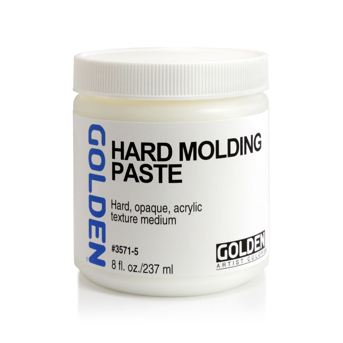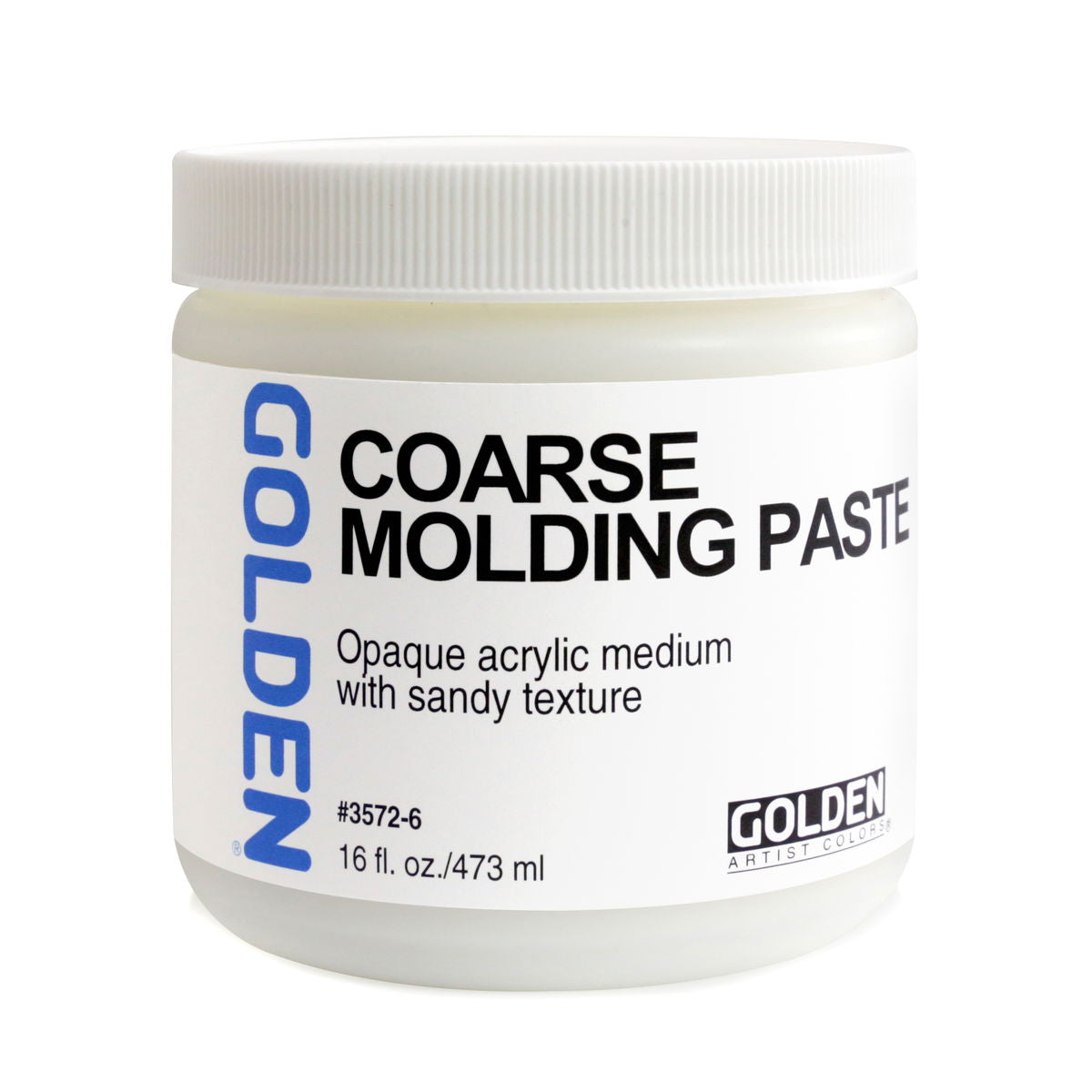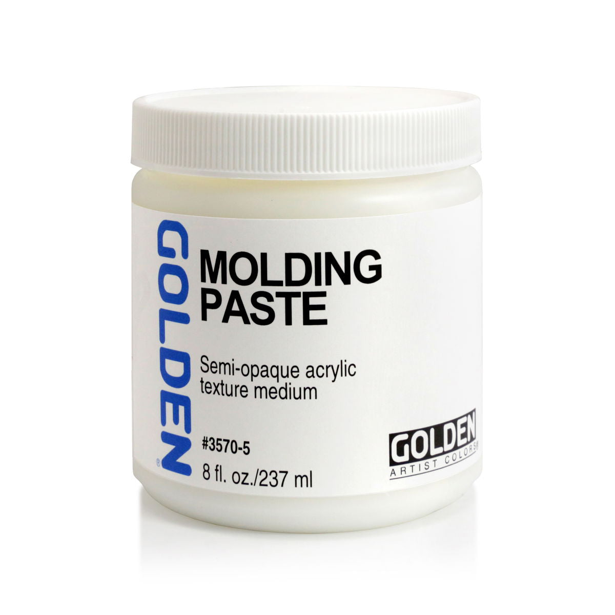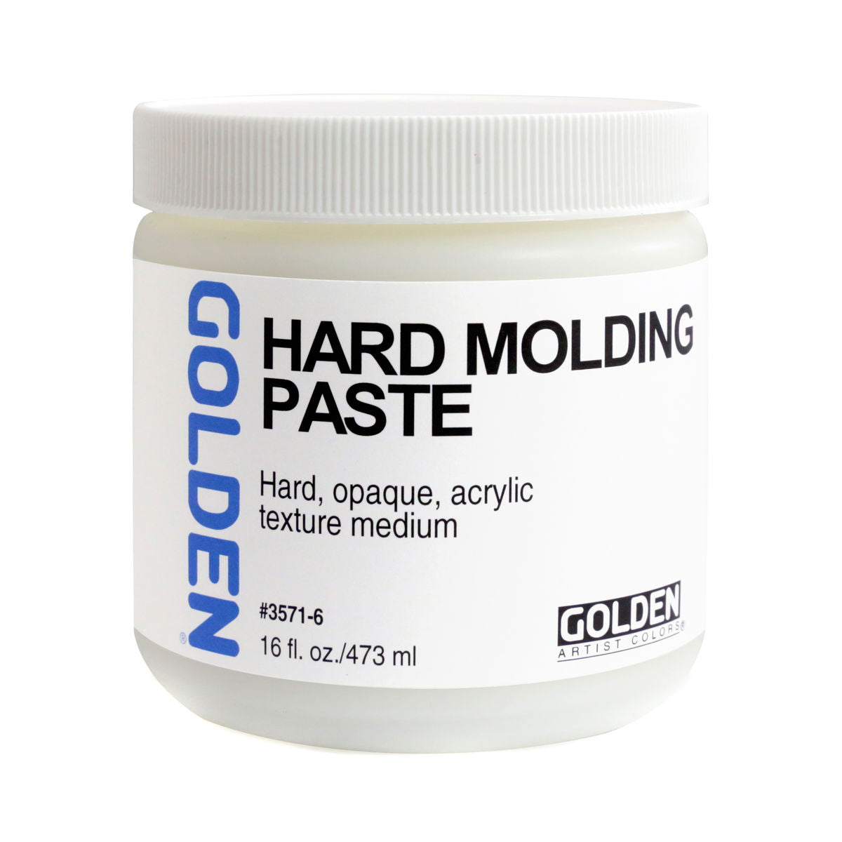 La Pasta de Moldeo Estándar establece la base: polvo de mármol suspendido en un medio acrílico que crea una textura sustancial a la vez que mantiene su flexibilidad. La superficie seca admite el tallado y el lijado sin agrietarse, ideal para trabajos de relieve que requieren manipulación. Mézclala directamente con acrílicos Golden para crear un color texturizado, o aplica blanco y pinta encima una vez seco.