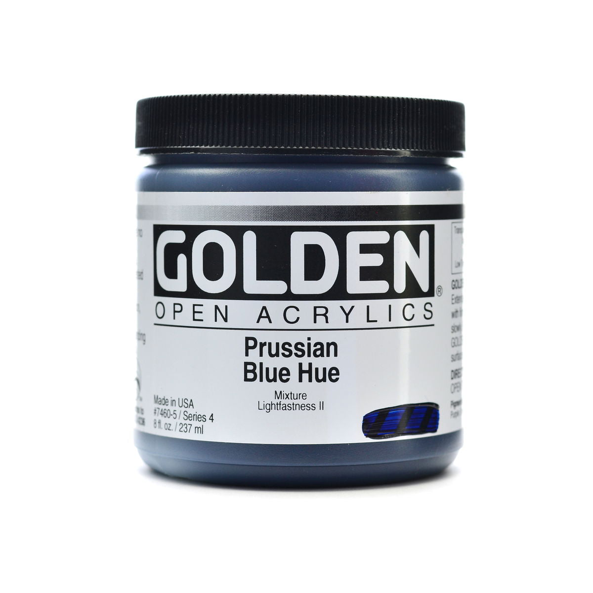 Las paletas cubiertas o los recipientes sellados permiten usar los colores mezclados durante semanas, eliminando la frustración de desperdiciar mezclas personalizadas y permitiéndote retomar la misma precisión de color en varias sesiones. Difumina con pinturas Golden Heavy Body o medios en gel cuando necesites que las secciones se sequen más rápido. Pinta sobre superficies absorbentes para acelerar el secado o sobre superficies selladas para prolongar el tiempo de trabajo. Simplemente evita aplicar capas de productos de secado rápido sobre pintura húmeda ABIERTA para evitar irregularidades en la superficie.