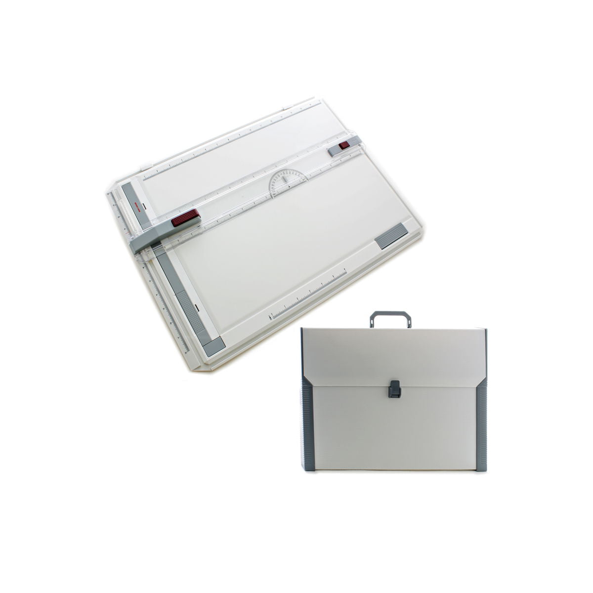 Koh-I-Noor incluye un estuche de transporte de vinilo con asa, que protege la pizarra entre sesiones de estudio o durante los desplazamientos a reuniones con clientes. El cabezal de dibujo opcional permite el bloqueo automático del ángulo en incrementos de 15 grados y el posicionamiento manual en cualquier ángulo, convirtiendo la pizarra en una estación de dibujo más versátil. Tanto los estudiantes que realizan tareas técnicas como los profesionales que desarrollan conceptos preliminares aprecian la portabilidad y precisión que ofrece esta pizarra sin el volumen de las mesas de dibujo tradicionales.