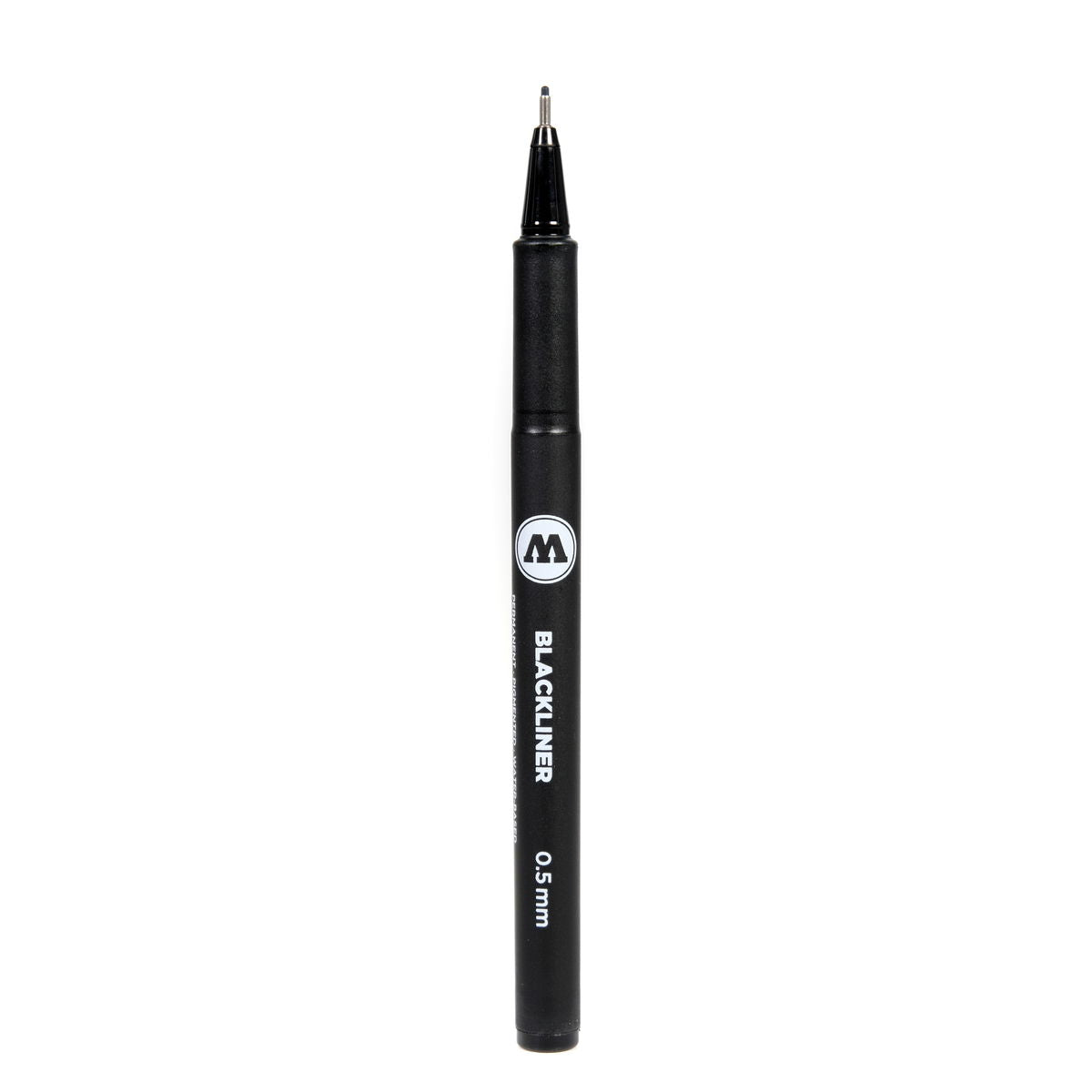 El Blackliner de Molotow cuenta con tinta pigmentada de archivo, resistente al agua y a los químicos, y también a la decoloración. La tinta es opaca, permanente y de secado rápido. Sus robustas puntas con revestimiento metálico garantizan líneas finas y precisas, ideales para delinear. La función "Cap-off" evita que el marcador se seque en 90-180 minutos, y el cuerpo tiene una superficie mate antideslizante para un agarre seguro.