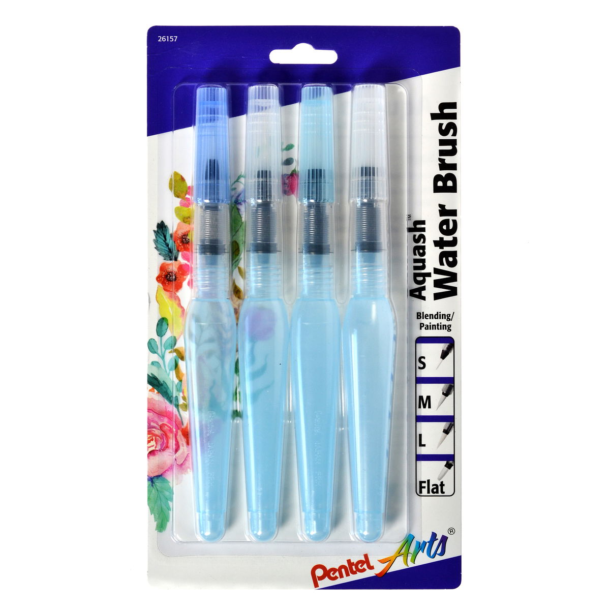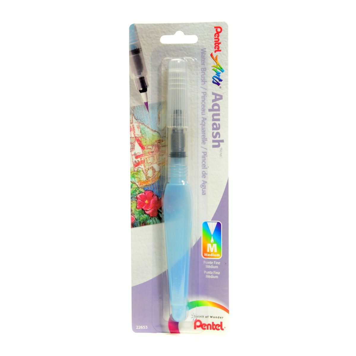 Llena el barril con agua limpia o añade tu tinta o tinte favorito para obtener resultados increíbles. Los pinceles Aquash Water Brushes ofrecen prácticas aplicaciones en húmedo sin la molestia de tener que sumergir el pincel repetidamente. Úsalos para difuminar dibujos a lápiz de acuarela o aplicar color de pasteles de acuarela. Estos pinceles recargables también son muy fáciles de transportar y pintar al aire libre. Su exclusivo sistema de válvula y su barril fácil de apretar proporcionan un mayor control del flujo de agua. El diseño aplanado del barril evita que el pincel se resbale de la superficie de trabajo. La resistente punta de nailon mantiene la punta. Disponibles en puntas grande, mediana, fina y plana, y en un juego de 4 puntas surtidas. Certificados por ACMI.