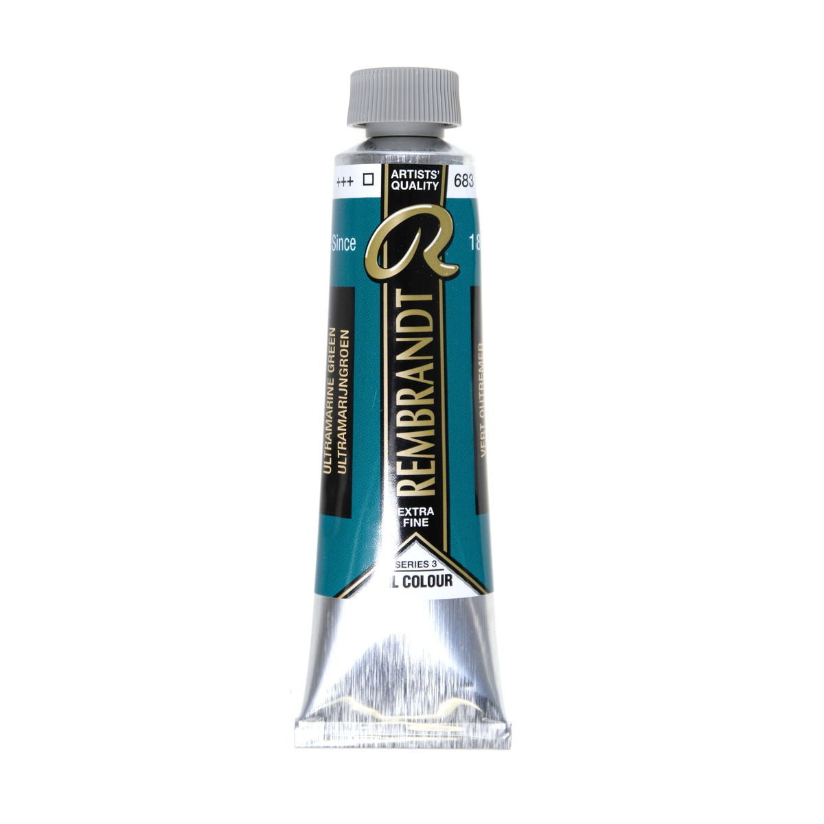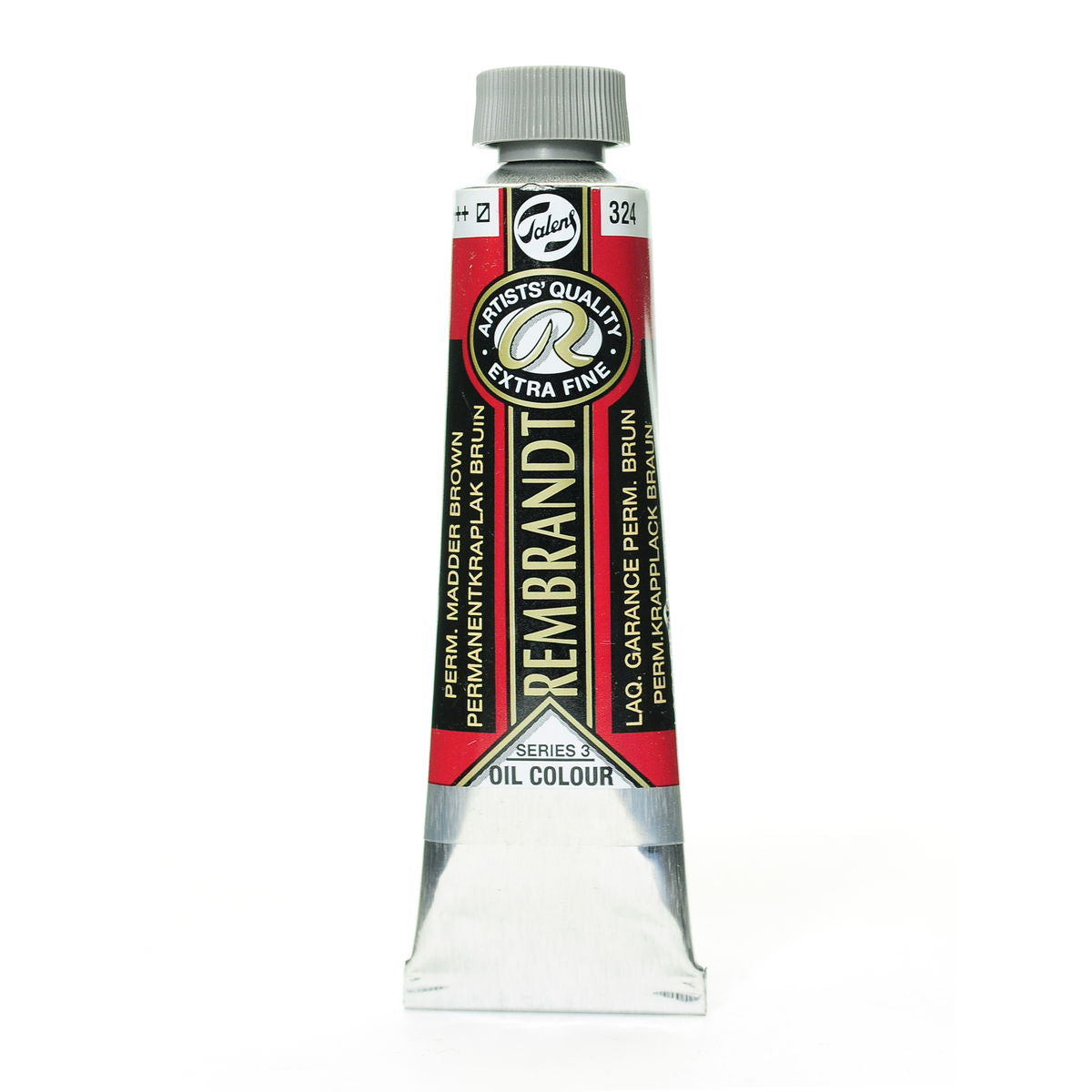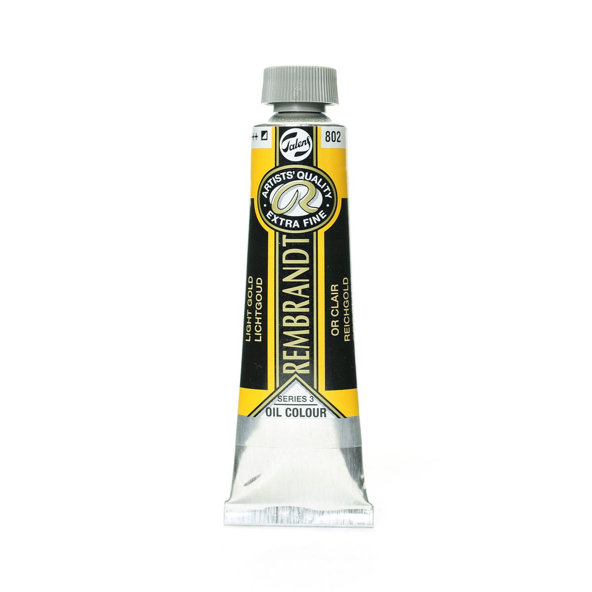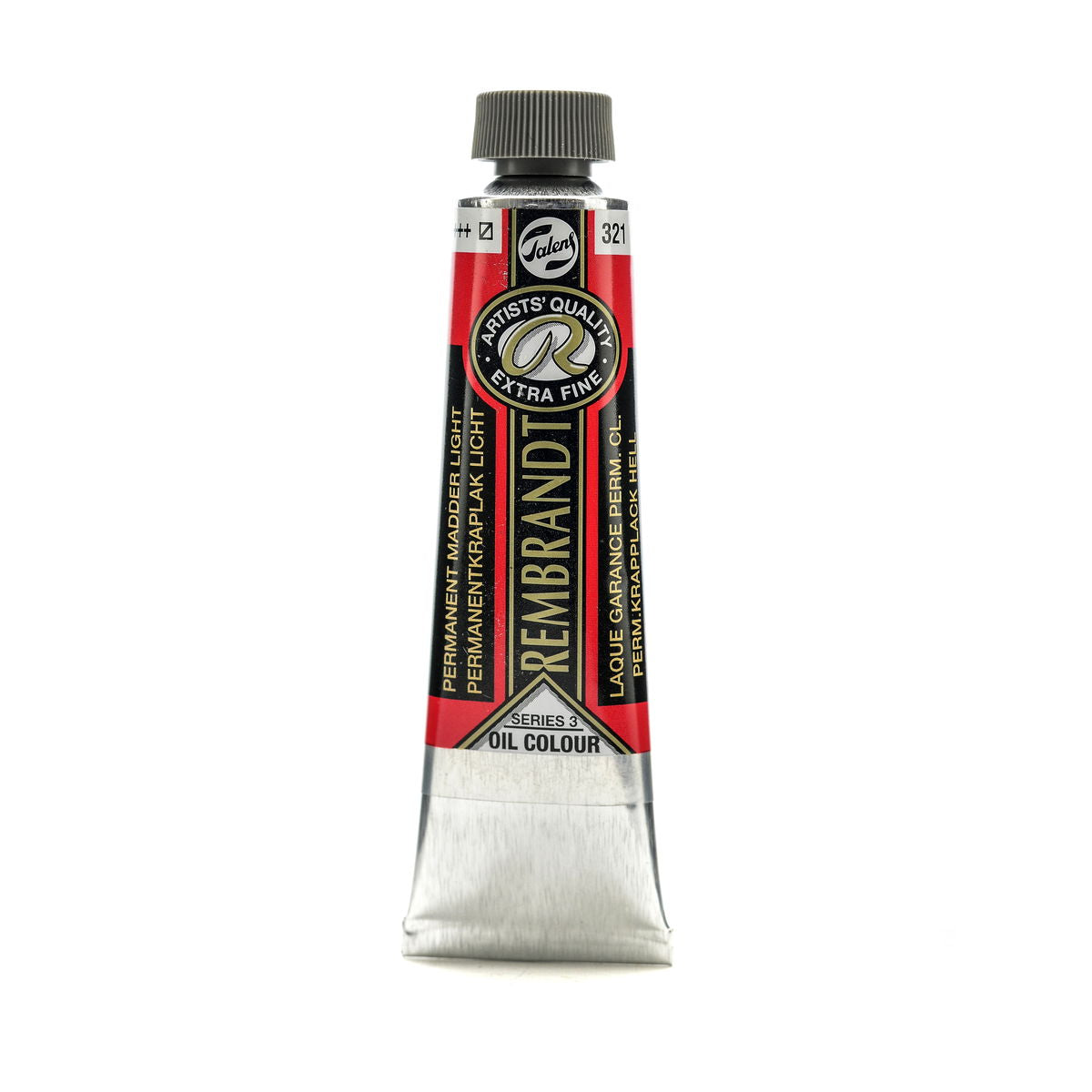 Calidad profesional suprema. Una gama de colores prácticamente perfecta; muchos son verdaderamente únicos, como los colores de alta transparencia (óxidos transparentes, Rosa Rembrandt, etc.). Cada color se elabora con los mejores y más puros pigmentos, molidos con extrema finura en aceite de linaza puro desde el primer prensado. Se utiliza aceite de amapola para el blanco y algunos tonos claros para evitar el amarilleo. Las materias primas se incorporan al proceso de producción solo tras un riguroso control de laboratorio. Los colores se muelen hasta su finura óptima, en función de las propiedades de los pigmentos. Se someten a rigurosas pruebas de brillo, finura, tiempo de secado, elasticidad, viscosidad y adherencia a la superficie. Los Óleos Rembrandt para Artistas se presentan en tubos de 40 ml y 150 ml.