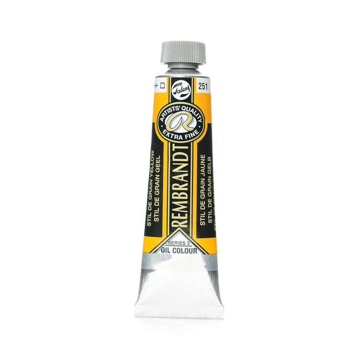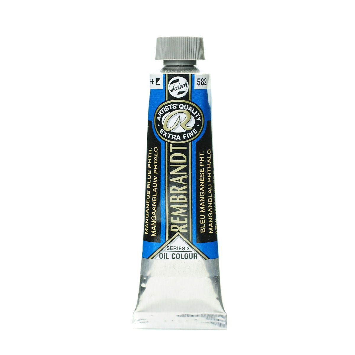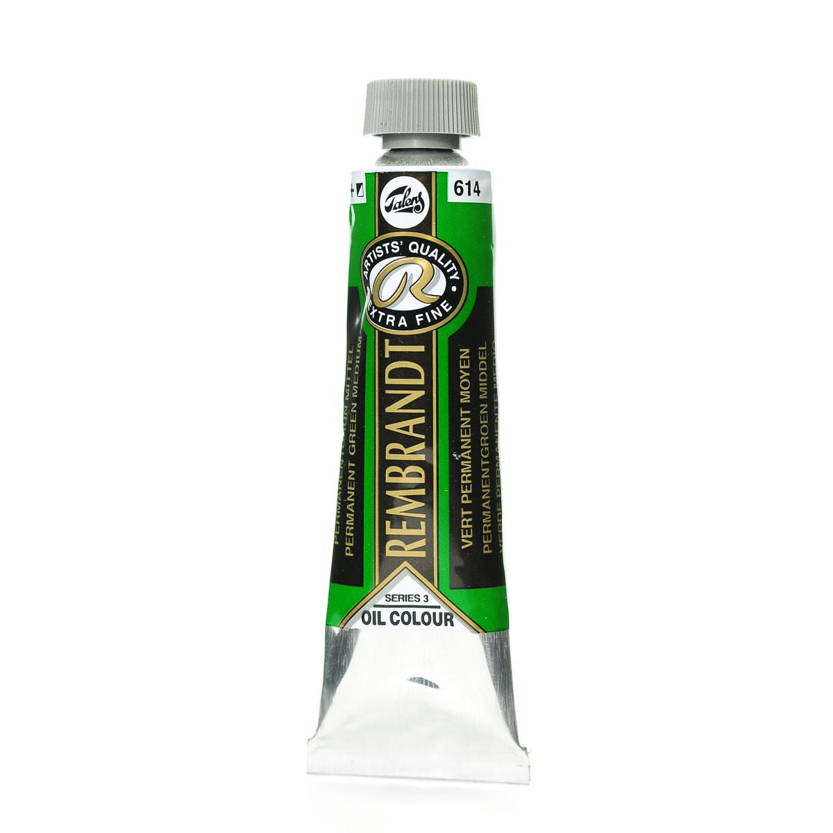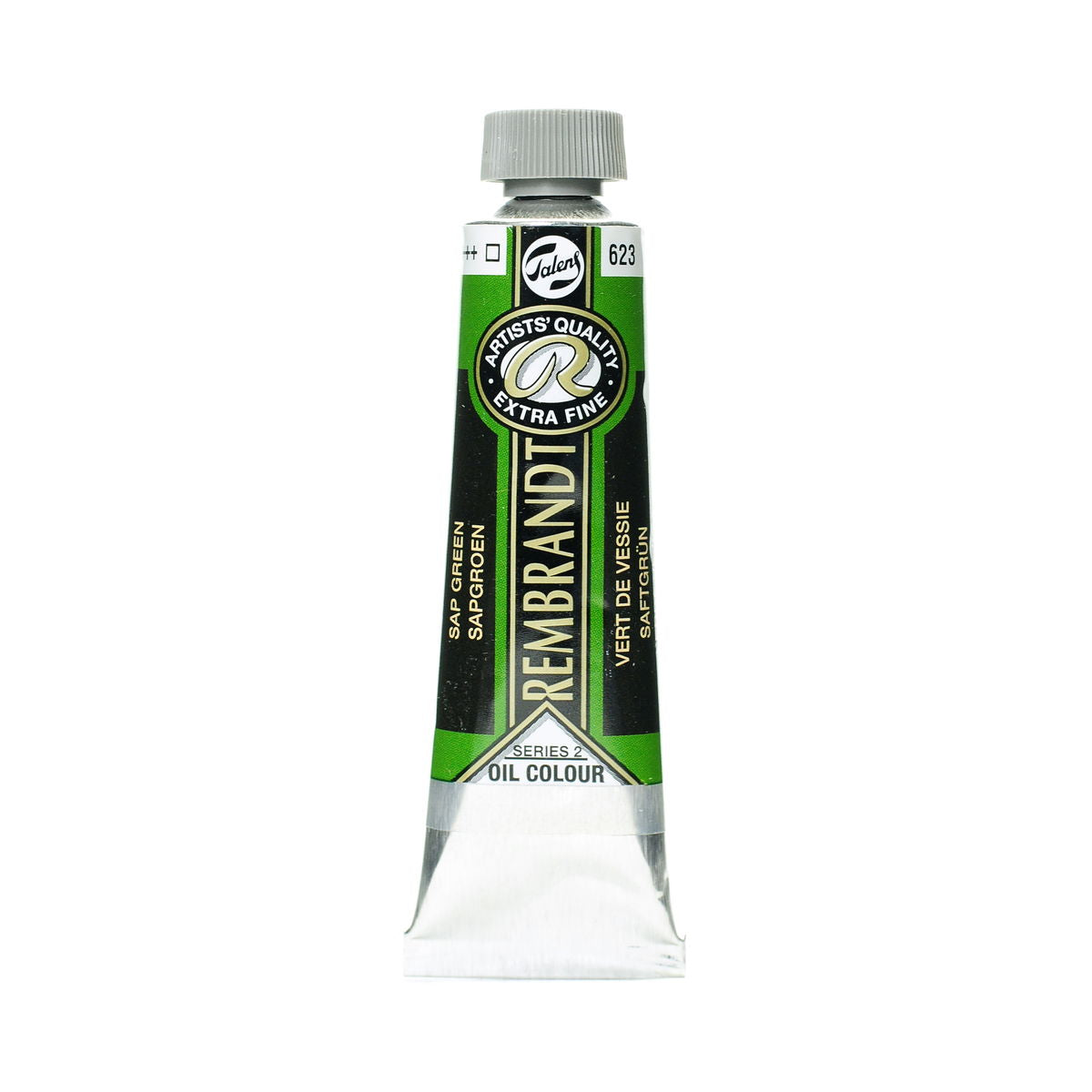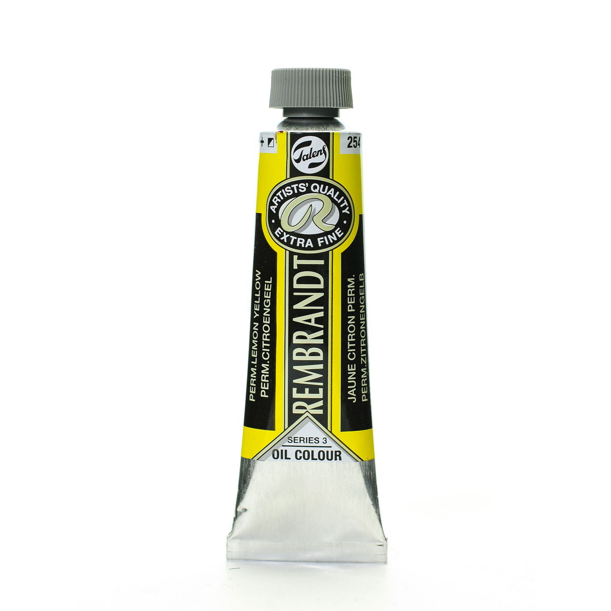 Calidad profesional suprema. Una gama de colores prácticamente perfecta; muchos son verdaderamente únicos, como los colores de alta transparencia (óxidos transparentes, Rosa Rembrandt, etc.). Cada color se elabora con los mejores y más puros pigmentos, molidos con extrema finura en aceite de linaza puro desde el primer prensado. Se utiliza aceite de amapola para el blanco y algunos tonos claros para evitar el amarilleo. Las materias primas se incorporan al proceso de producción solo tras un riguroso control de laboratorio. Los colores se muelen hasta su finura óptima, en función de las propiedades de los pigmentos. Se someten a rigurosas pruebas de brillo, finura, tiempo de secado, elasticidad, viscosidad y adherencia a la superficie. Los Óleos Rembrandt para Artistas se presentan en tubos de 40 ml y 150 ml.