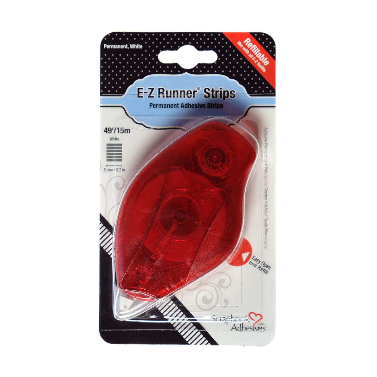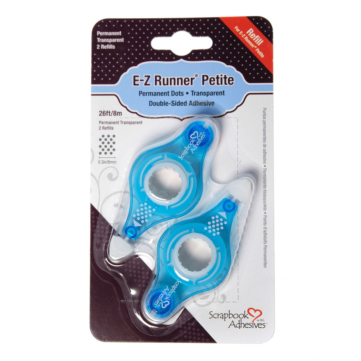 Los dispensadores EZ-Runner están diseñados pensando en las necesidades de los artesanos. Estos resistentes adhesivos son ideales para áreas pequeñas, fáciles de usar y tienen repuestos que no requieren enhebrado ni enrollado. Los dispensadores EZ-Runner y sus repuestos a juego están disponibles en 4 tipos de adhesivo: Tiras Permanentes en un rollo de 0,8 cm x 15,9 m, Puntos Reposicionables en un rollo de 0,8 cm x 13,1 m, Cinta Permanente Ultra Fuerte en un rollo de 0,8 cm x 12,8 m y Puntos Permanentes Pequeños en un rollo de 0,8 cm x 7,9 m. El repuesto Pequeño contiene 2 repuestos por paquete en lugar de uno.