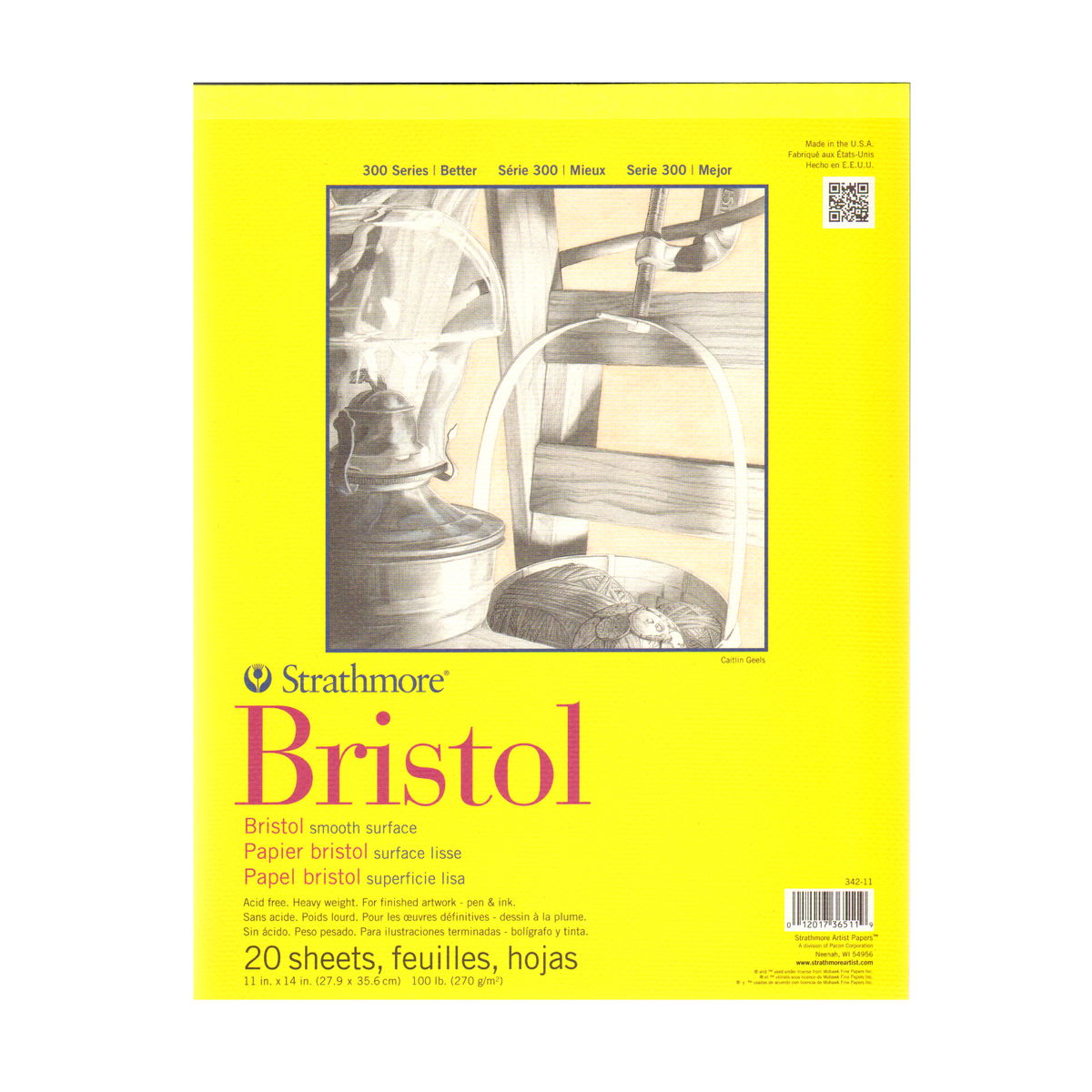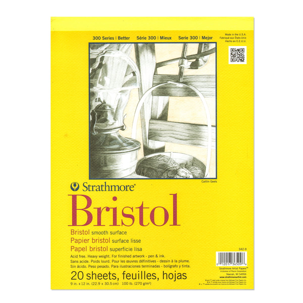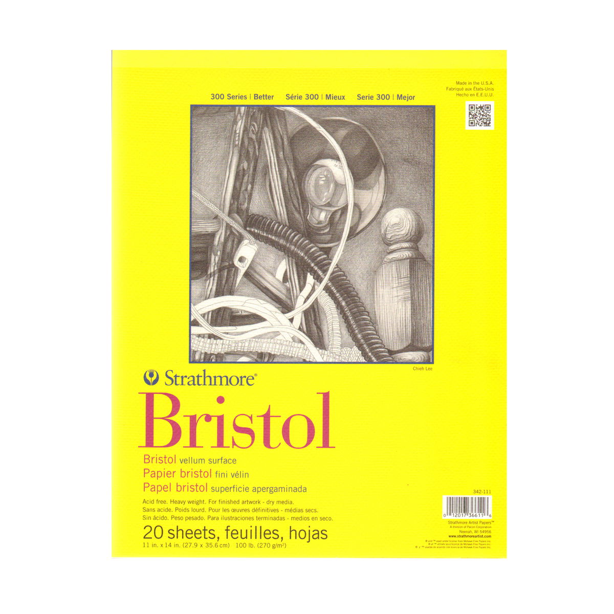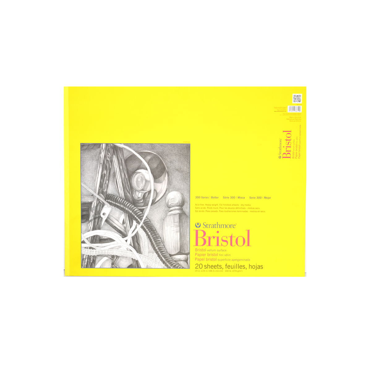 Este papel económico de gramaje alto (100 lb) no contiene ácido y está disponible en dos superficies: lisa y vitela. La lisa es ideal para dibujo fino con pluma y tinta, lápiz y dibujo mecánico. La vitela tiene un ligero relieve y está diseñada para una amplia gama de técnicas de dibujo y pintura, como crayón, lápiz, carboncillo, acuarela y gouache. Ambas superficies son ideales para aerógrafo. 20 hojas por bloc.