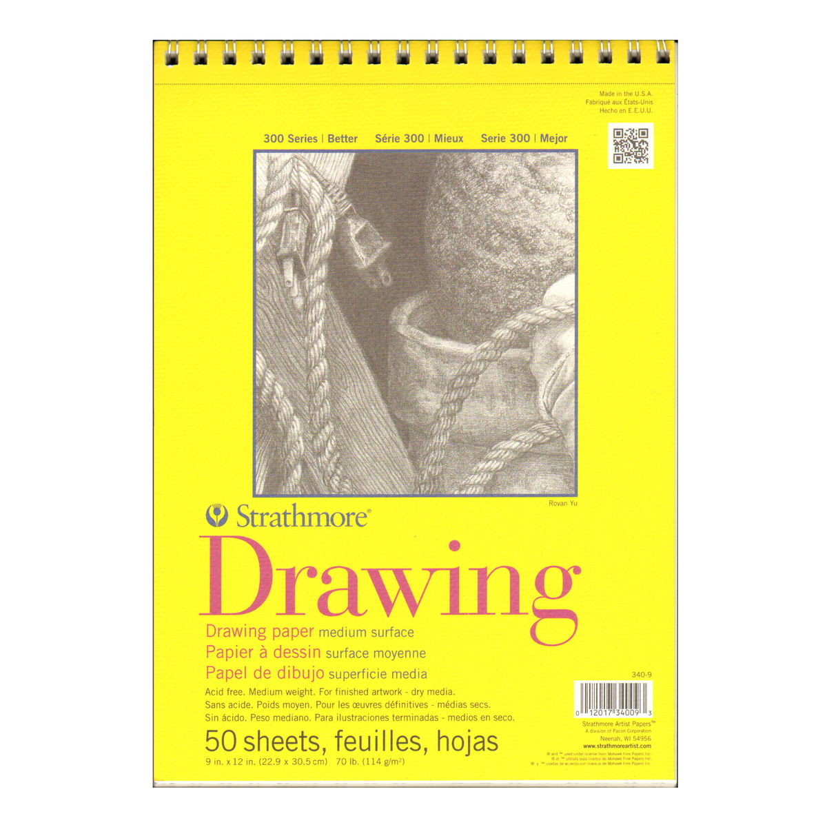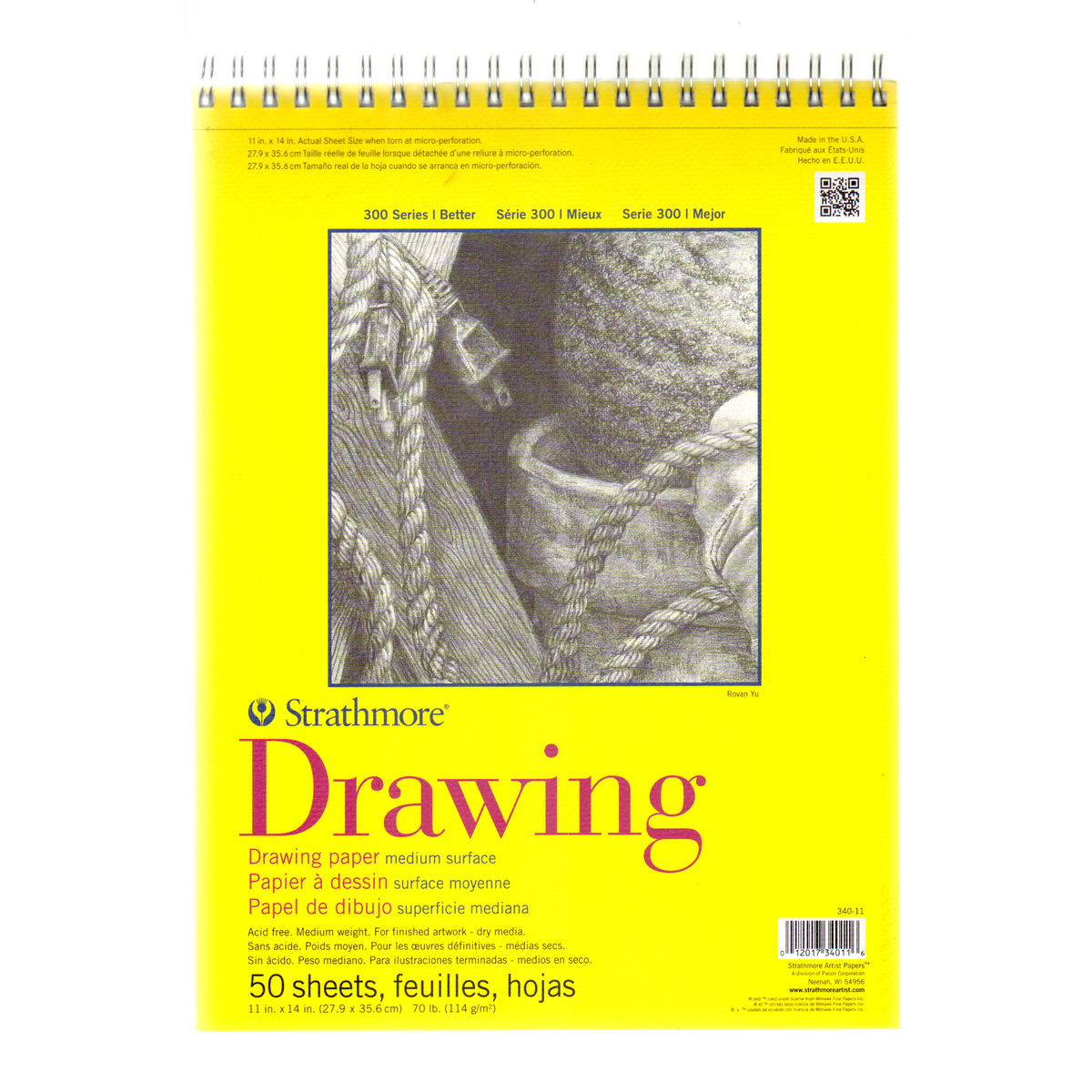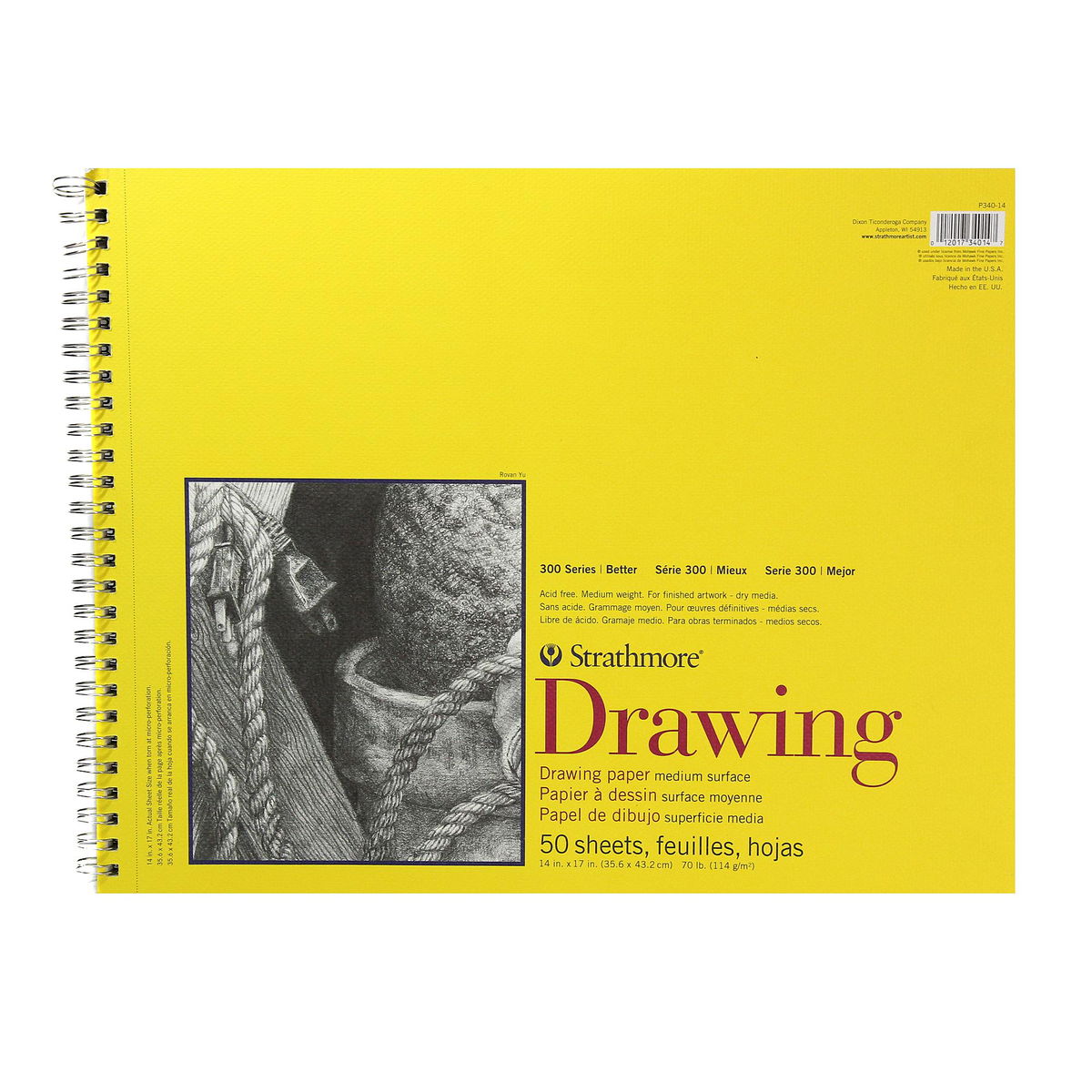 El papel de dibujo Strathmore Serie 300 está diseñado para principiantes, pero es invaluable para cualquier artista que necesite papel de dibujo confiable. Los blocs contienen 50 hojas de papel de gramaje medio. El bloc, encuadernado en espiral y microperforado, ofrece una superficie resistente con gran capacidad de borrado. El papel de 70 lb, libre de ácido, proporciona un acabado blanco brillante antirreflectante de superficie media, muy apto para pluma y tinta, lápiz, crayón, carboncillo, acuarela y rotuladores. También disponible en rollos.