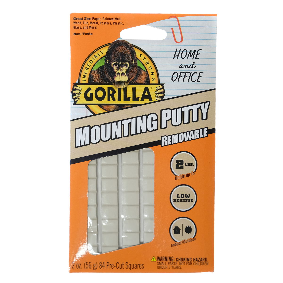 Adhesivo reposicionable que realmente se adhiere. La masilla de montaje Gorilla fija objetos ligeros, pósteres, fotos de referencia y marcos pequeños, sin comprometer la fijación permanente ni dañar las superficies. Los cuadrados precortados eliminan las dudas sobre la cantidad necesaria; presiónelos sobre la parte posterior del objeto, colóquelos contra la pared y listo.