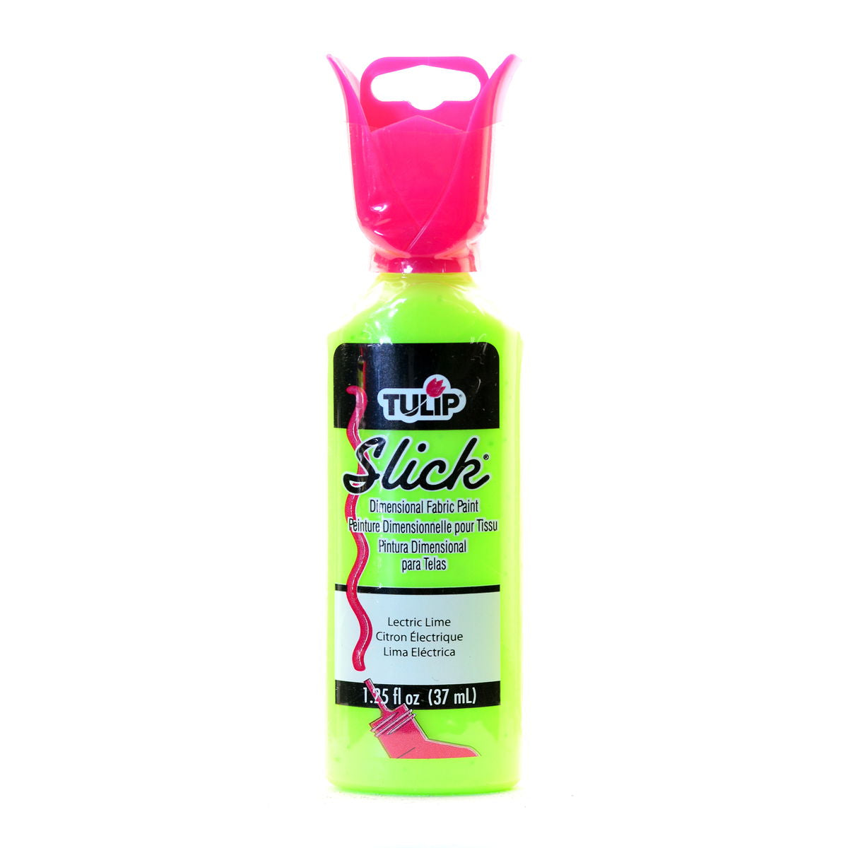 Acabado brillante permanente sin la ansiedad de la pintura húmeda: eso es lo que ofrece Tulip Slick. Esta pintura dimensional mantiene su aspecto brillante una vez curada, creando efectos que van desde la textura de charol en mezclilla hasta detalles lacados en bolsos de lona. Su fórmula espesa retiene las líneas y puntos dimensionales sin aplanarse, perfecta para delinear, rotular o crear adornos en relieve que reflejen la luz.