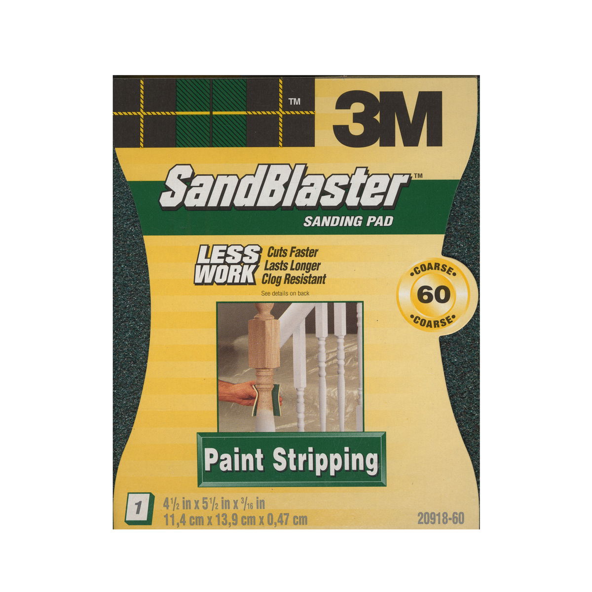 These last longer and sand faster than 3M conventional pads of comparable grit. Using proprietary constructions and manufacturing technology, 3M has created pads which maintain their inherent, high-performing cutting ability. In addition, each has been coated to resist clogging and build-up. Choose the grit level that's right for your needs: 60--course for moderate stripping; ideal for removing old paint, varnish, and clear-coat finishes on wood and metal. 100--medium for surface leveling; ideal for preparing bare wood, metal, and drywall surfaces prior to first coat of finish. 150--medium for surface smoothing; ideal for preparing bare wood, metal, and drywall surfaces prior to first coat of finish. 180--fine for sanding between coats; ideal for preparing freshly coated wood or metal surfaces prior to next coat. Pads measure 4 1/2 in. x 5 1/2 in. x 3/16 in. Recommended for round or highly contoured surfaces. Sponges measre 3 3/4 in. x 2 5/8 in. x 1 in. Recommended for flat or slightly contoured surfaces.