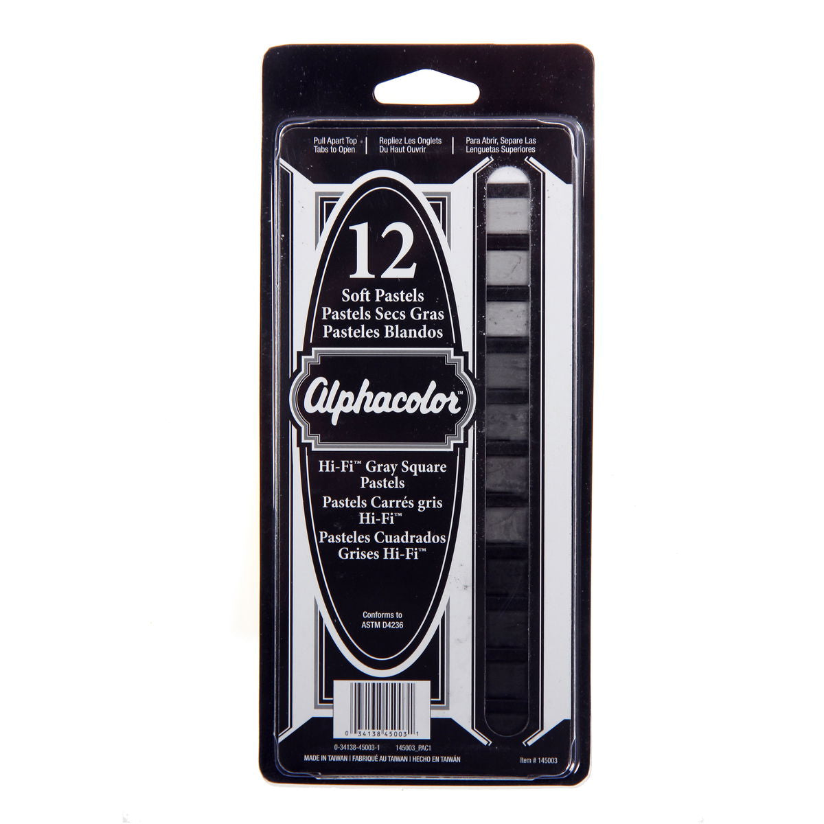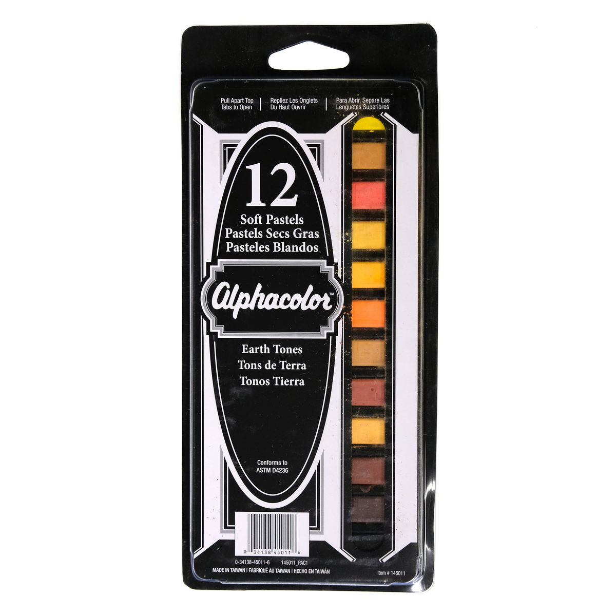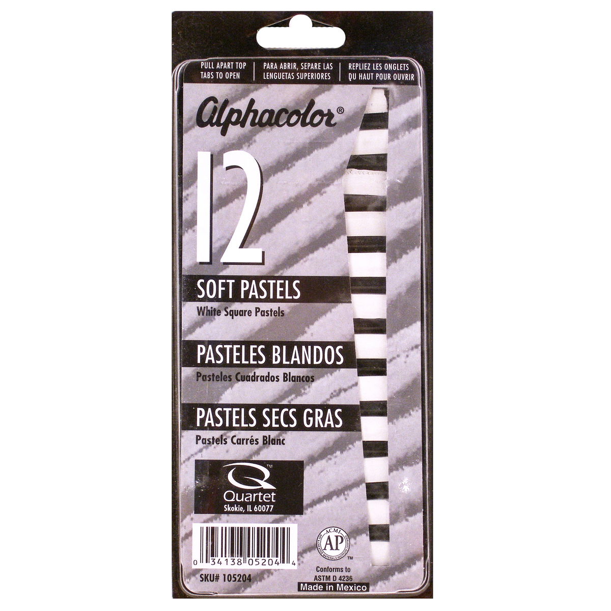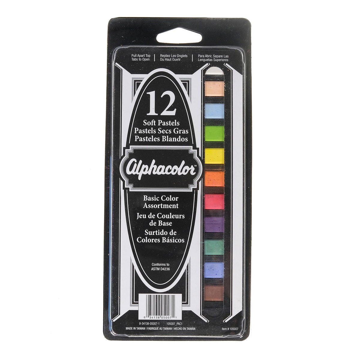 Rich in pigment, these pastels produce a velvety smooth laydown for creating bright drawings, posters, and murals on cloth or paper. Alphacolor pastels offer vibrant, non-toxic coverage that is specially formulated to last. (Not recommended for chalkboards.) Colors contained in sets:Pure bright white, set of 12: Use for dramatic negative works. Perfect for working in reverse on darker papers. Basic colors, set of 12: black, blue, brown, green, light blue, ochre, orange, peach, red, white, yellow, yellow-green.Earth colors, set of 12: black, dark brown, burnt sienna, brown, earth, deep orange, golden ochre, medium yellow, ochre, orange, red earth, yellow-orange.Hi-fi grays, set of 12: very light gray (two), light gray, gray, medium gray, dark gray, black, white.Portrait colors, set of 12: emerald green, black, blue, dark brown, earth, peach, medium gray, maroon, ochre, red earth, white, pink.Landscape colors, set of 24: black, blue, light blue, dark blue, brown, dark brown, earth, peach, gray, very light gray, dark green, emerald green, light green, olive green, ochre, orange, red, red earth, red-orange, deep turquoise, violet, white, yellow, yellow-green.Portrait colors, set of 24: emerald green, black, blue, dark brown, earth, peach, medium gray, maroon, ochre, red earth, white, pink, auburn, deep pink, light blue, brown, burnt sienna, deep peach, very light gray, light green, violet, golden ochre, red, red-orange.Basic colors, set of 24: black, blue, brown, green, light blue, ochre, orange, peach, red, white, yellow, yellow-green, blue-green, burnt sienna, dark blue, dark green, earth, gray, magenta, red-orange, red-violet, turquoise, violet, yellow-orange.Basic colors, set of 48: extra black and white, blue, brown, green, light blue, ochre, orange, peach, red, yellow, yellow-green, blue-green, burnt sienna, dark blue, dark green, earth, gray, magenta, red-orange, red-violet, turquoise, violet, yellow-orange, blue-violet, cardinal red, dark brown, dark gray, deep orange, deep peach, deep turquoise, emerald green, fluorescent green, fluorescent orange, fluorescent red, fluorescent yellow, light gray, light green, maroon, medium gray, medium yellow, olive green, red earth, very light gray, gold ochre, ivory.