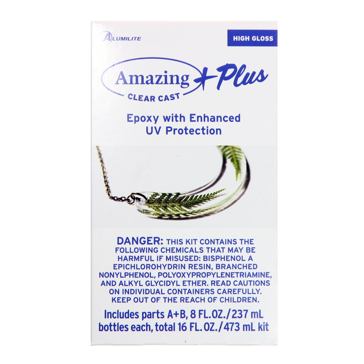 1 to 1 ratio casting and epoxy resin, with the added benefit of UV leading resistance. Amazing Clear Cast +Plus can be used as a casting resin or clear coat, and works best if cast in sections less than 3/8 in. thickness. 16 oz. kit will cover approximately 3 - 4 square feet. Allow coatings to cure for a minimum of 48 hours. Release agent required for non-silicone molds. Includes part A & B; 8 fl. oz. / 237 ml each, 2 stir sticks, & 3 cups. Complies with FDA 21 CFR 175.300. Conforms to ASTM D-4236.