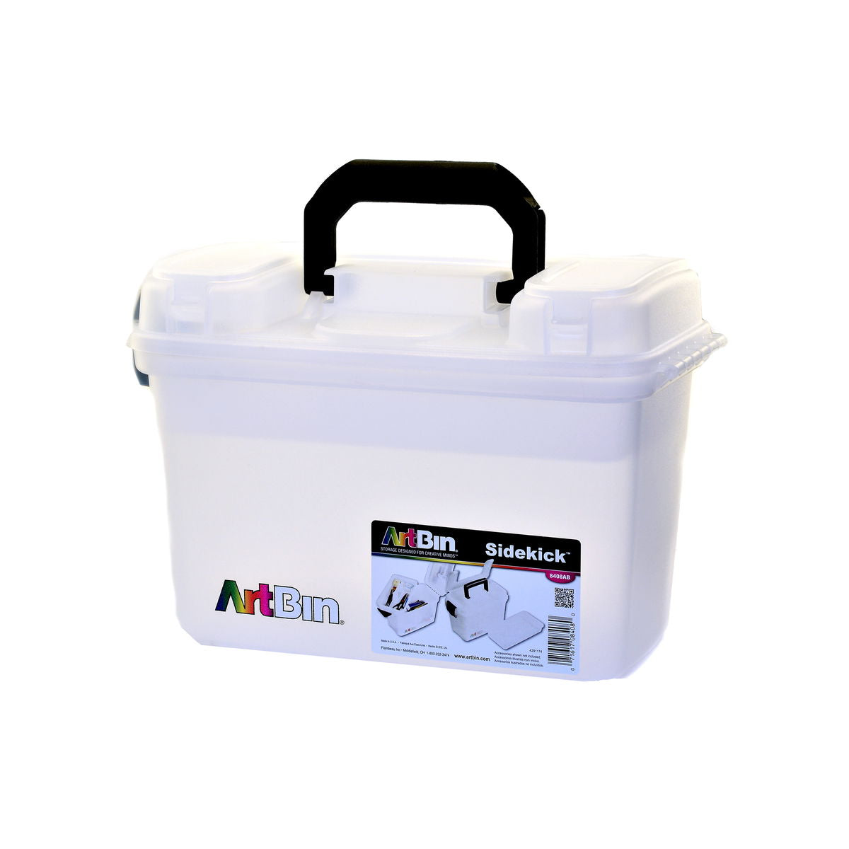 The Sidekick is a portable and innovative storage solution. The translucent tote features secure latches, extra in-lid storage compartment, and a lift out tray for ample space. The Sidekick offers approximately 6 in. of additional storage space beneath the lift out tray for bulky items. The container is made of translucent polypropylene and provides safe storage and transport of art supplies. External dimensions: 15 in. x 10 in. x 7 3/4 in. Supplies not included. 8408AB