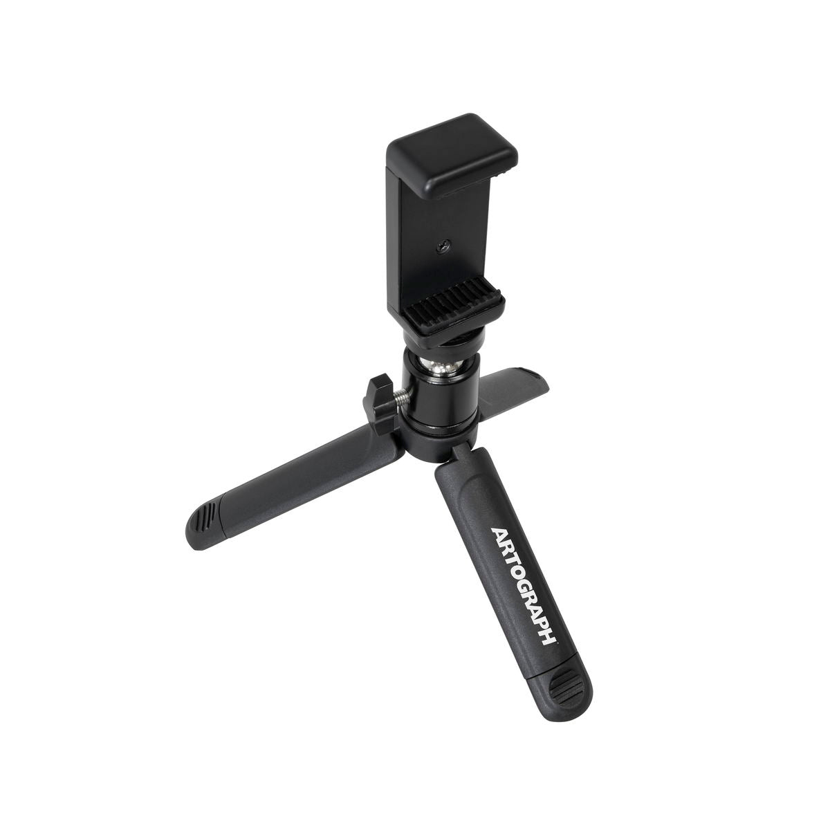 The Artograph Tripod Tabletop Stand is the perfect gift for vlogging and photography enthusiasts. Portable and lightweight, it is specifically designed for digital art projectors, cameras, and mobile phones. The non-slip pads on the legs provide a stable base for photos and video recordings. They can raise up to 9" and fold down to 5" long. This tripod features a 360 Swivel Ball Mount and Locking Knob for secure attachment and flexible positioning. To accommodate all cellphone models, the spring loaded phone clamp extends 2"-3.25". Weighs 4 lbs.