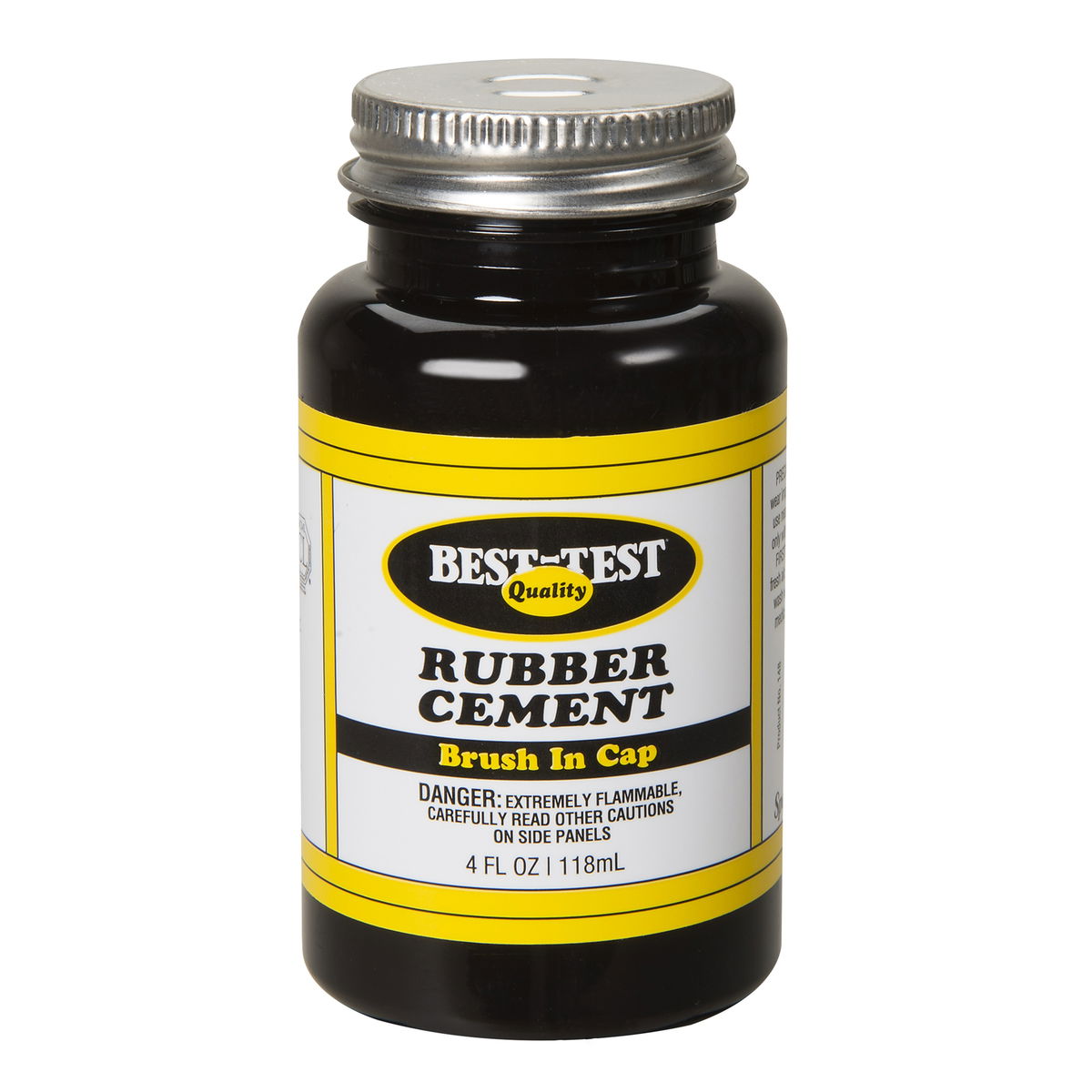 Best-Test Acid Free Rubber Cement is an economical alternative to paper cement. Specially formulated for office and school use, it can be used in the permanent and temporary bonding of paper and paper products. 4 oz. plastic bottle includes a brush in cap.