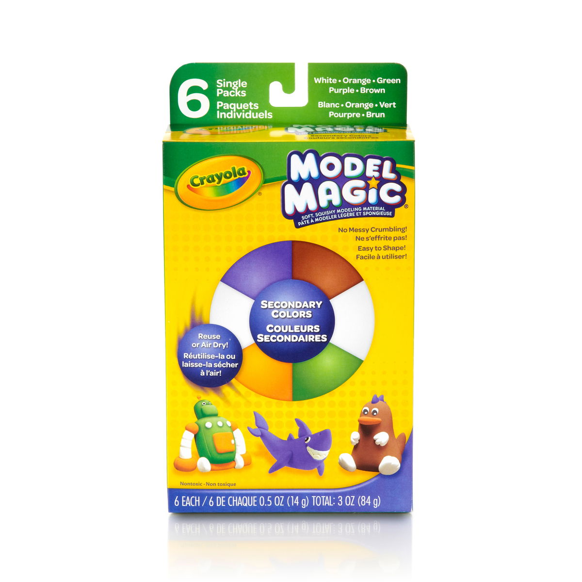 Model Magic is a fun, unique, air-dry modeling compound that allows kids to create keepable arts and crafts the safe way! The versatile, non-toxic formula comes soft and pliable for easy use but won t dry out until it permanently air dries - approximately 24 hours. Once dried, Model Magic can be decorated with markers, watercolors, or acrylic paints. Take class art projects to the next level by shopping in bulk with Classpack options that come with a resealable container to reuse the modeling compound another day instead of having to throw away hardened clay. Model Magic doesn t flake or crumble, so little cleanup is required, even on carpets. Colors are available in individual 4 oz. pouches, various assortment packs, or in 2 lb. plastic bucket assortments. The Model Magic Pack of 3 Resealable Tubs: Primary Colors: red, yellow and blueSecondary Colors: green, orange and purple The Model Magic 0.5 oz. Assortment packs of 6 colors: Naturals: 2 pouches each of bisque, terracotta, and earthtoneNeon: 2 pouces each of shocking pink, laser lemon and neon greenPrimary: 2 pouches of white and one each of red, blue, yellow, and blackSecondary: 2 pouches of white and one each of green, orange, purple, and brownWhite: 6 pouches of white The Model Magic 2 lb. Bucket Assortments: Neon: 8 oz. pouches one each of laser lemon, shocking pink, yellow green, and radical redPrimary: 8 oz. pouches one each of red, yellow, blue, and whiteSpecial Effects: 8 oz. pouches one each of white and special effects colors black shimmer, aquamarine shimmer, and purple shimmer White: four 8 oz. pouches of white The Model Magic Deluxe Variety Pack of 14 contains two 0.5 oz pouches of white, red, yellow, green and blue and one 0.5 oz pouch each of purple, black, orange and brown.