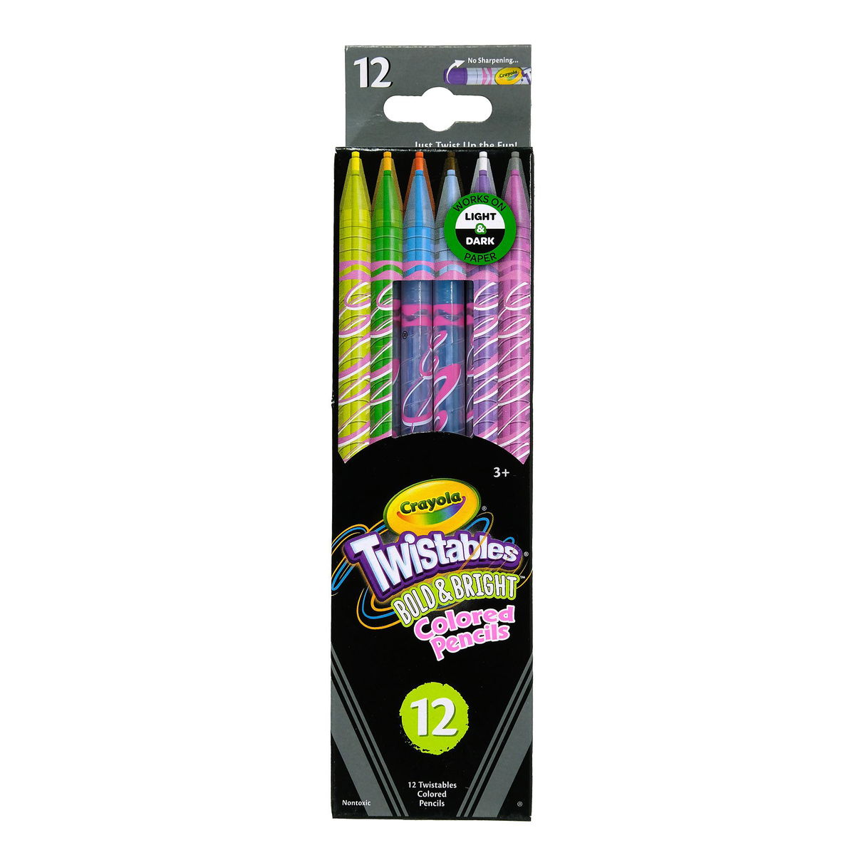 Crayola Twistables Colored Pencils are the easy way to color on the go, and now they are available in Bold & Bright colors that work on both light and dark paper! Avoid waiting for a sharpener to continue using your favorite colors or cleaning up pencil shavings that always end up creating a mess, these colored pencils don't require sharpening. Simply twist up for more color, or twist down to protect the color core. The plastic casing makes it easy to see how much color is left, while the pencil size never changes, so it's always easy to hold.