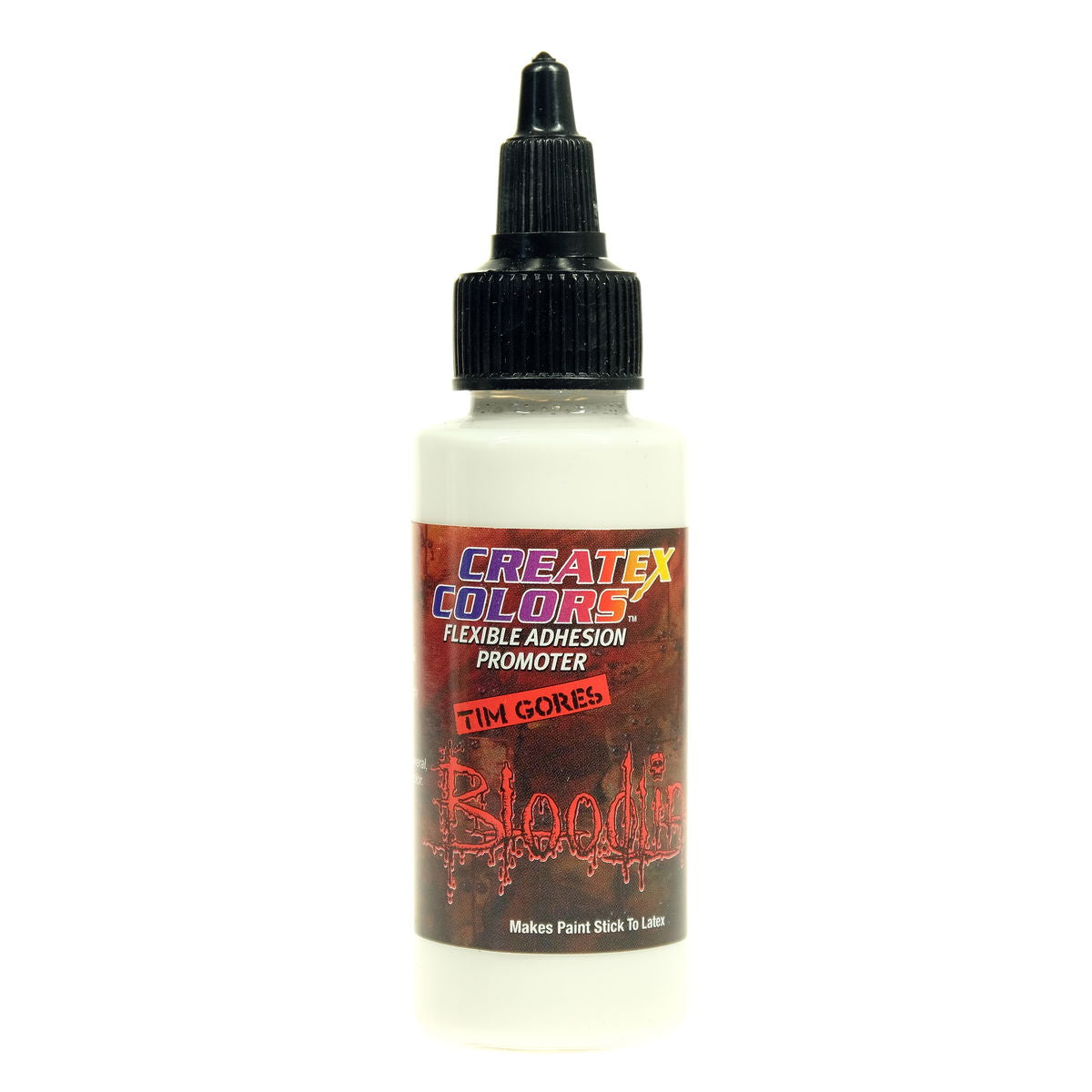 Keep paint from chipping and cracking on latex with Createx 5092 Bloodline Adhesion Promoter. This water-based material is designed to ensure adhesion on latex and other flexible, soft, non-porous surfaces. Apply this adhesion promoter directly from the bottle as one medium-wet coat and allow at least 10 minutes to dry before top coating with any of the Createx paints.