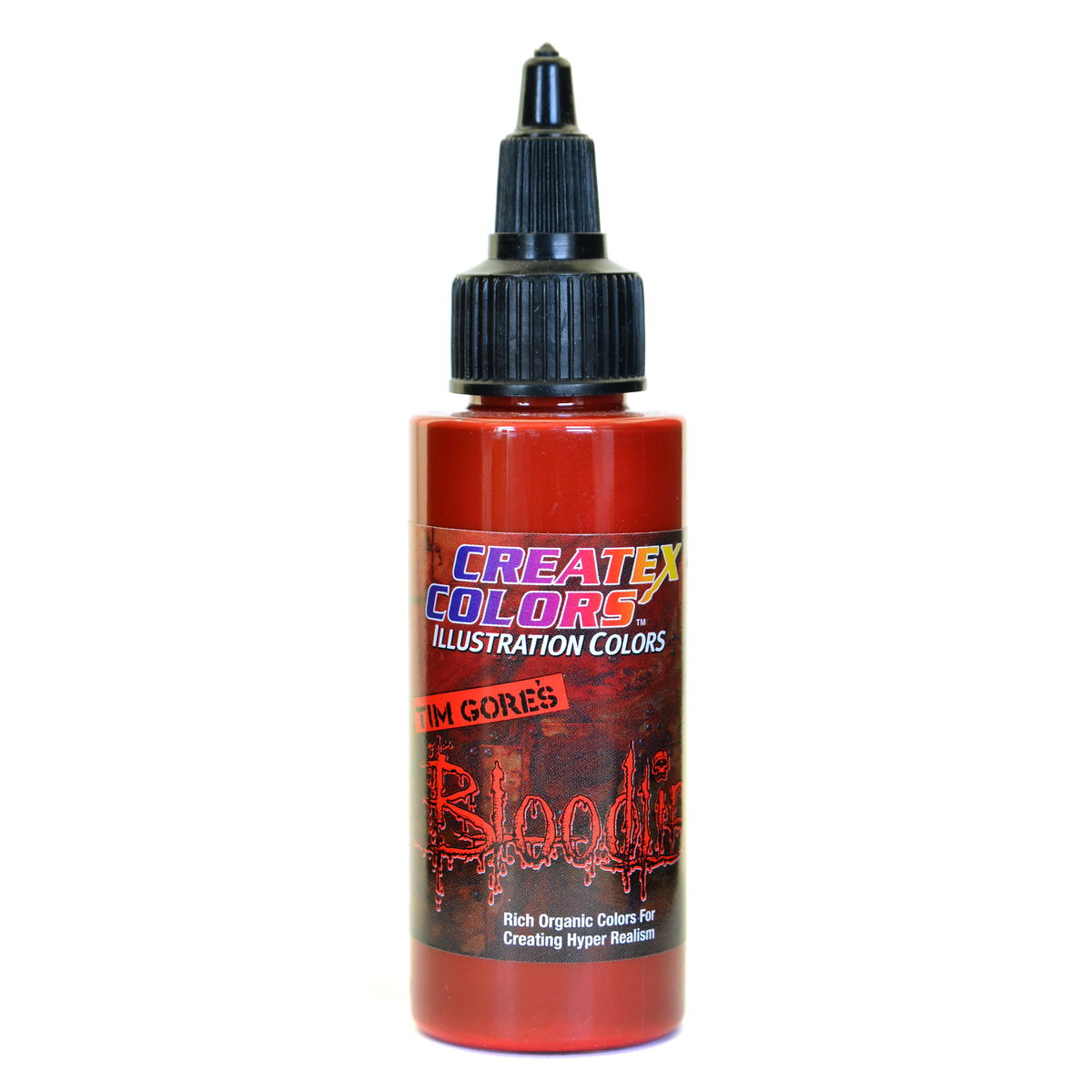 Tim Gore's Bloodline is part of the Illustration Color line with a color palette specifically created for painting hyper-realistic humanoids, creatures and monsters. Tim Gore is an extremely talented artist with over 25 years of experience with special effects in the film industry and his personal art work has been shown in galleries around the world. Createx Illustration Colors are refined, waterbased airbrush colors offering true fine-line detailed performance allowing for re-wettable effects and subtle erasing techniques and not intended for high coverage base colors.