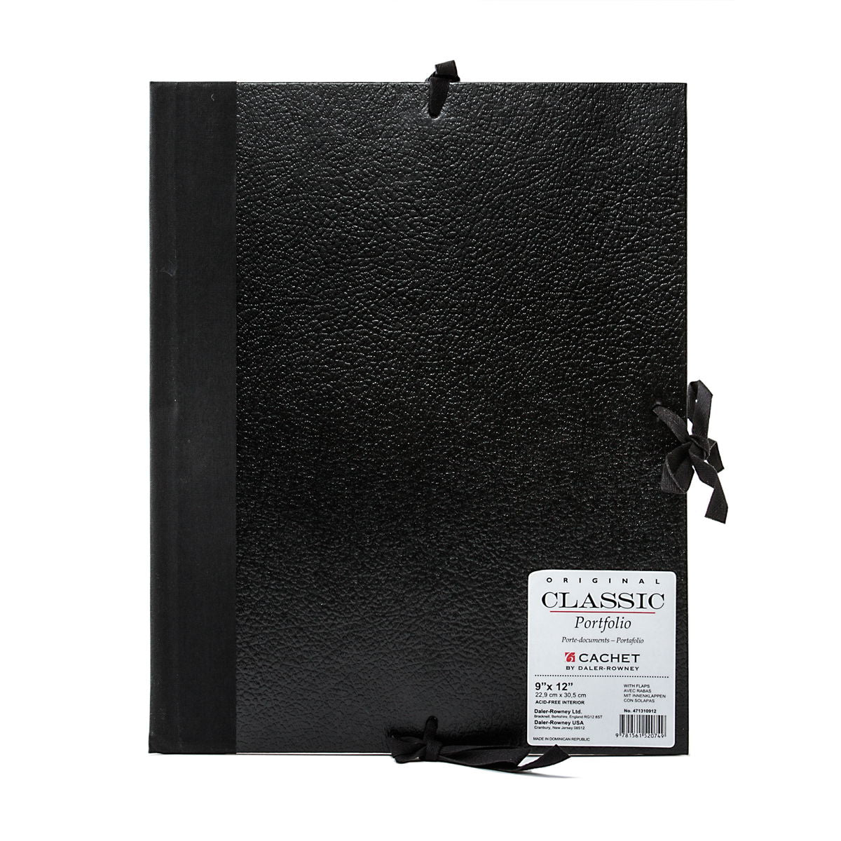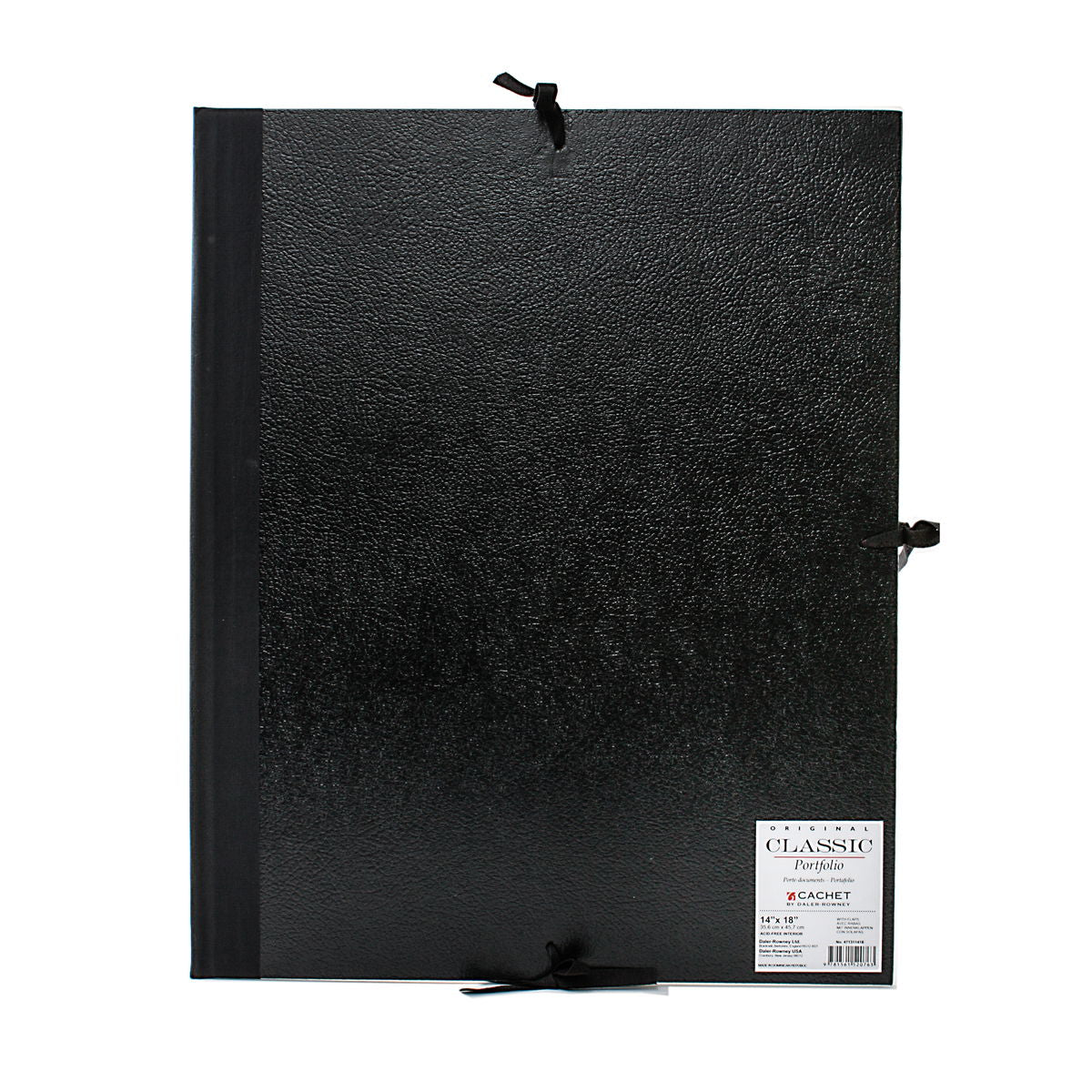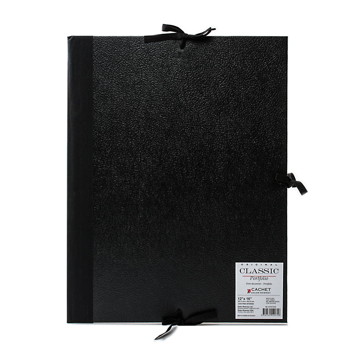 This portfolio comes with or with inner flaps, with string ties on three sides. The leatherette finish has a wipe clean surface and is moisture resistant (but not waterproof). The thick rigid paperboard base keeps it from bending and creasing the papers. Acid-free lining.