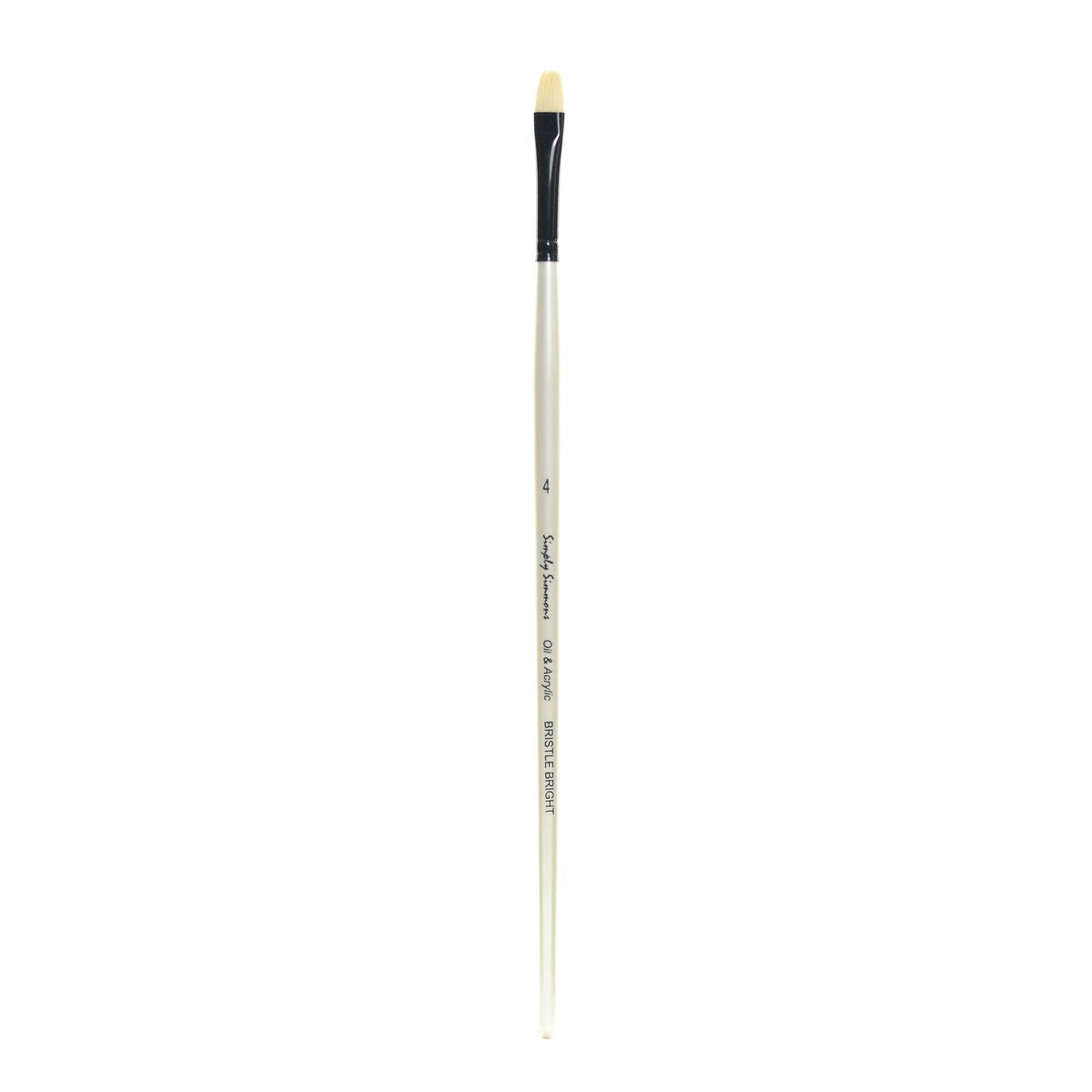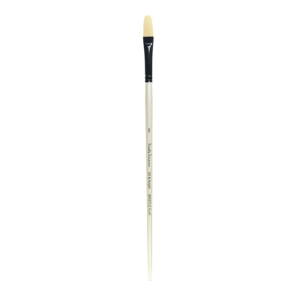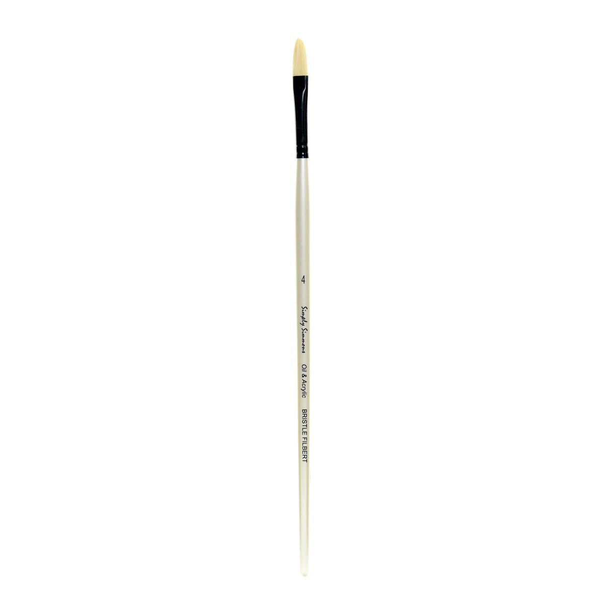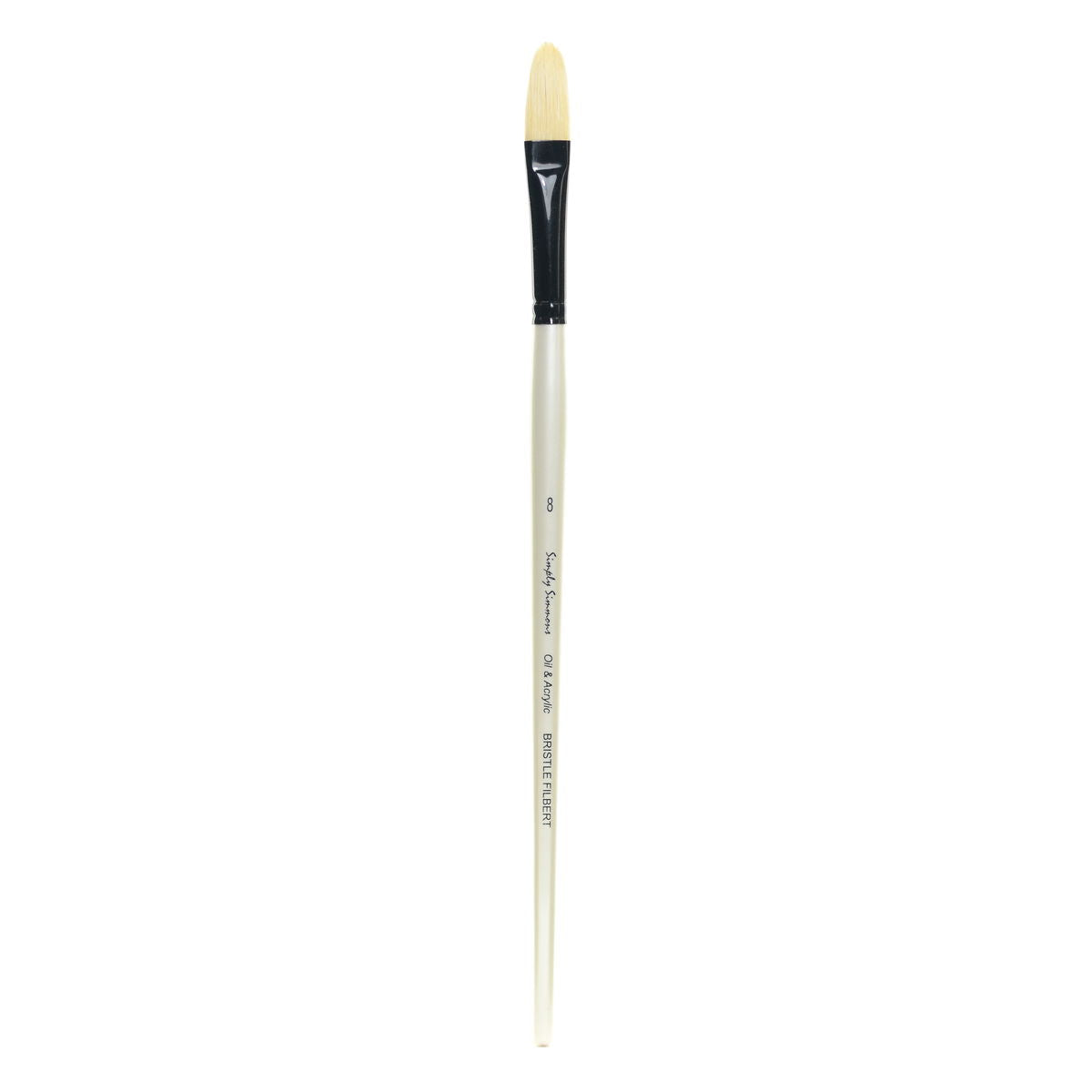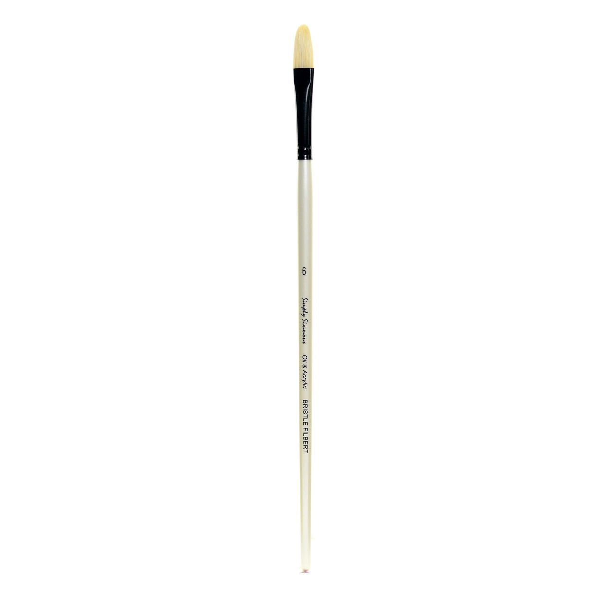 Simply Simmons Long Handle Brushes are made for oil and acrylic painting. The versatile range of dark-tipped Synthetic Filament Brushes provides excellent spring and a sharp, chiseled edge. The Natural Chunking Bristle Brushes provide maximum color hold and smooth blending. Both types have handsome pearlized white handles and are resin bonded to seamless black ferrules.