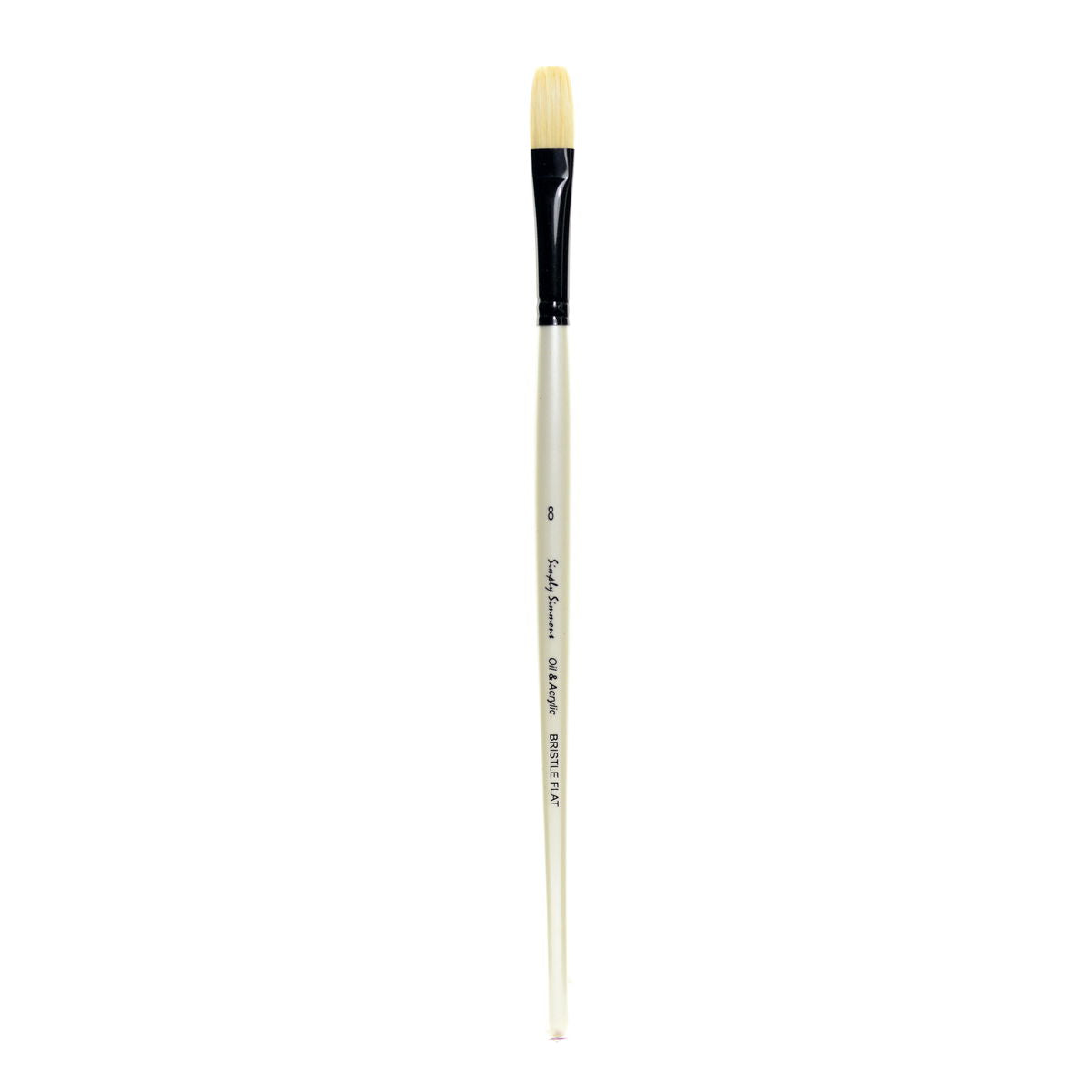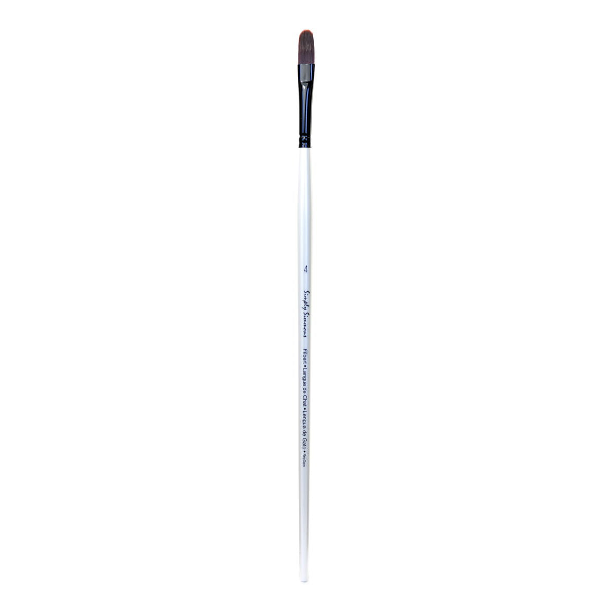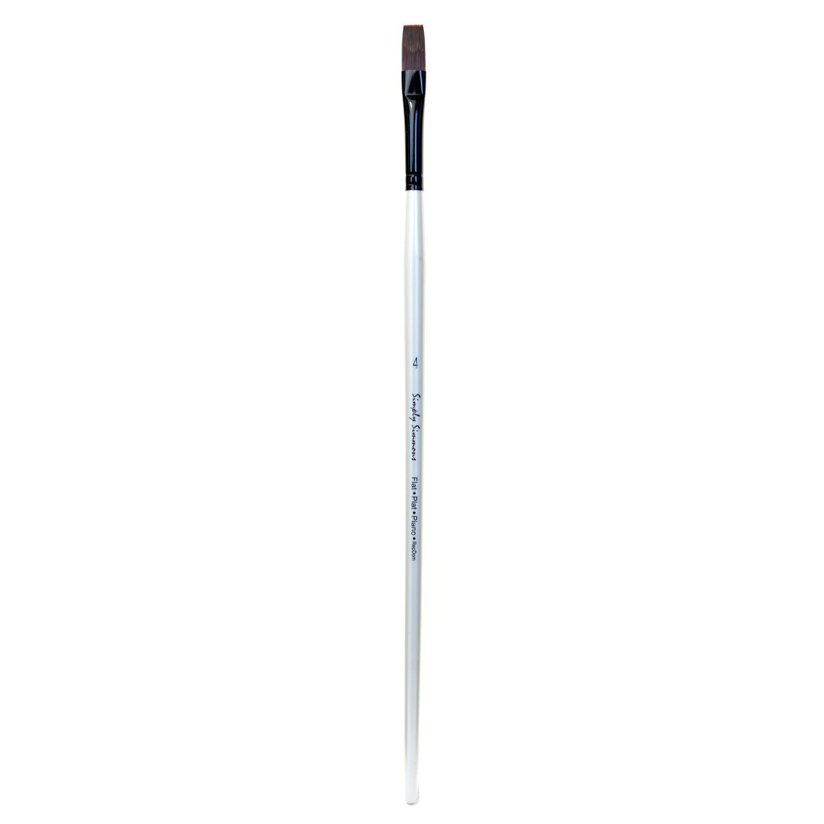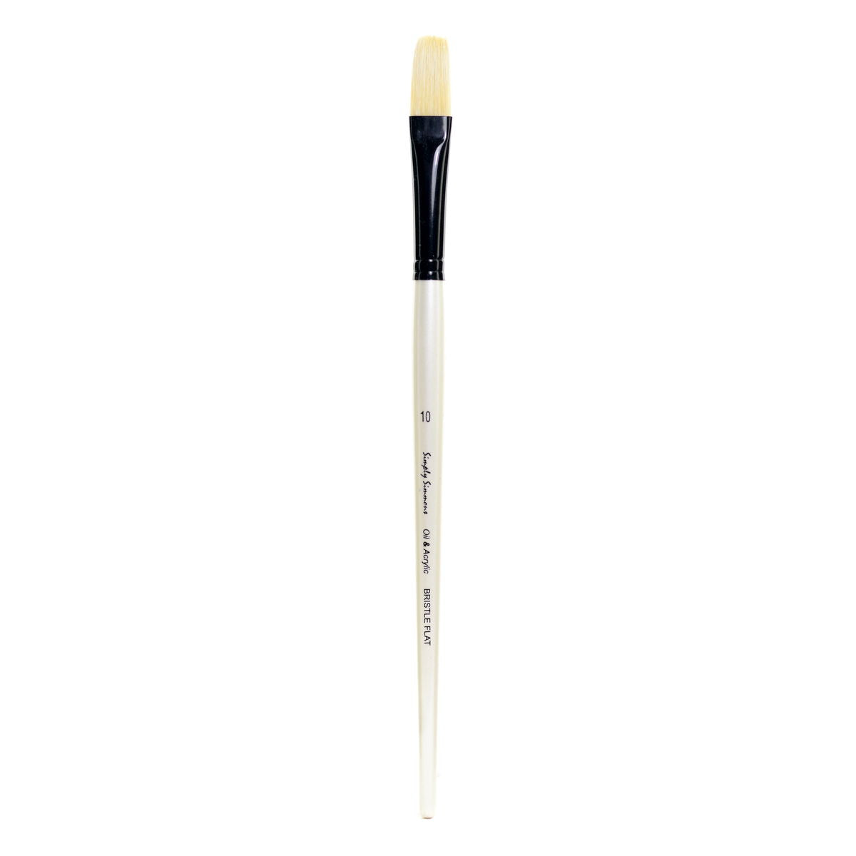 Simply Simmons Long Handle Brushes are made for oil and acrylic painting. The versatile range of dark-tipped Synthetic Filament Brushes provides excellent spring and a sharp, chiseled edge. The Natural Chunking Bristle Brushes provide maximum color hold and smooth blending. Both types have handsome pearlized white handles and are resin bonded to seamless black ferrules.