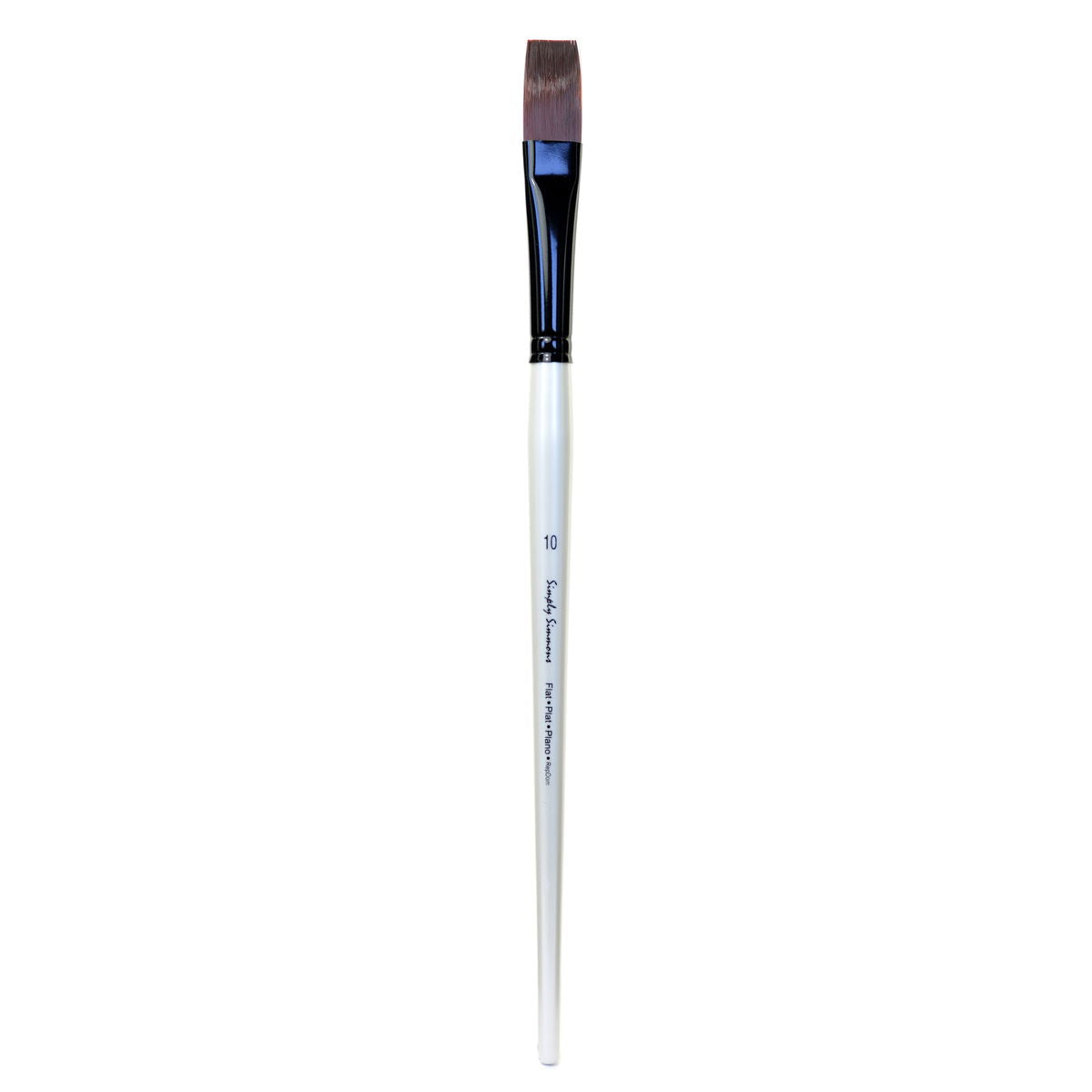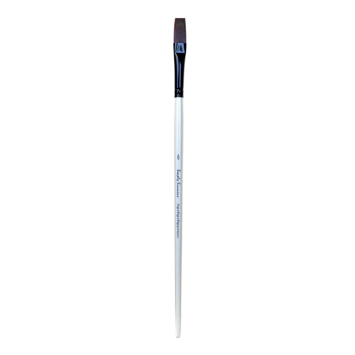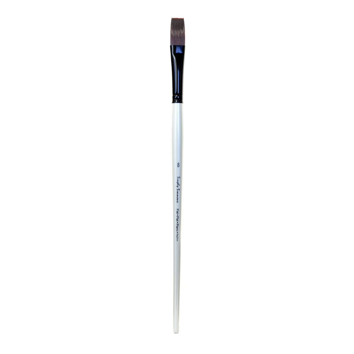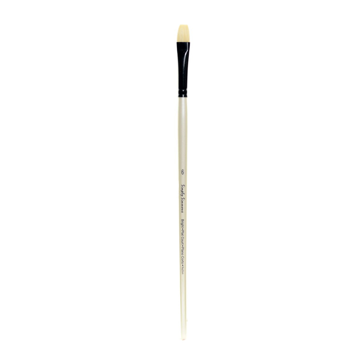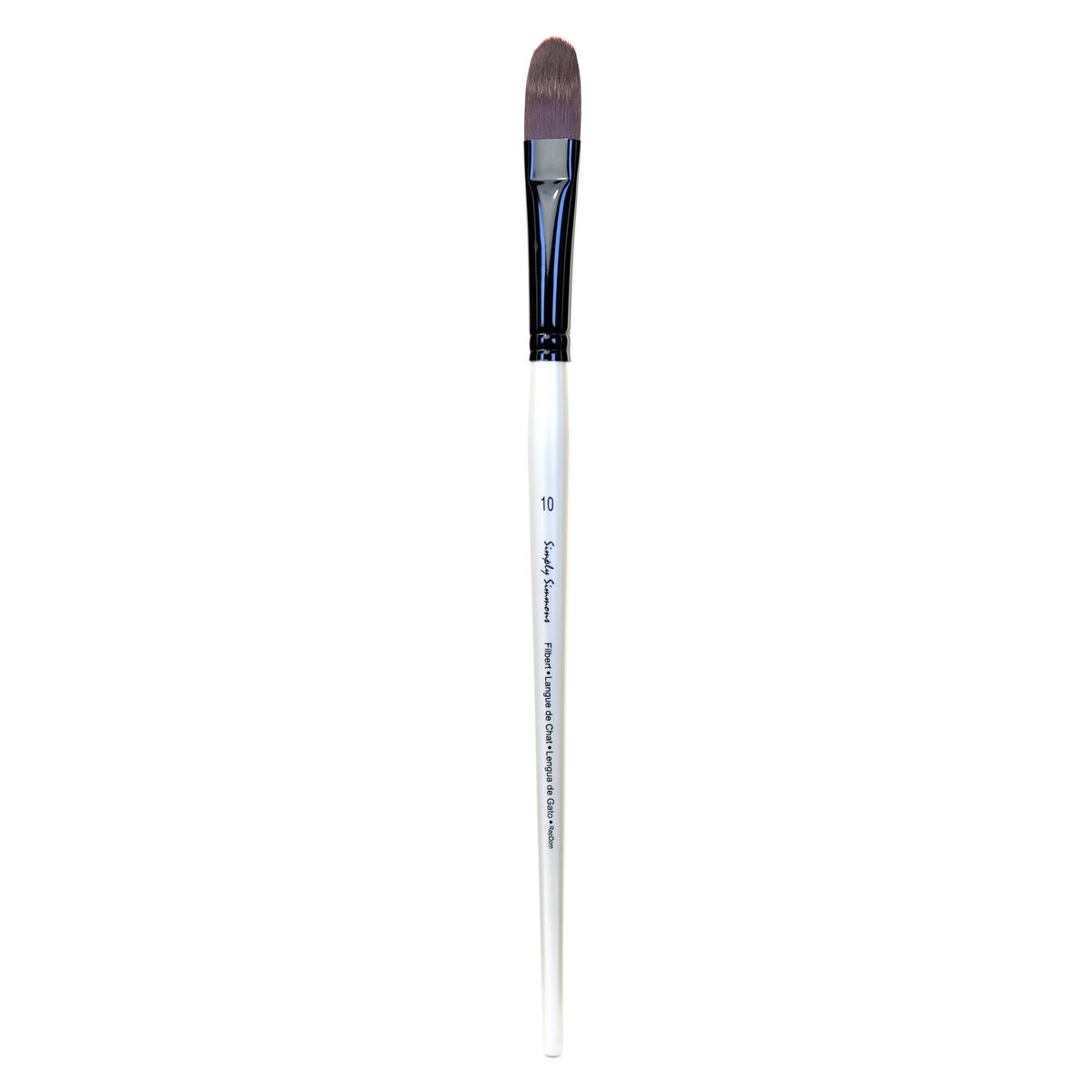 Simply Simmons Long Handle Brushes are made for oil and acrylic painting. The versatile range of dark-tipped Synthetic Filament Brushes provides excellent spring and a sharp, chiseled edge. The Natural Chunking Bristle Brushes provide maximum color hold and smooth blending. Both types have handsome pearlized white handles and are resin bonded to seamless black ferrules.