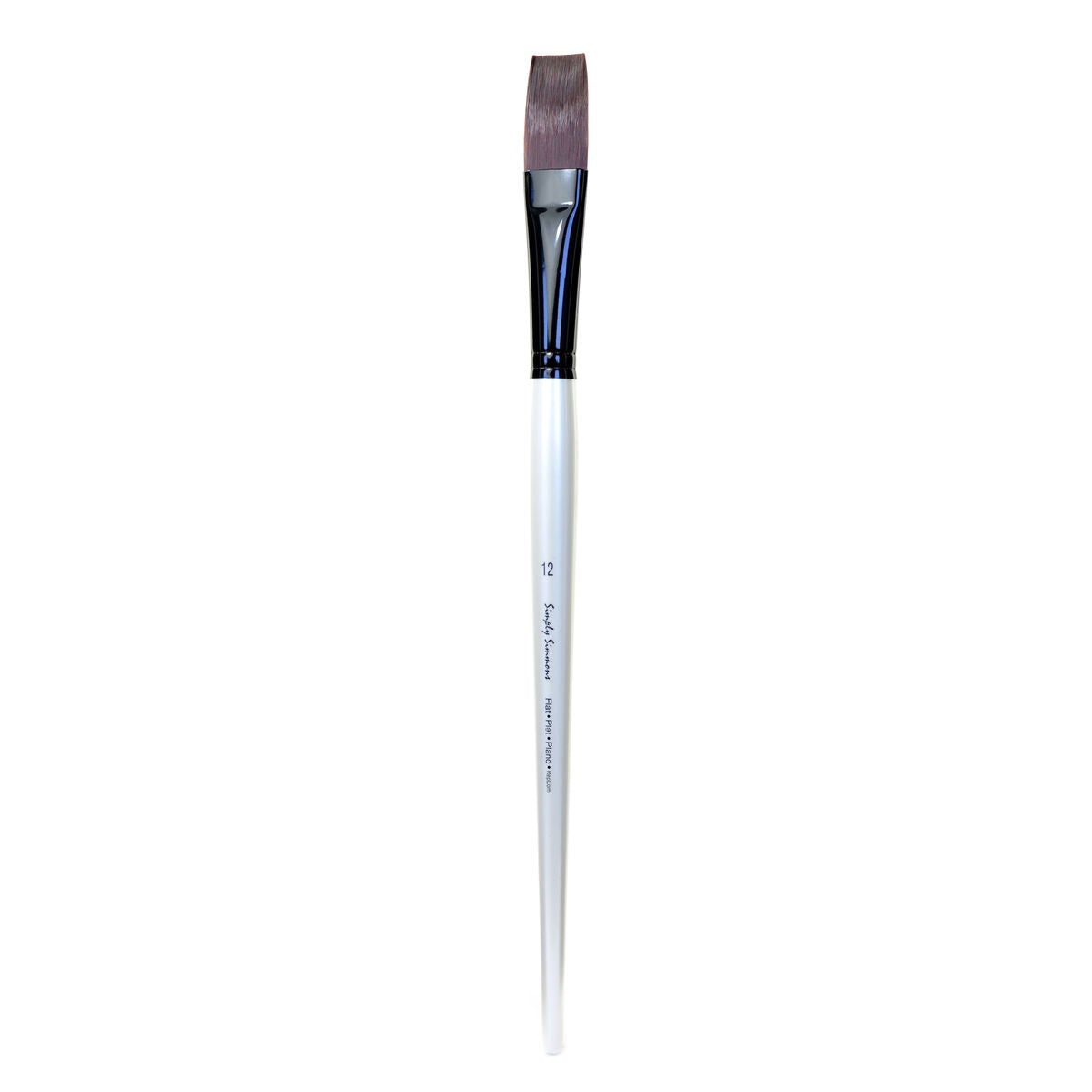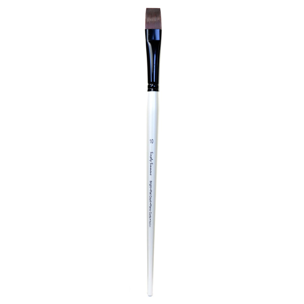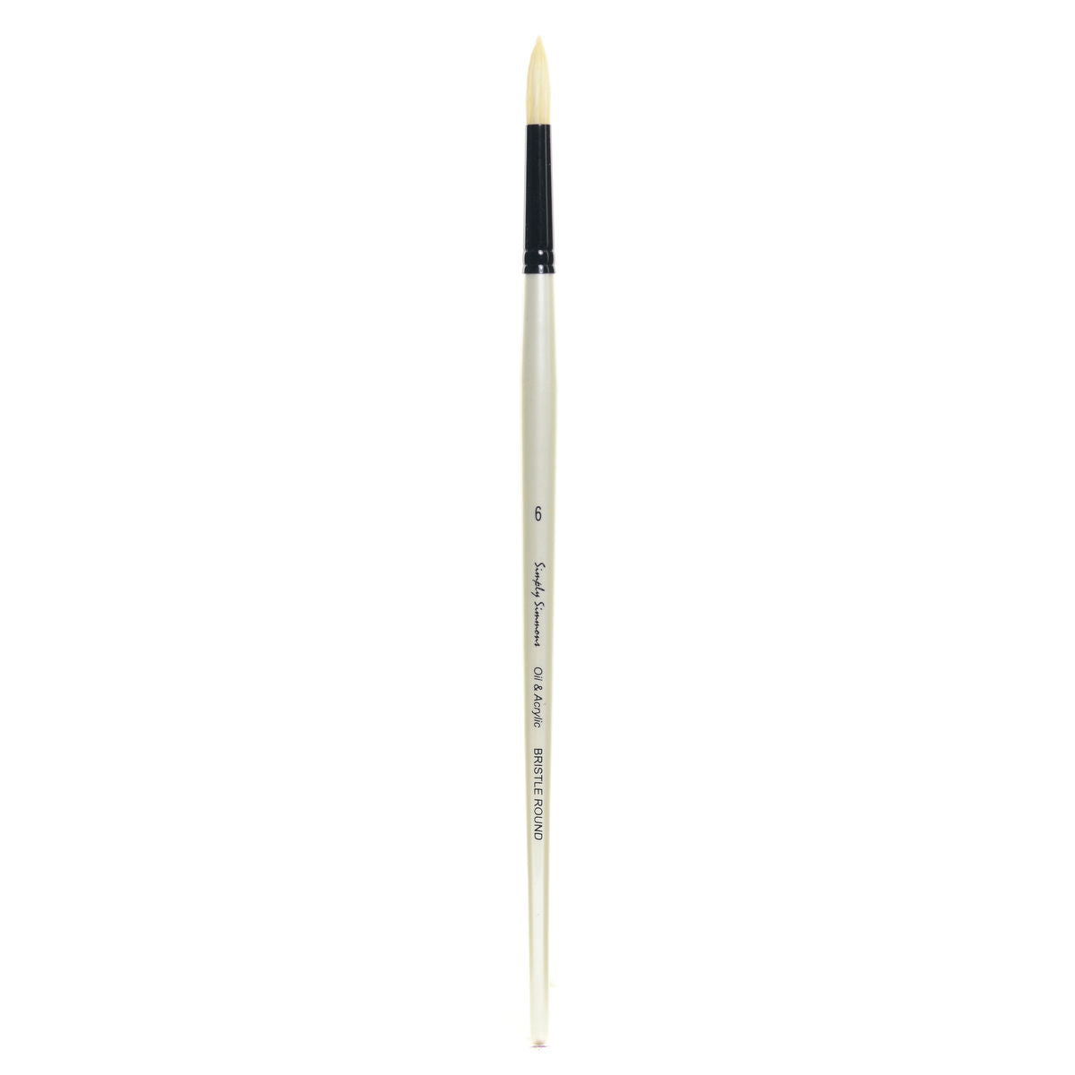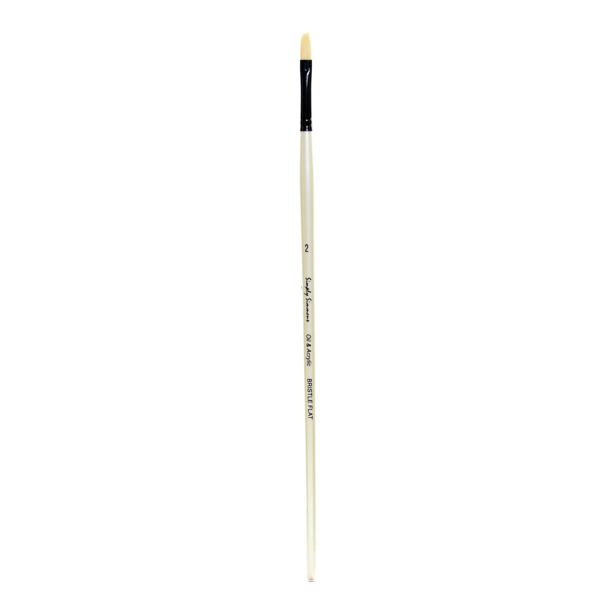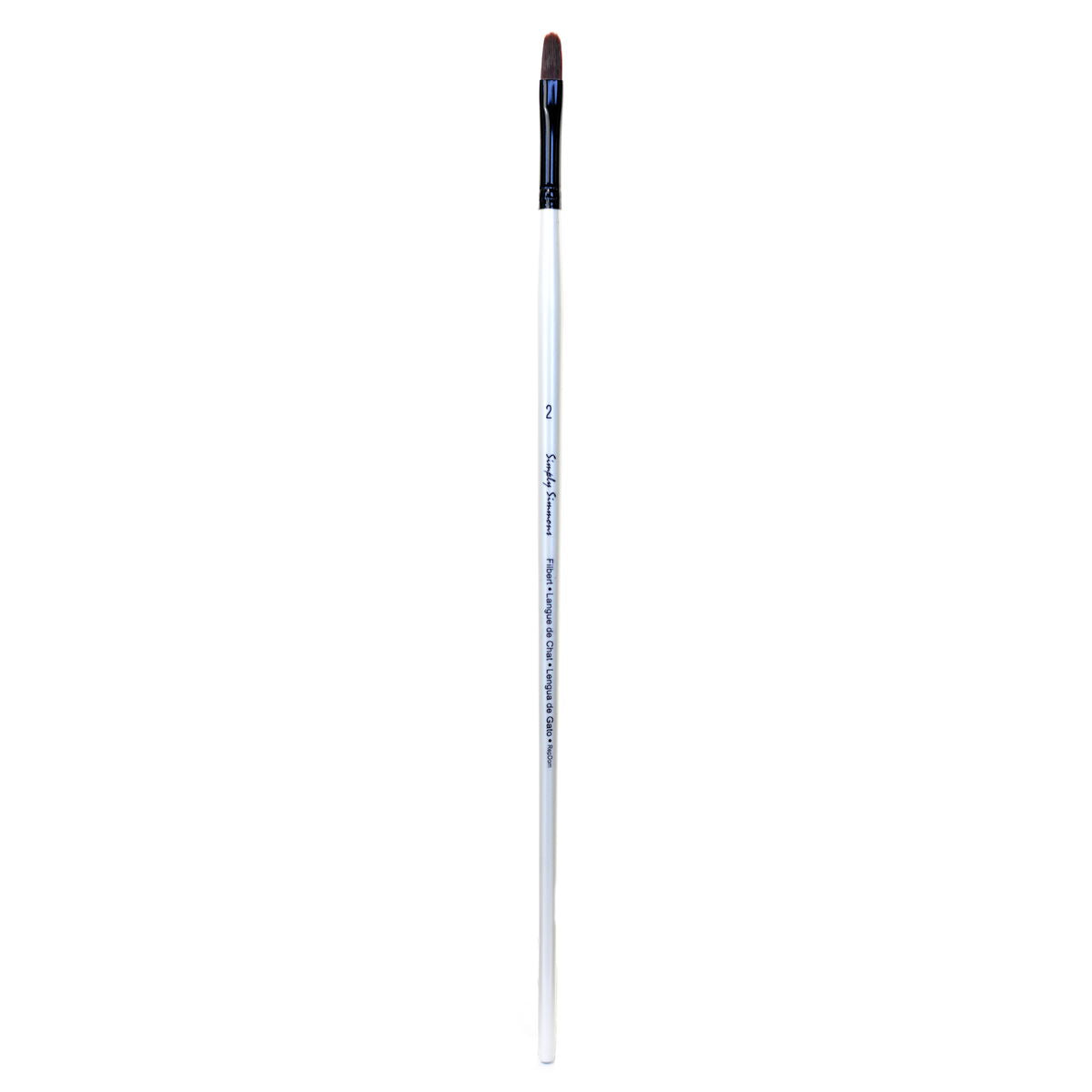 Simply Simmons Long Handle Brushes are made for oil and acrylic painting. The versatile range of dark-tipped Synthetic Filament Brushes provides excellent spring and a sharp, chiseled edge. The Natural Chunking Bristle Brushes provide maximum color hold and smooth blending. Both types have handsome pearlized white handles and are resin bonded to seamless black ferrules.