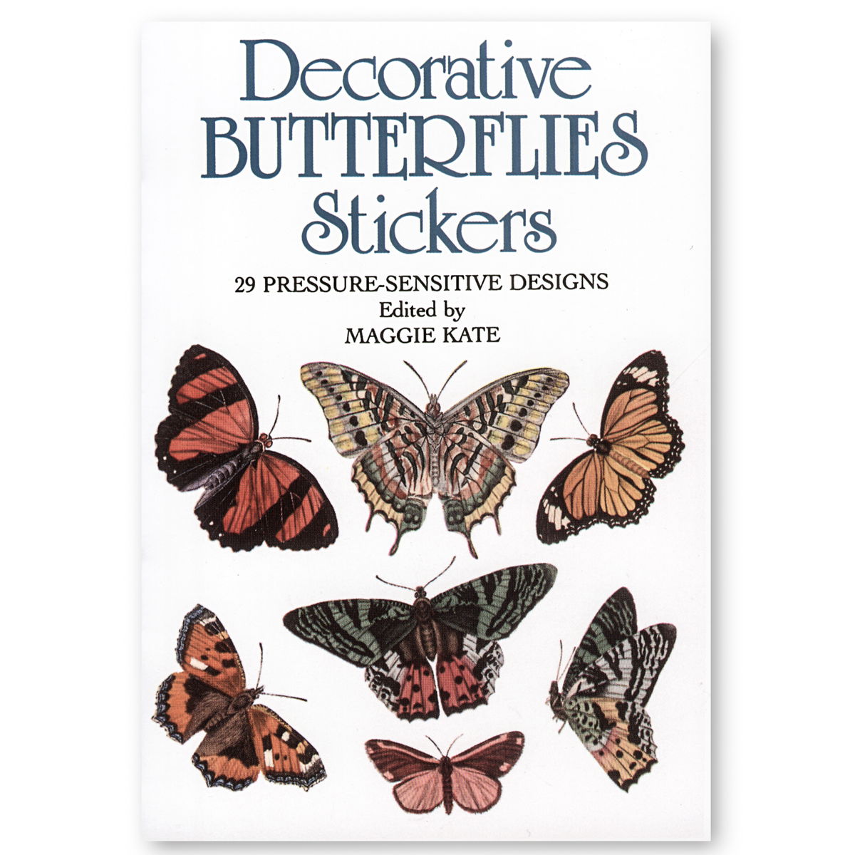 Among nature's most delicate and graceful creatures, butterflies add a note of ethereal beauty to the summer landscape. Now you can add the decorative charm of butterflies to windows, posters, notecards and other flat surfaces. It's easy with this inexpensive collection of 29 pressure-sensitive stickers revealing a spectacular, brilliantly colored display of Lepidoptera. The stickers come in a variety of sizes and shapes and Dover's handy book format keep them clean and fresh until ready for use. Paperback, 29 full-color stickers on 4 plates. 4 in. x 5 3/4 in. book. ISBN:486272885. DOVER