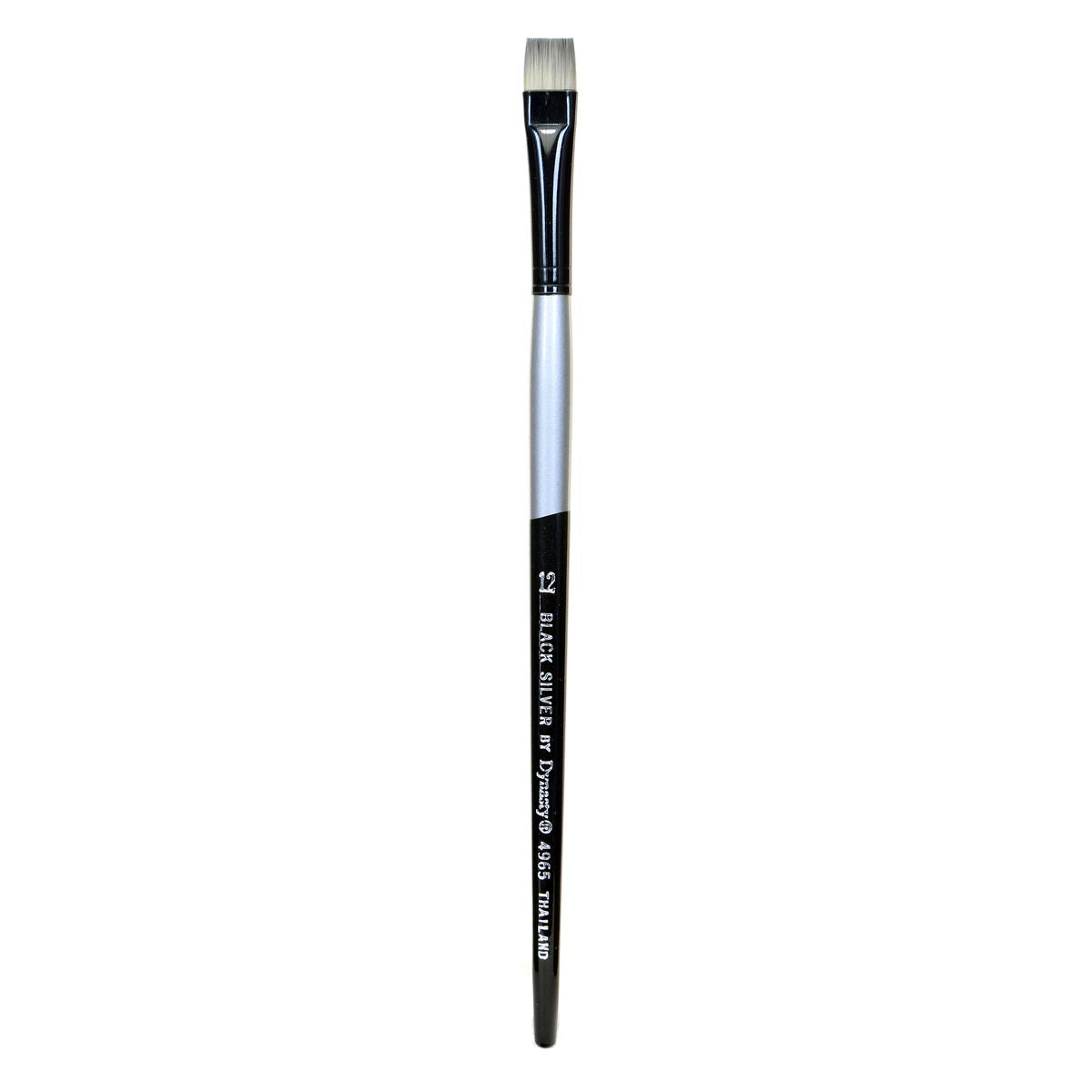 The Dynasty Black Silver brushes are the ideal brush for the serious art student. These brushes are durable and versatile, and with their one-price program they are affordable. Black Silver brushes are crafted from a proprietary mixture of synthetic fibers that maintain chisel and point while holding pigment of any medium with its sizable reservoir.