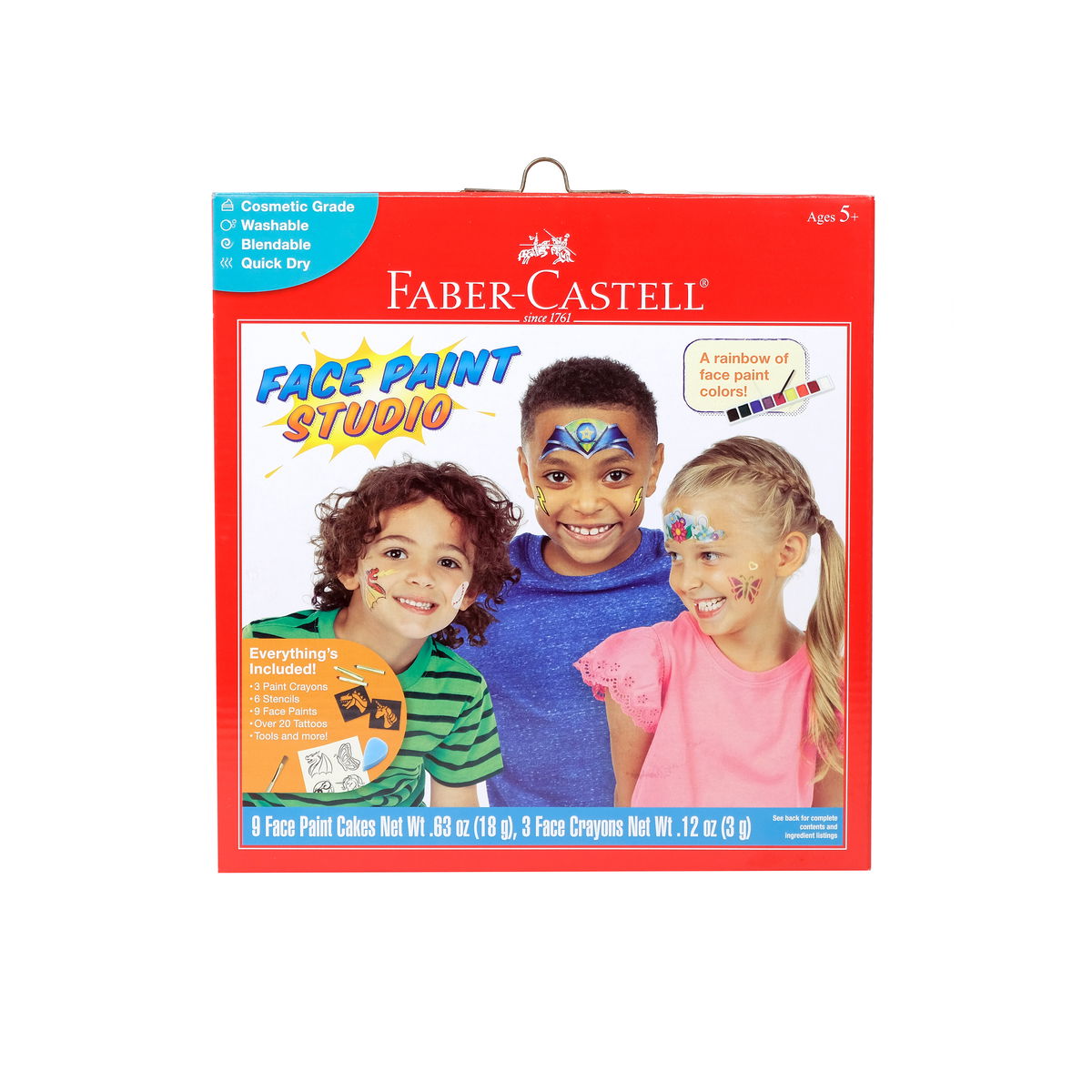 Perfect for beginners, this complete face painting kit is great for all occasions! Each of the cosmetic-grade components has been tested for quality and skin safety. The water-based opaque face paints offer great coverage that is quick-drying to avoid smudging and achieve layering. Layer, blend, and create unique designs using the self-adhesive stencils and gold foil decals. The washable formula is non-staining and easily washes off. The 21-piece set includes 7 face paint cakes (red, yellow, blue, green, black, orange, and white), 2 shimmer face paint cakes (pearl purple and pearl pink), 3 face paint crayons (red, black, and white), 1 detail brush, 1 broad brush, 1 stamping sponge, 1 blending sponge, self-adhesive stencils, face decals, and easy-to-follow instructions. For ages 5+