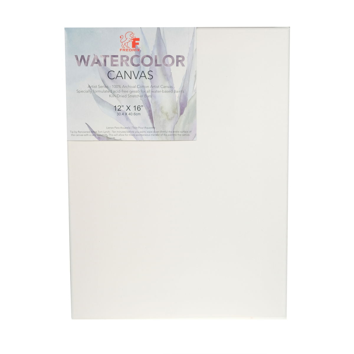 This authentic cotton canvas by Fredix is specially coated to provide an absorbent surface that performs similar to a cold-pressed or rough watercolor paper. This combination creates a unique texture blend of an all-natural woven material with a proprietary patented gesso for all water-based paints. The surface delivers a one-of-a-kind watercolor painting experience captured on the distinctive look of woven canvas. The durable painting surface will not buckle when wet and won t tear like paper, so you can scratch, scrape, or staple it. Wet and rewet it without damaging the durable canvas. Comprised of 100% cotton, the acid-free canvas is stapled to the back so you can paint on all four edges and hang without a frame. Frame with or without glass. Kiln-dried stretcher bars.