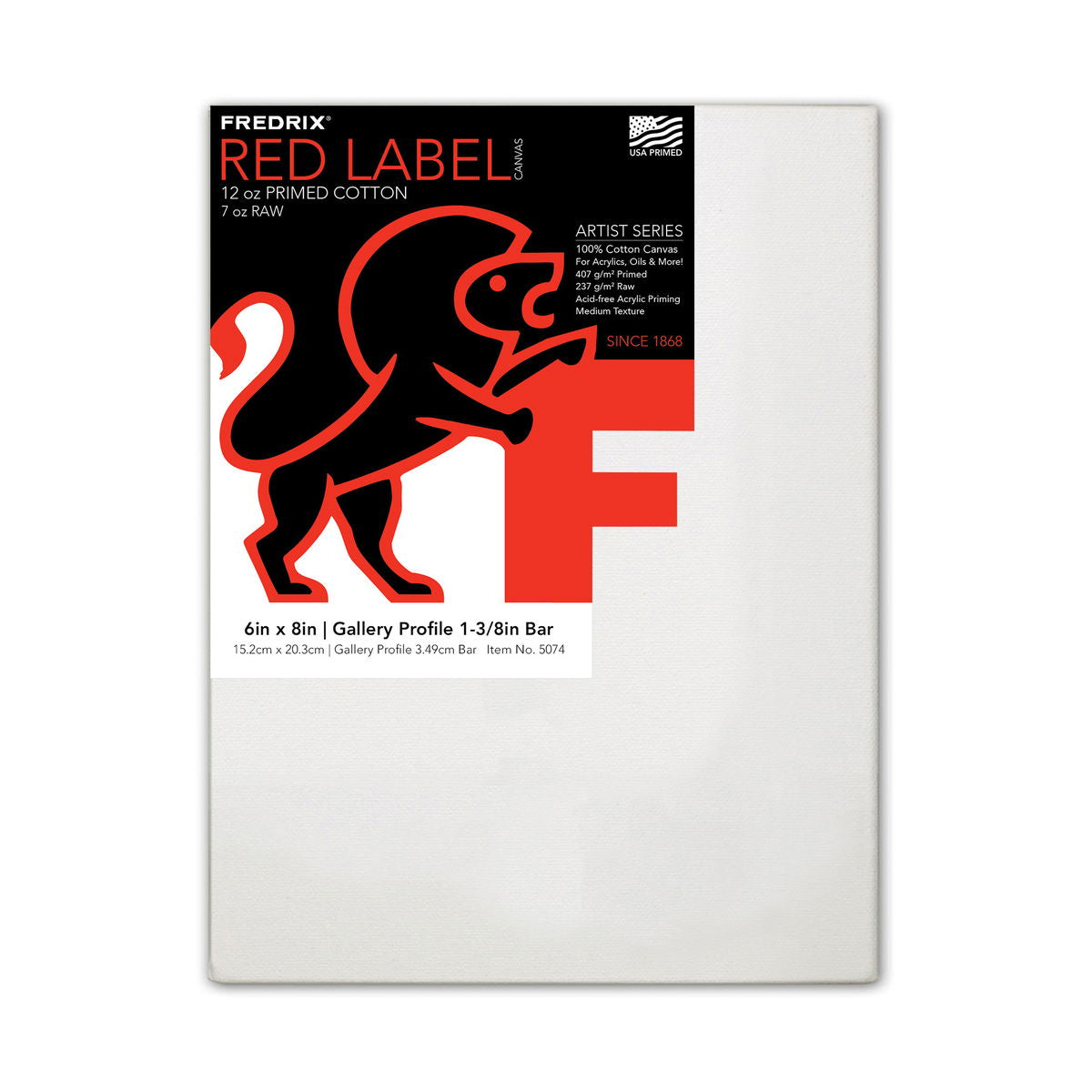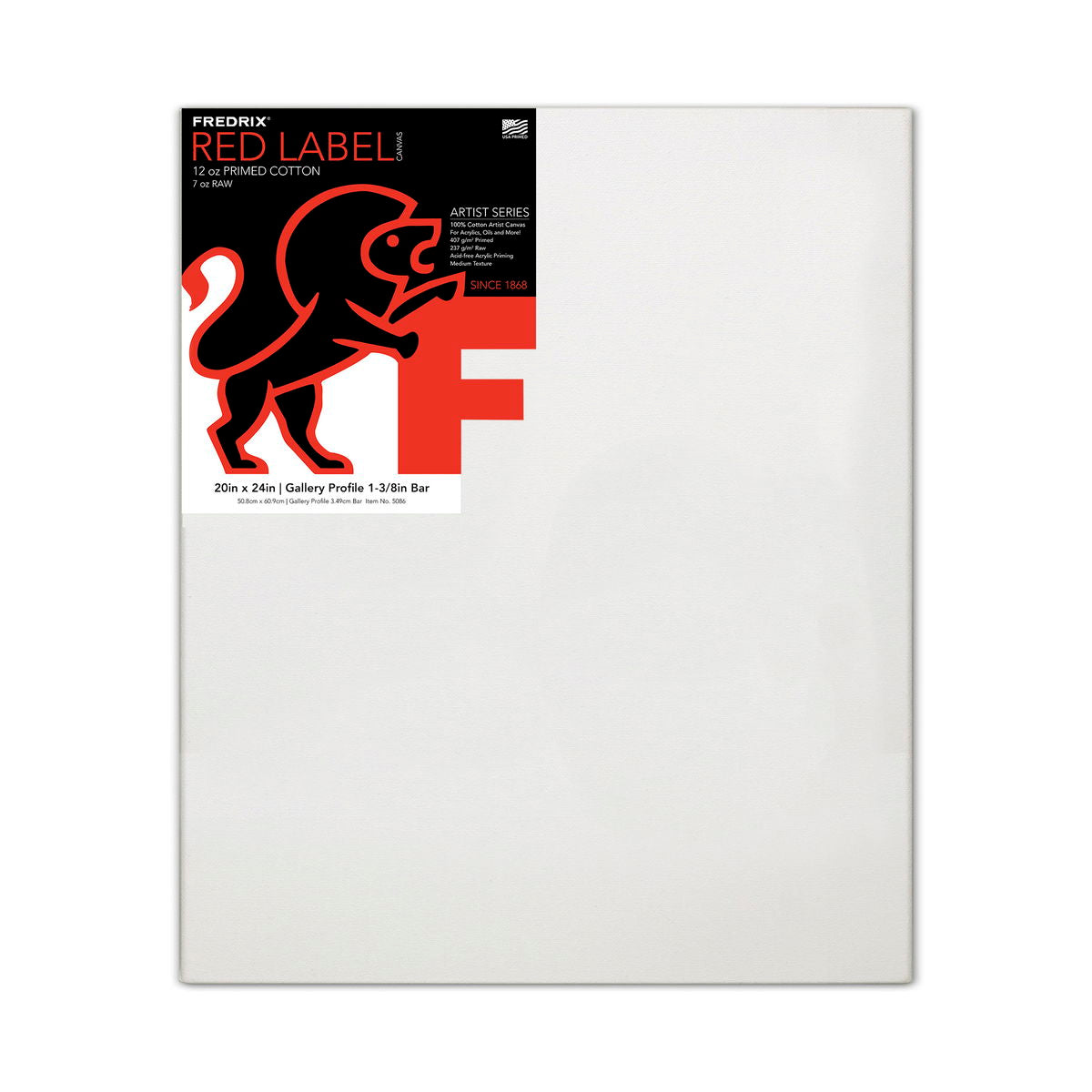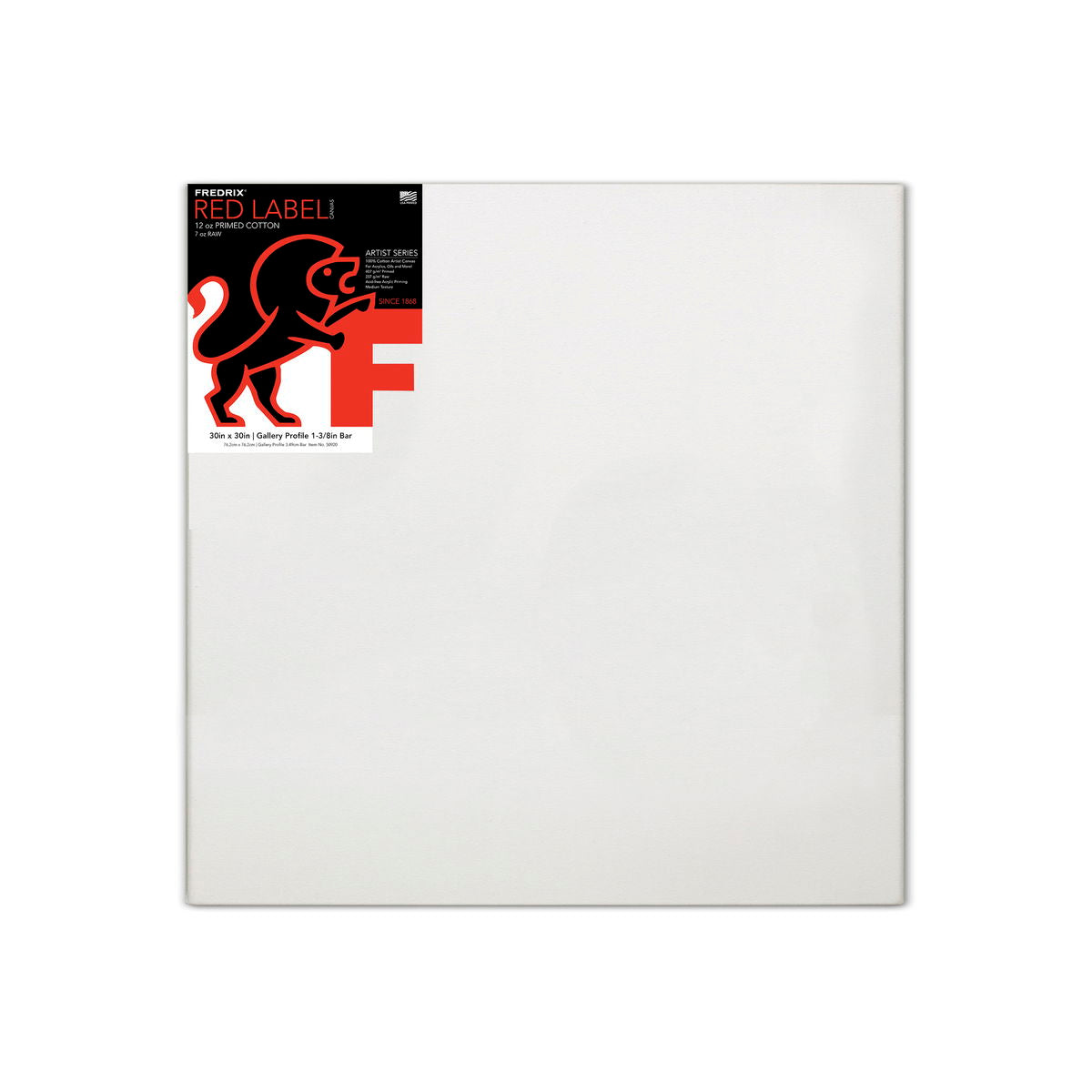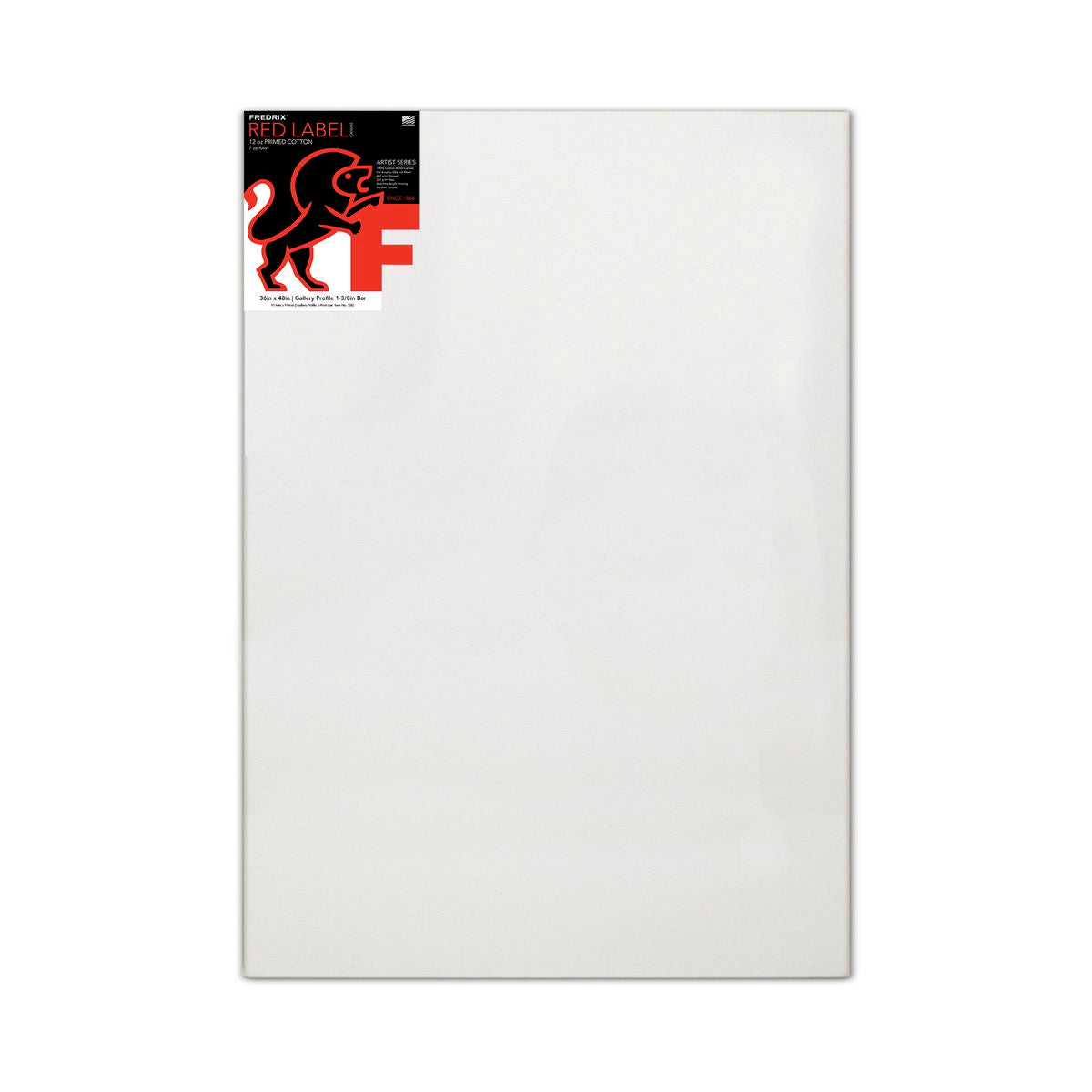 Because Red Label Gallerywrap Stretched Canvases are stapled on the back rather than on the edges, you can paint all four sides and hang them with or without a picture frame. Every canvas is made from acid free, medium weight cotton duck with a medium texture - not too rough and not too smooth. Red Label Gallerywrap Stretched Canvases are double primed and provide an excellent support for both oil and acrylic paints. They are mounted on heavy duty, gallery style stretcher frames and are 1 1/2 in. deep. Sizes that include cross bracing: 24 in. x 48 in., 30 in. x 40 in., 36 in. x 48 in., 36 in. x 60 in., and 48 in. x 60 in. Sizes that include double bracing: 48 in. x 48 in.