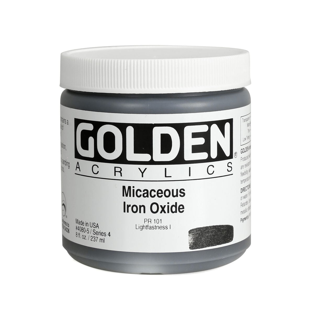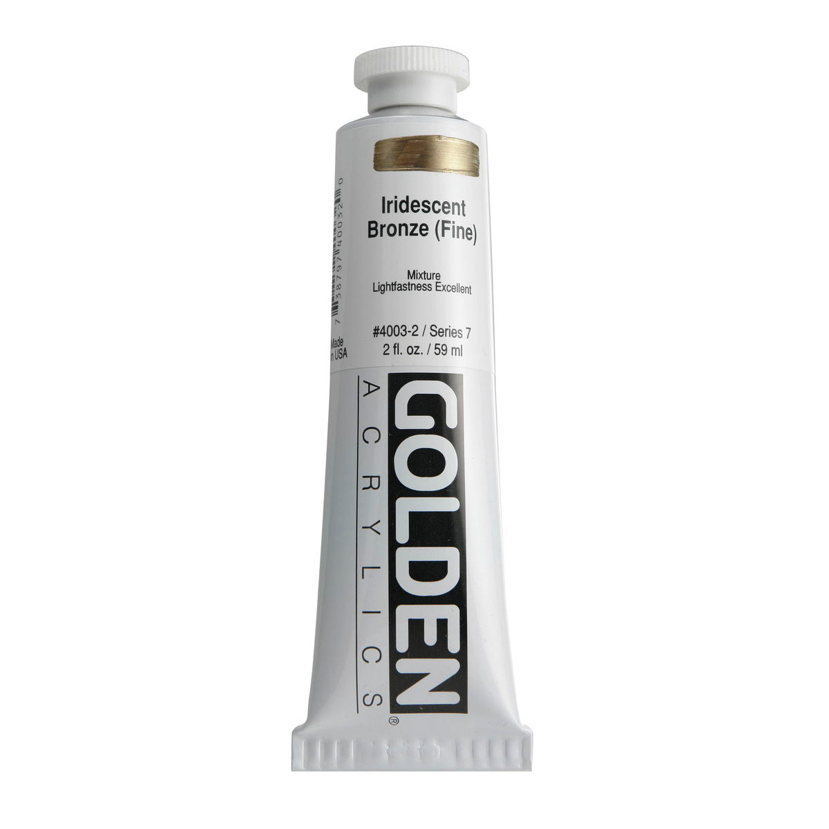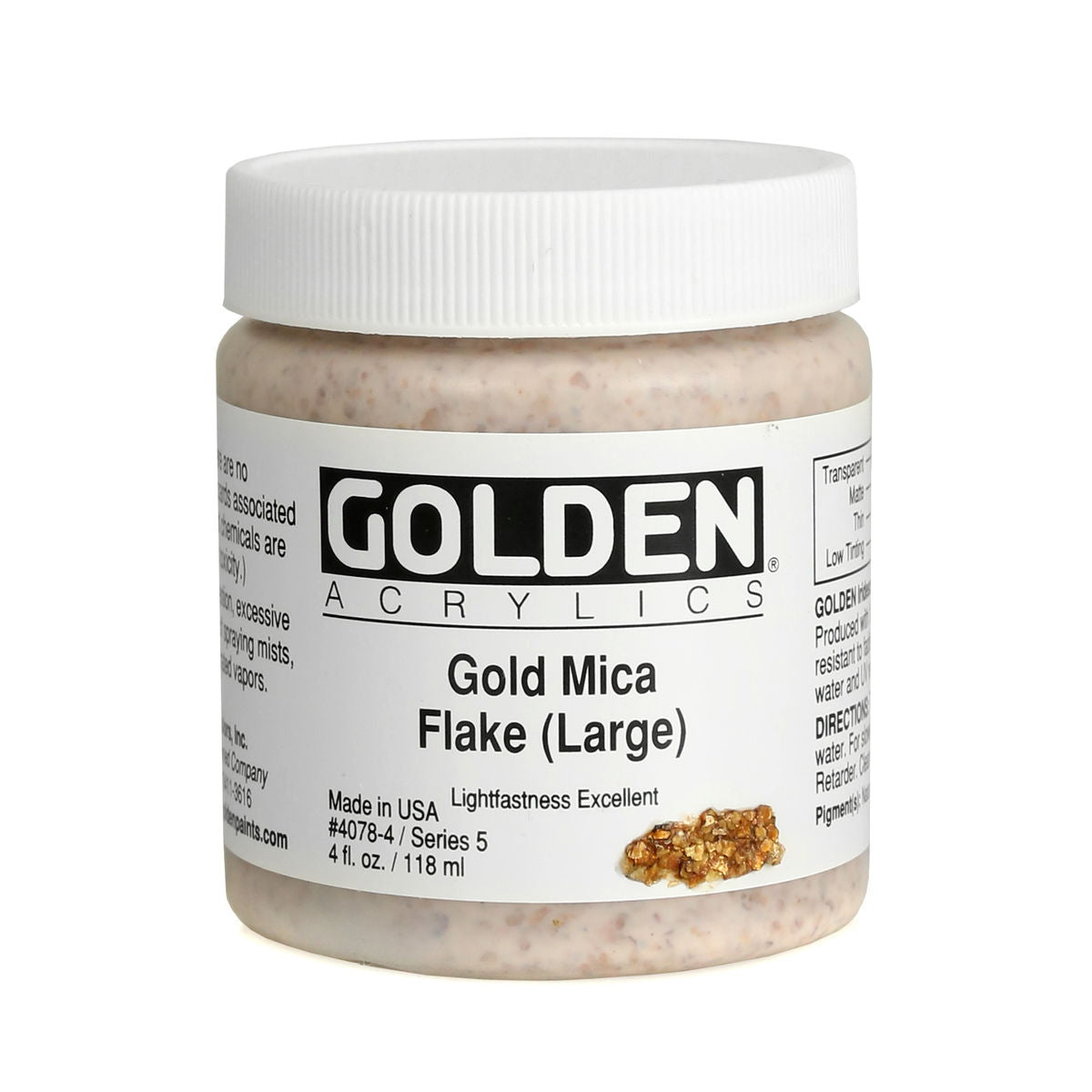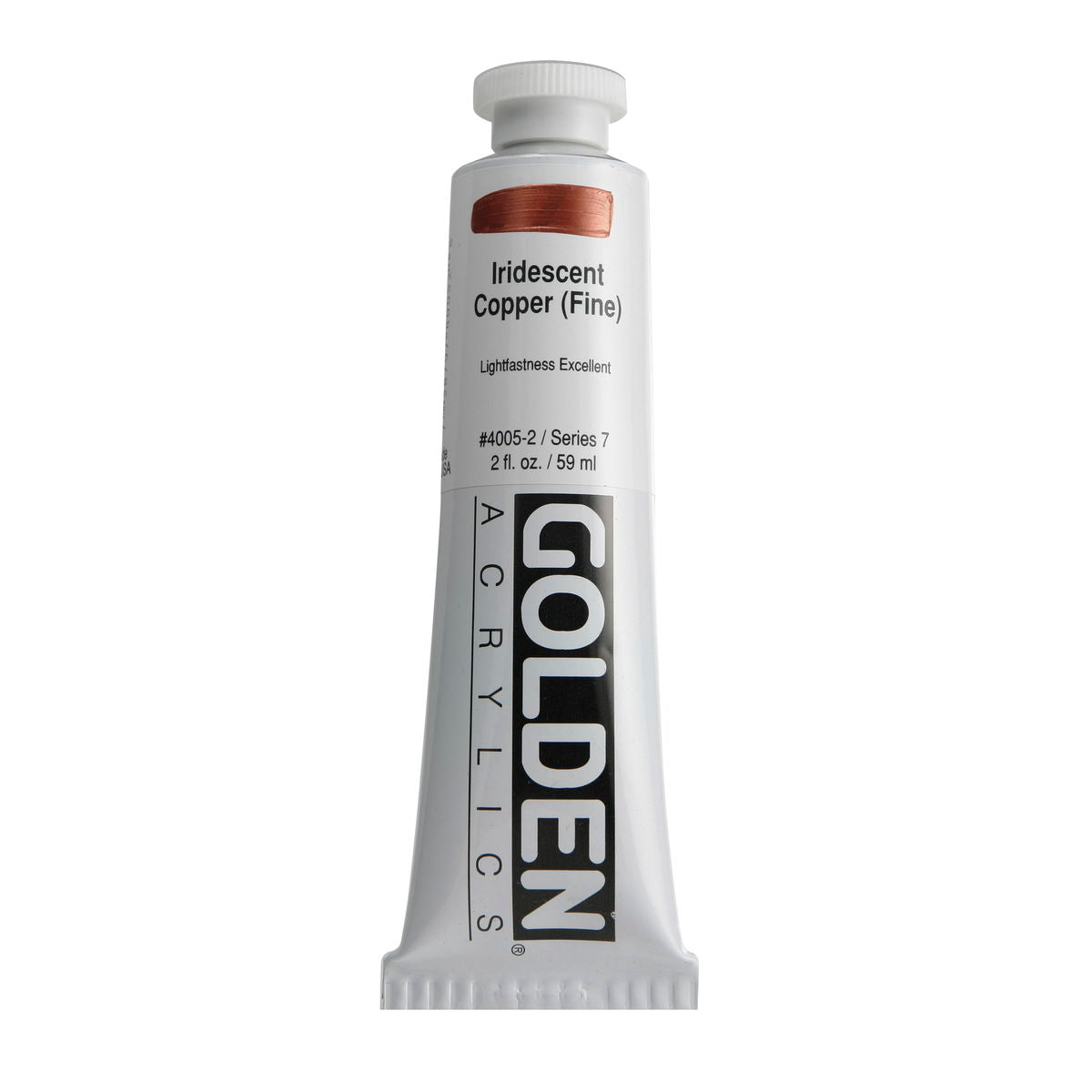 Golden Iridescent Acrylics may be used alone or with other colors, gels and mediums. Iridescent Pearl is extremely useful for mixing with other colors for pearl-like qualities. The Iridescent colors are very resistant to fading and will not oxidize or tarnish. Most Iridescent Acrylics are available in fine and coarse. Coarse Iridescents offer a range of highly reflective pigments including stainless steel and gold mica flakes. Fine Iridescent Colors offer a smooth velvety finish and blend well with other colors. Golden Interference Acrylic Colors offer a unique "interference flip" when viewed from different perspectives. Interference Colors flip between a bright opalescent color and its opalescent complement. When applied over white or lighter surfaces, the Interference Color is less obvious and the "flip" effect is more obvious. When applied over black or darker surfaces, the Interference Color is more obvious and the "flip" effect is less obvious. Adding a very small amount of black to Interference Colors produces deeper opalescent effects. Combine Interference Colors with Golden Gels (Gloss) and Golden Fluid Acrylic colors to produce an endless variety of colors and effects. Most Interference Colors are available in fine or coarse. These Golden Heavy Body Acrylics are produced with 100% Acrylic Polymer Emulsion. This produces a film with excellent flexibility, and chemical, water and UV resistance. The milky emulsion dries transparent, allowing the pigments to show their full color. Pigments are chosen for the greatest purity and permanency within each chemical class.