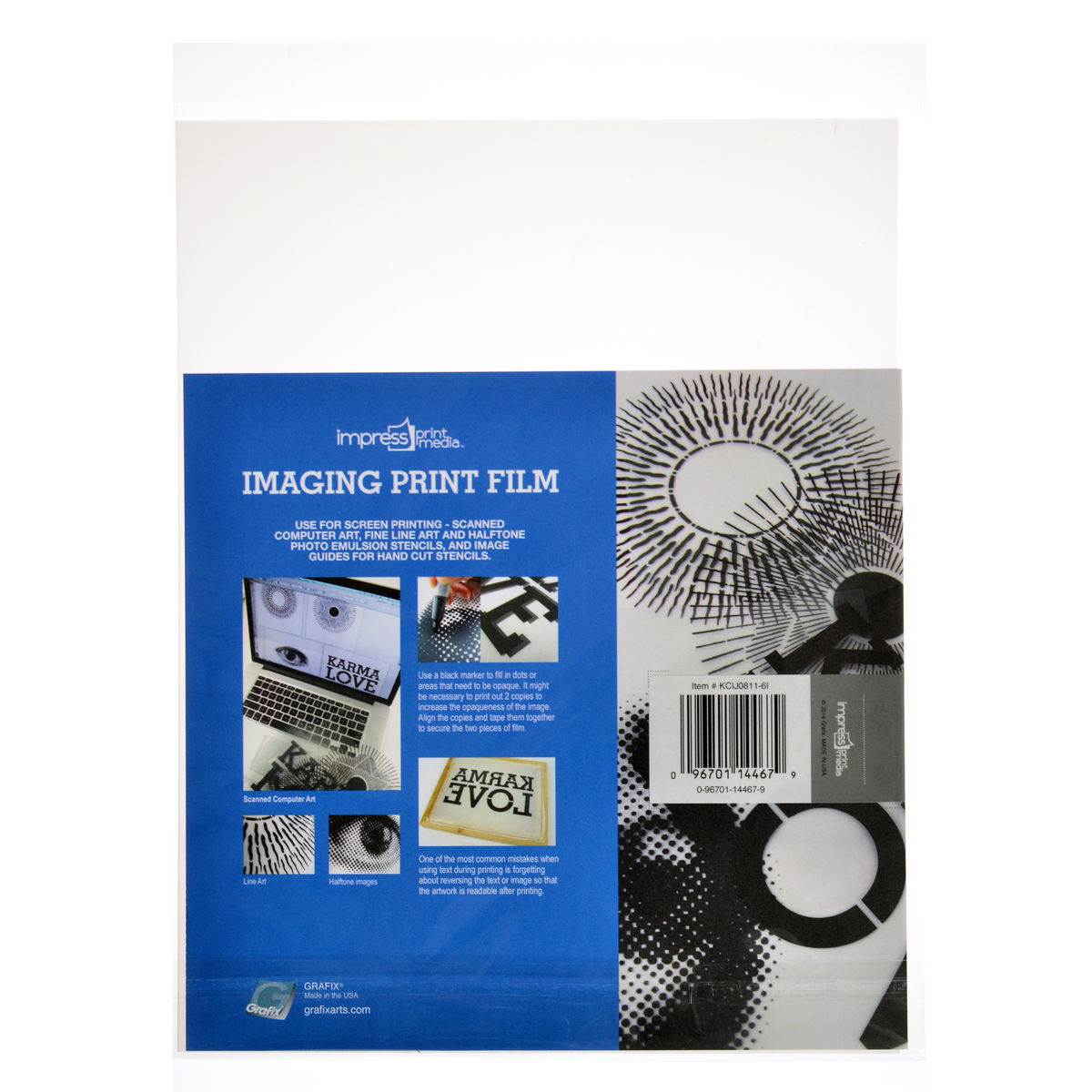 Grafix Imaging Pint Film is perfect for use as a masking stencil for creating clear film positives for the screen printing emulsion process. These films are compatible with either ink jet or laser printers. Use Imaging Film for fine line work, half tone images, and hand drawn or painted art stencils.
