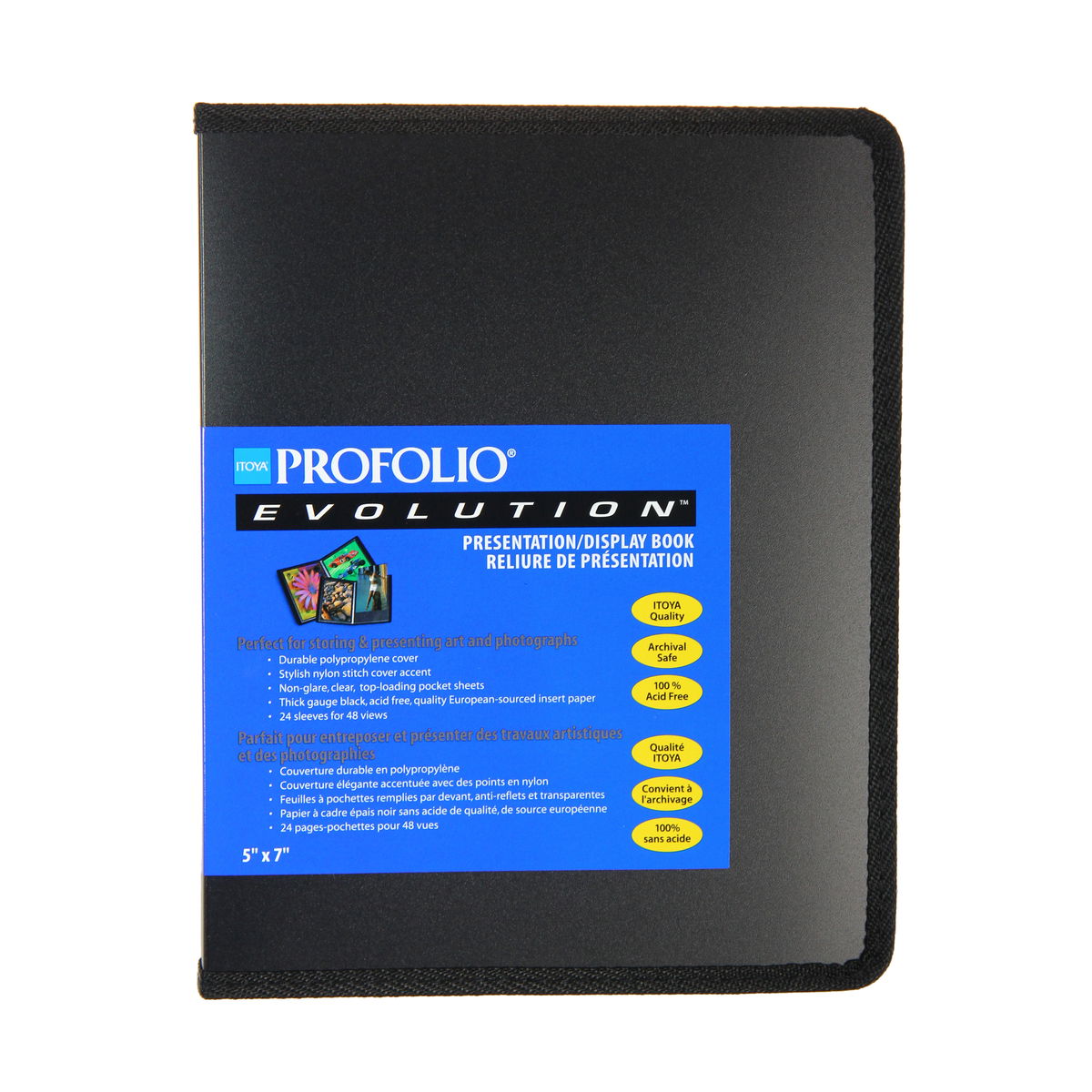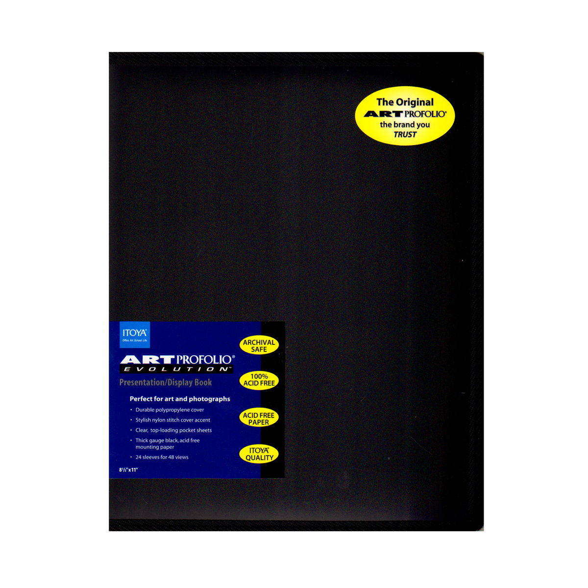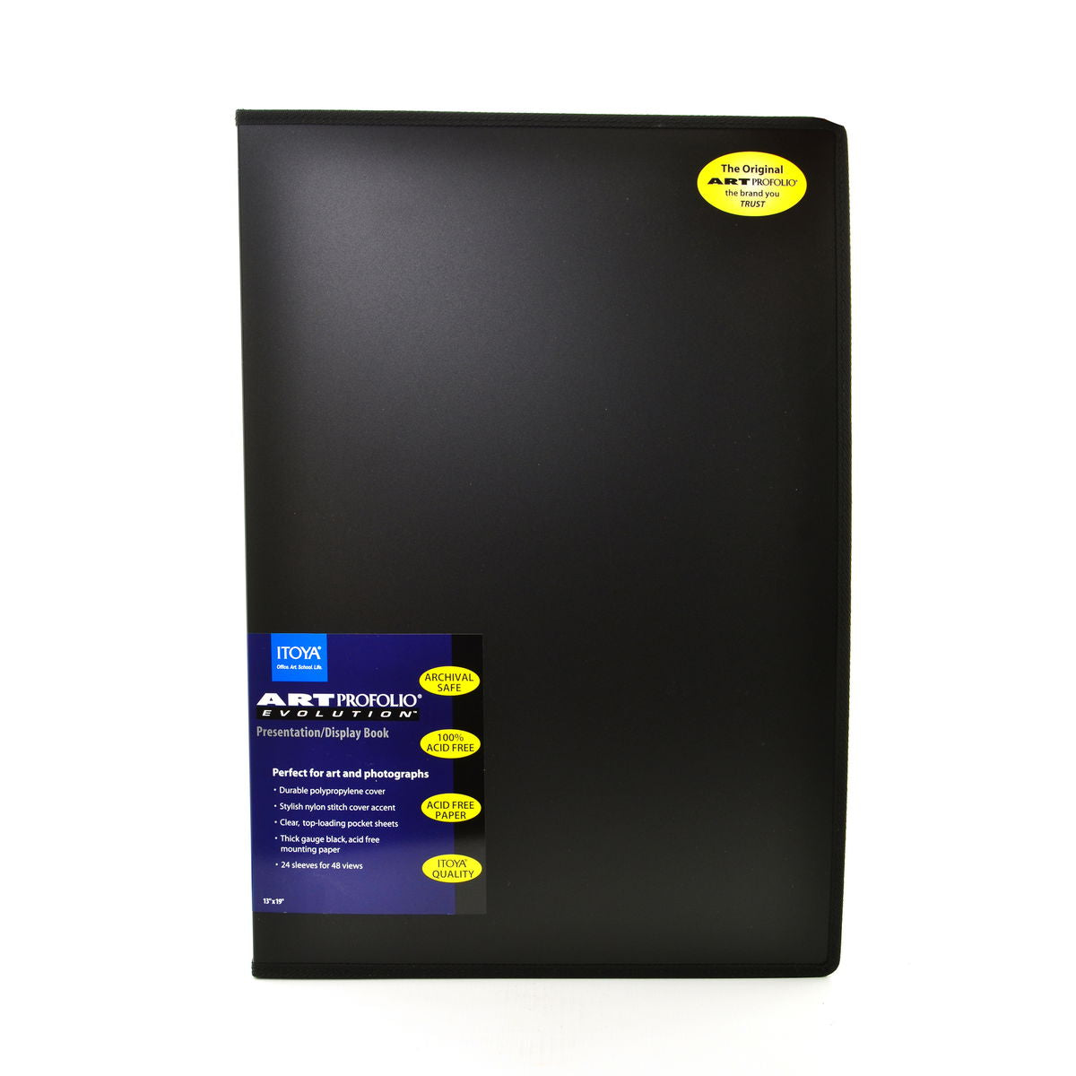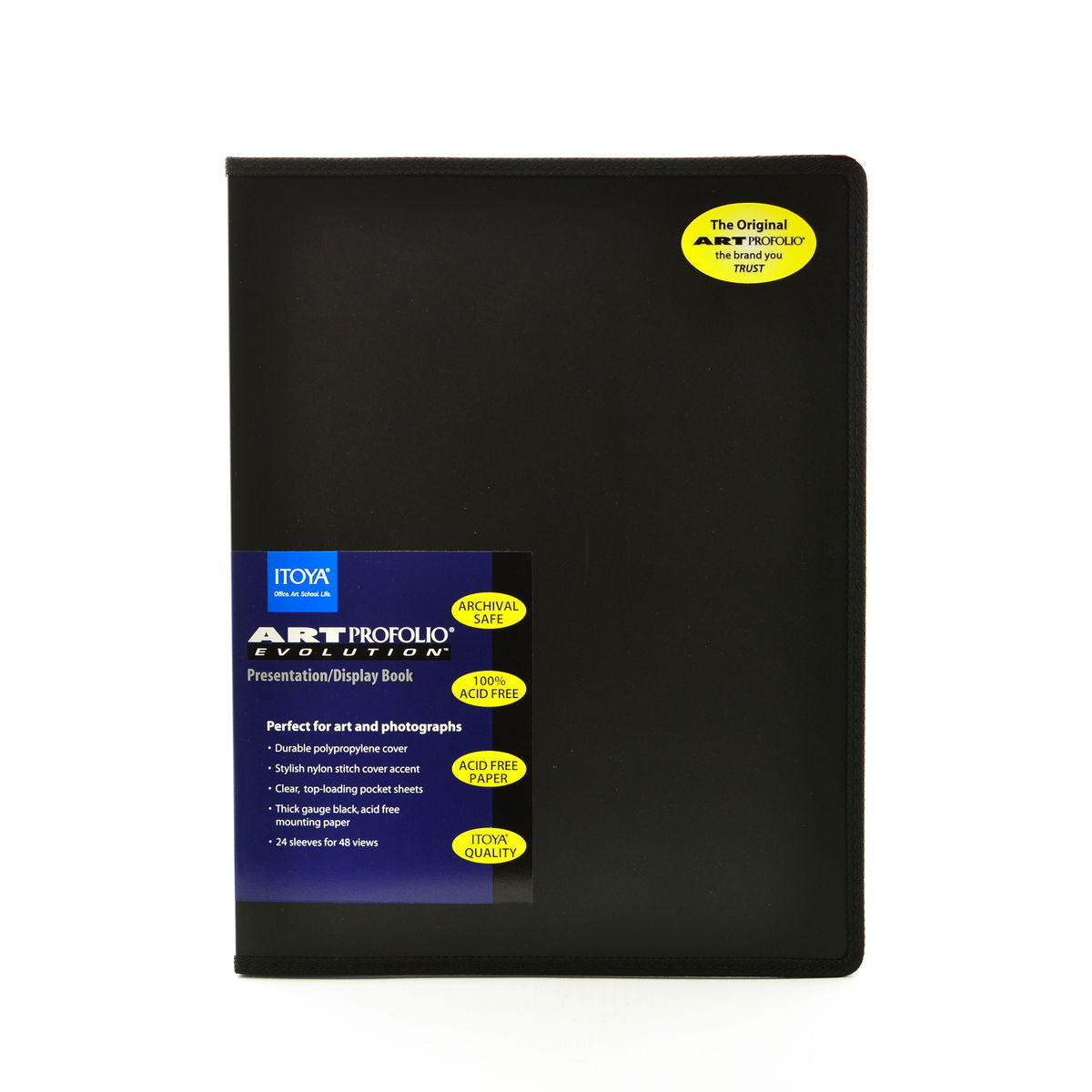 With its stylish nylon stitching and value price, the Art Profolio Evolution from Itoya is perfect for art, photo and poster storage! Each book features a durable polypropylene cover; crystal-clear, top-loading pocket sheets that resist moisture and dust; and quality crafted, thick-gauge, acid-neutral black mounting paper. The Art Profolio Evolution is completely acid-free and archival safe with 24 pocket sleeves for 48 views. Available in 12 sizes.
