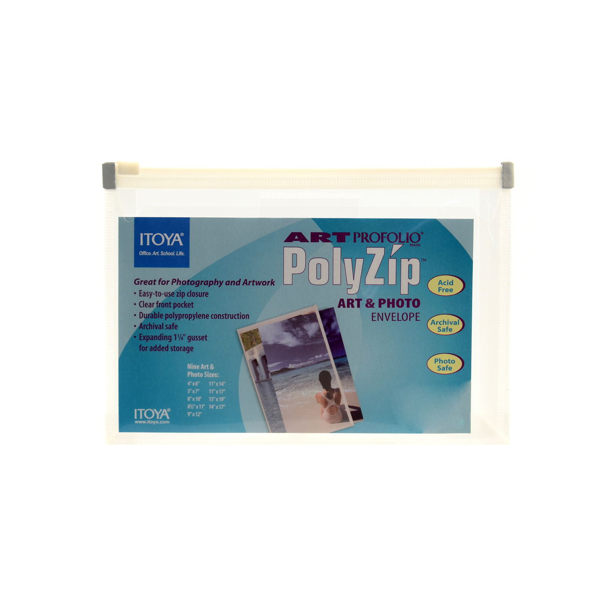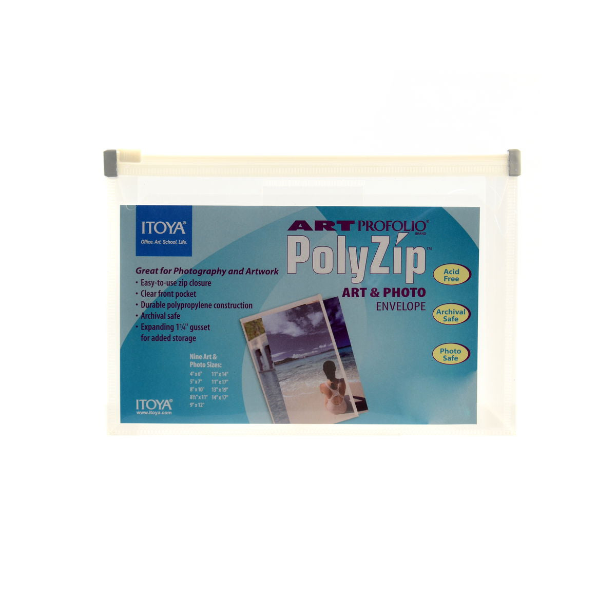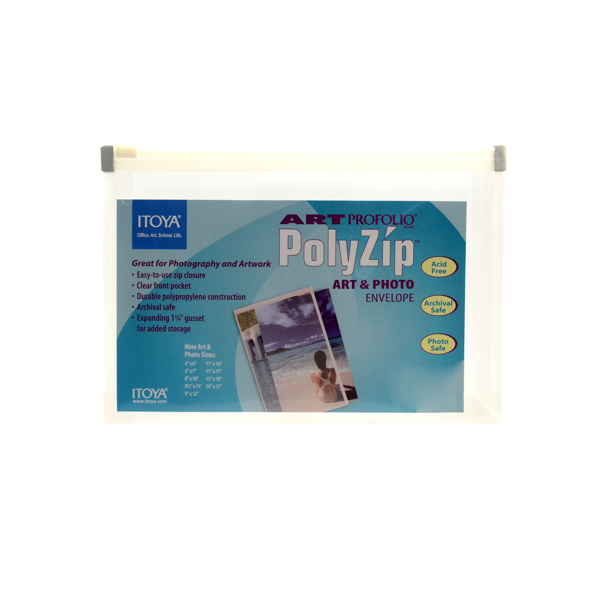 PolyZip Envelopes by ITOYA are the best way to organize and store your art and photography. The envelopes are made from durable polypropylene and are archival safe for long term storage. Featuring an easy to use zip closure, the envelopes seal out the elements to help resist dust and moisture. An expanding gusset provides flexible storage for a single or a stack of art and photo materials. The envelopes also have single sheet pockets in the front for routing slips or content samples.