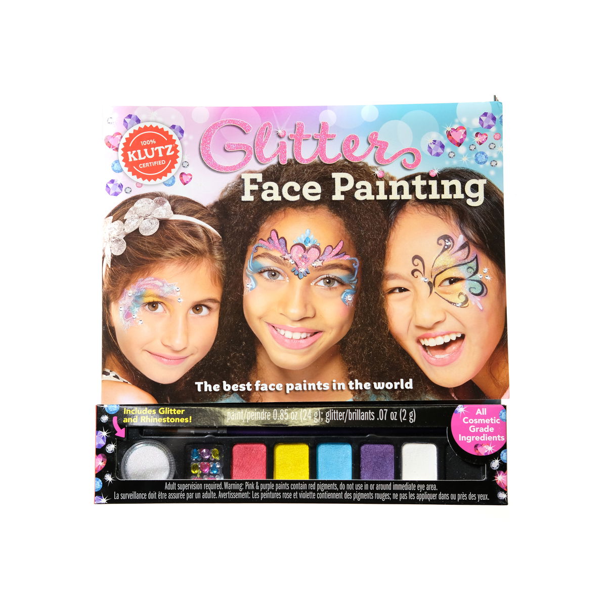 KLUTZ knows Face Painting, and now there's more! Brush up on your face painting skills and create shimmering masterpieces in minutes. This kit comes with 6 shimmery paint colors, more than 45 gems, and cosmetic-grade glitter. With 47 designs to choose from, you'll choose to sparkle wherever you go. Comes with: 6 shimmery colors of professional face paint 45+ gems Cosmetic-grade glitter Brush Sponge. 8.5x9.38 kit ISBN: 9781338037517