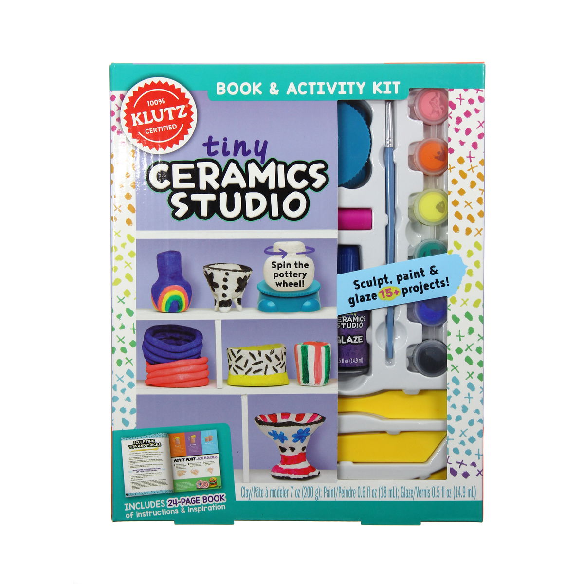 An entire pottery workshop inside a kid-friendly kit - complete with a miniature wheel! Young crafters will learn different ways to work with clay while developing hand-building techniques using a turntable and miniature bowl molds. Perfect for kids who love to work with their hands, manipulating clay helps boost motor skills while inspiring creativity. Allow their creations to air-dry, then paint them with vivid colors. Add a final coat of clear glaze to pots, plates, bowls, and vases to get that artisanal finish. Tiny Ceramics Studio includes a 24-page book of instructions and inspiration, air-dry clay, tiny turntable, 6 bright colors of paint, a brush, roller, 3 shaping tools, and a paper mold. ISBN: 9781338745245