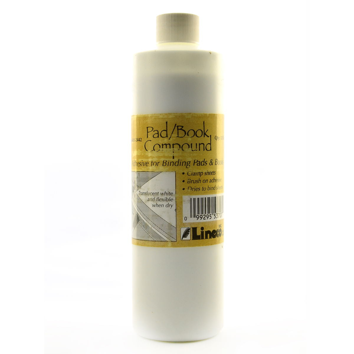 Making your own pads and forms is easier than ever, thanks to Padding Compound from Lineco. Simply stack pages flush, brush with compound and allow time to dry. Once dry, pages can be easily removed from finished pads one at a time.