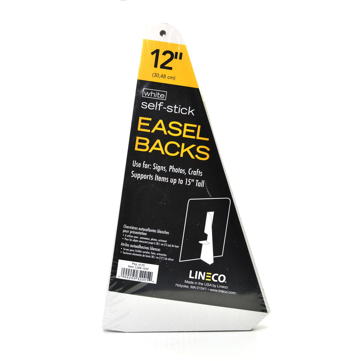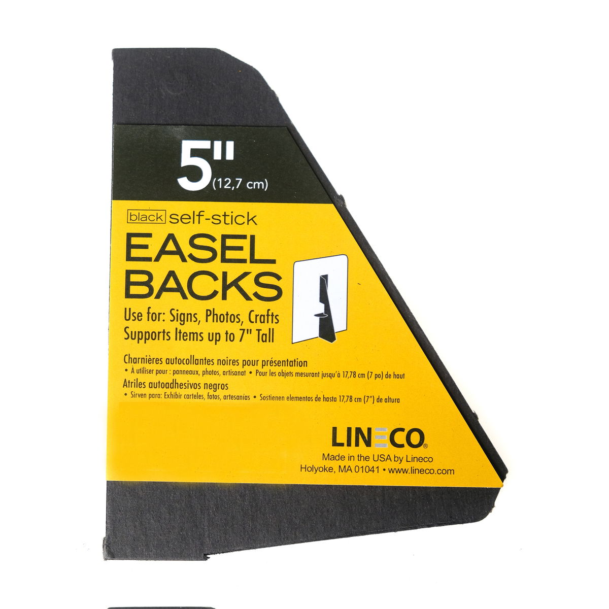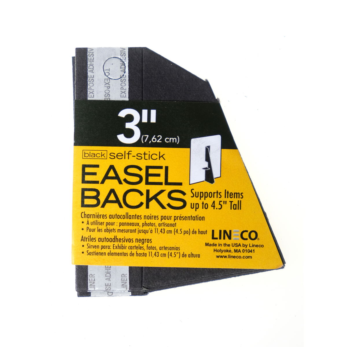 Lineco self-stick easels are attractive, sturdy, and easy to use. Application is fast and easy. Simply peel and stick. No messy glue. Use for signs, photos, and crafts. Supports items up 2-3 inches taller than the easel back itself. Offered in single or double wing.