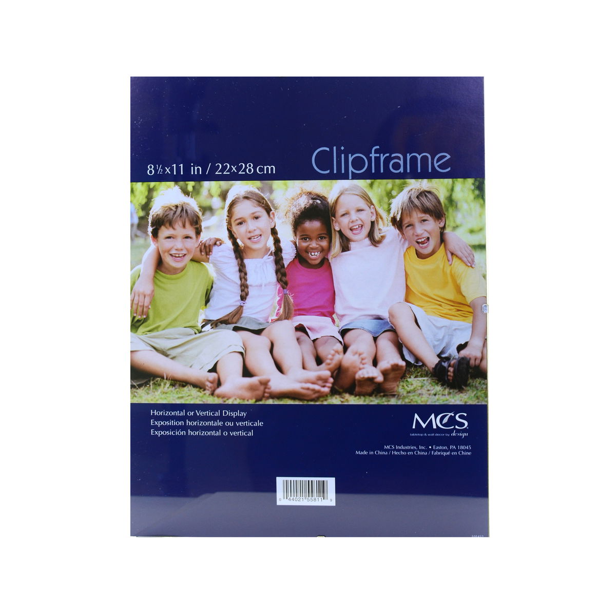 A contemporary wall frame with an elegant, frameless look. Unique clips have an almost invisible point in front and can hold glass, picture, and background together. Custom mats can be added. Clips also serve as wall hangers for vertical and horizontal position and keep frame 1/8 in. away from wall. Photos and pictures are easily inserted, no tools needed. The glass has polished edges and the background is rigid Masonite with white painted edges.