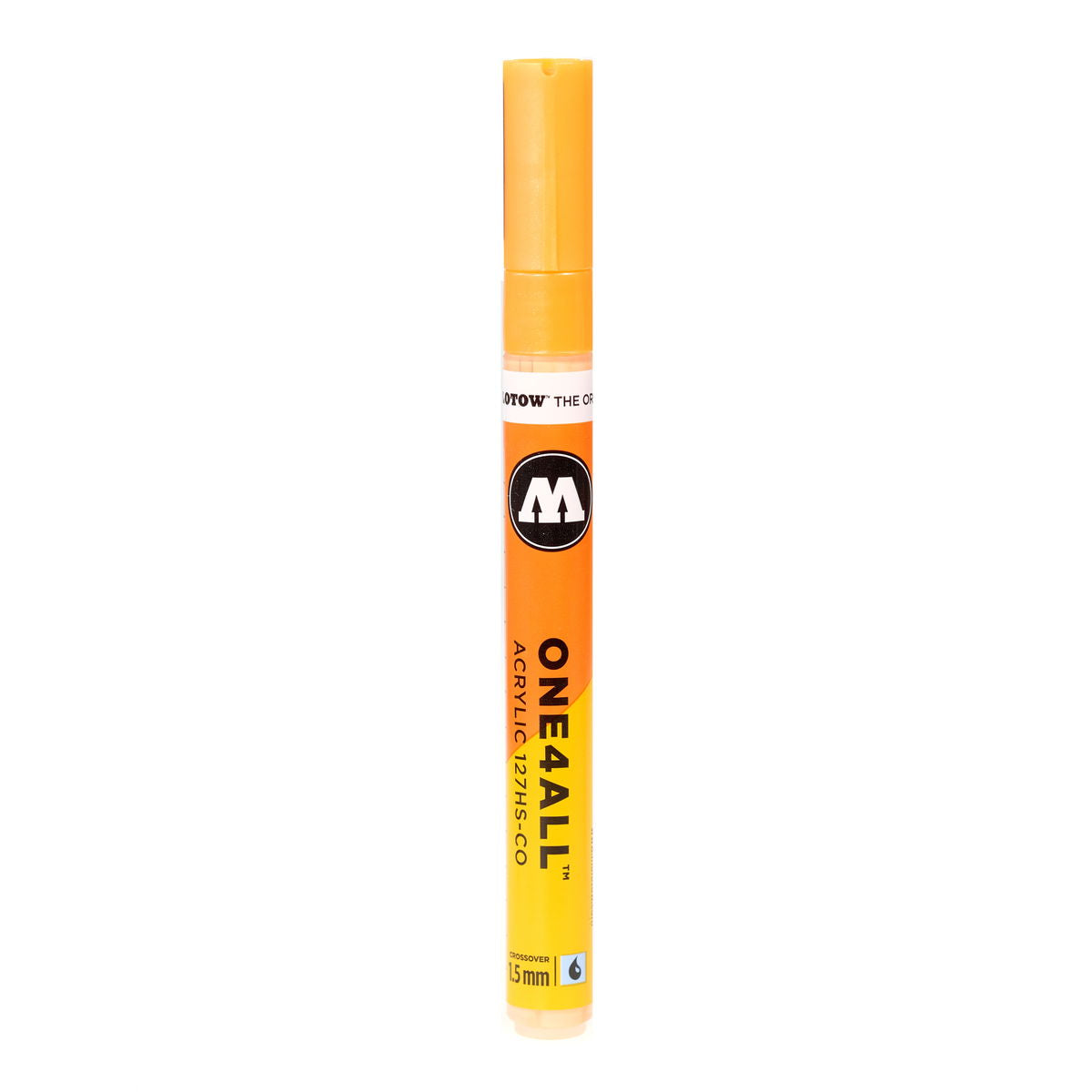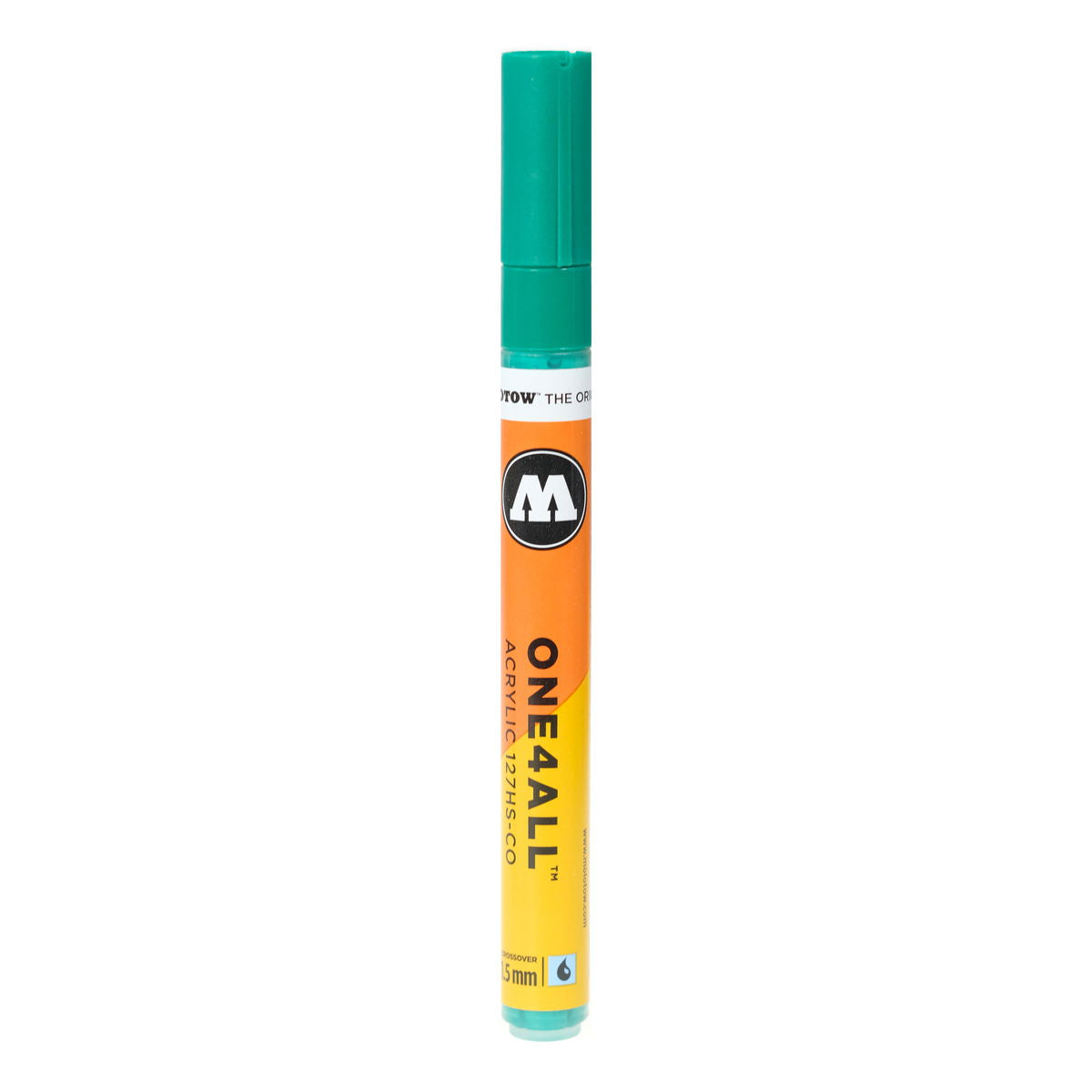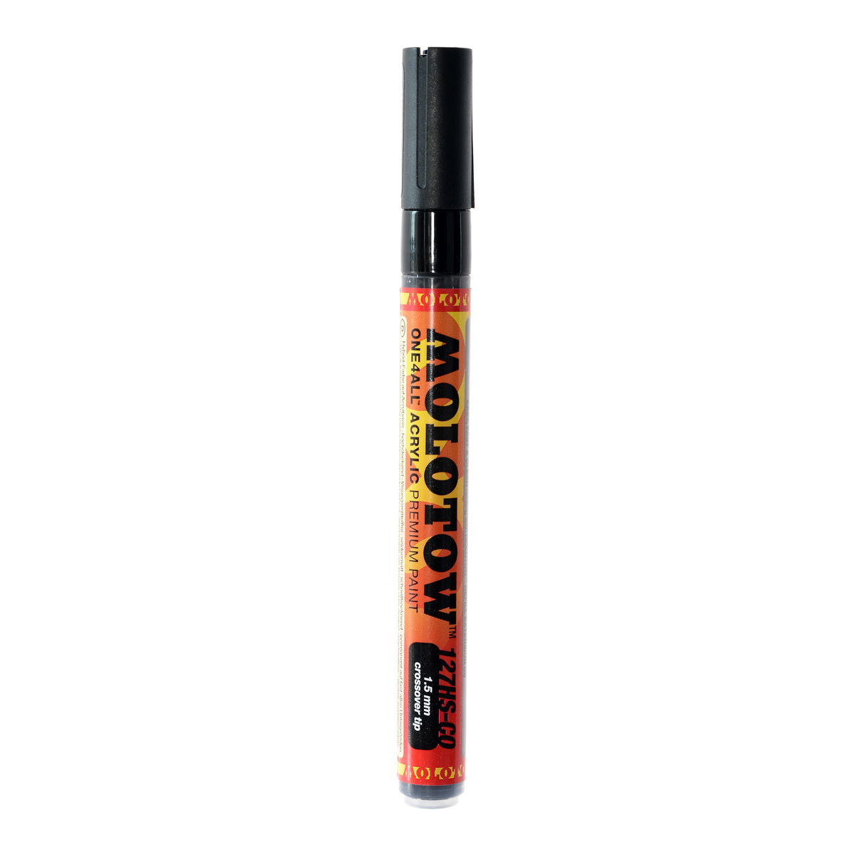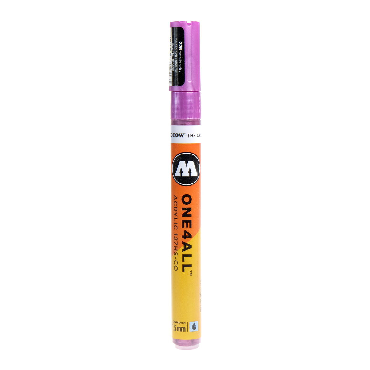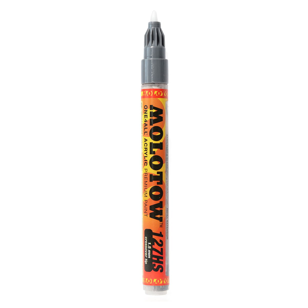 The Molotow One4All Acrylic Paint Makers are versatile and the part of most revolutionary and innovative paint system worldwide. The highly pigmented, solvent free acrylic-based hybrid-paint covers nearly every surface indoor and outdoor. Features include: exchangeable tips, dilutable with water or acetone, patented capillary technology, Flowmaster pump-valve, mixing balls, high-tight cap with rolling stop, refillable with One4All refills, high-covering and UV resistant. Available in 1 mm extra-fine, 1.5 mm crossover, 2 mm fine, 4 mm round, and 15 mm standard size nibs. With a variety of 50 fantastic colors, these markers are the perfect tool for creating hip urban art and much more.