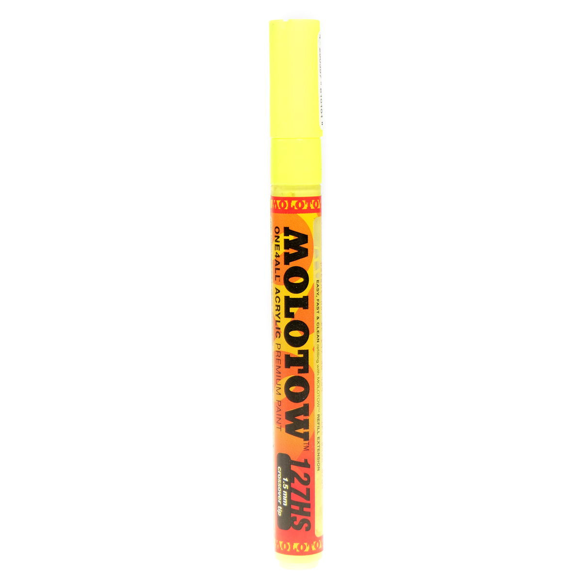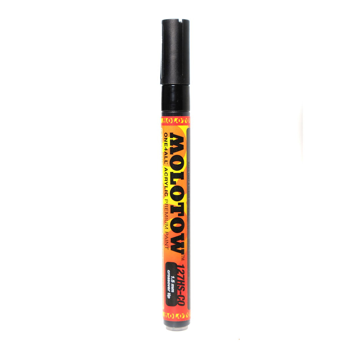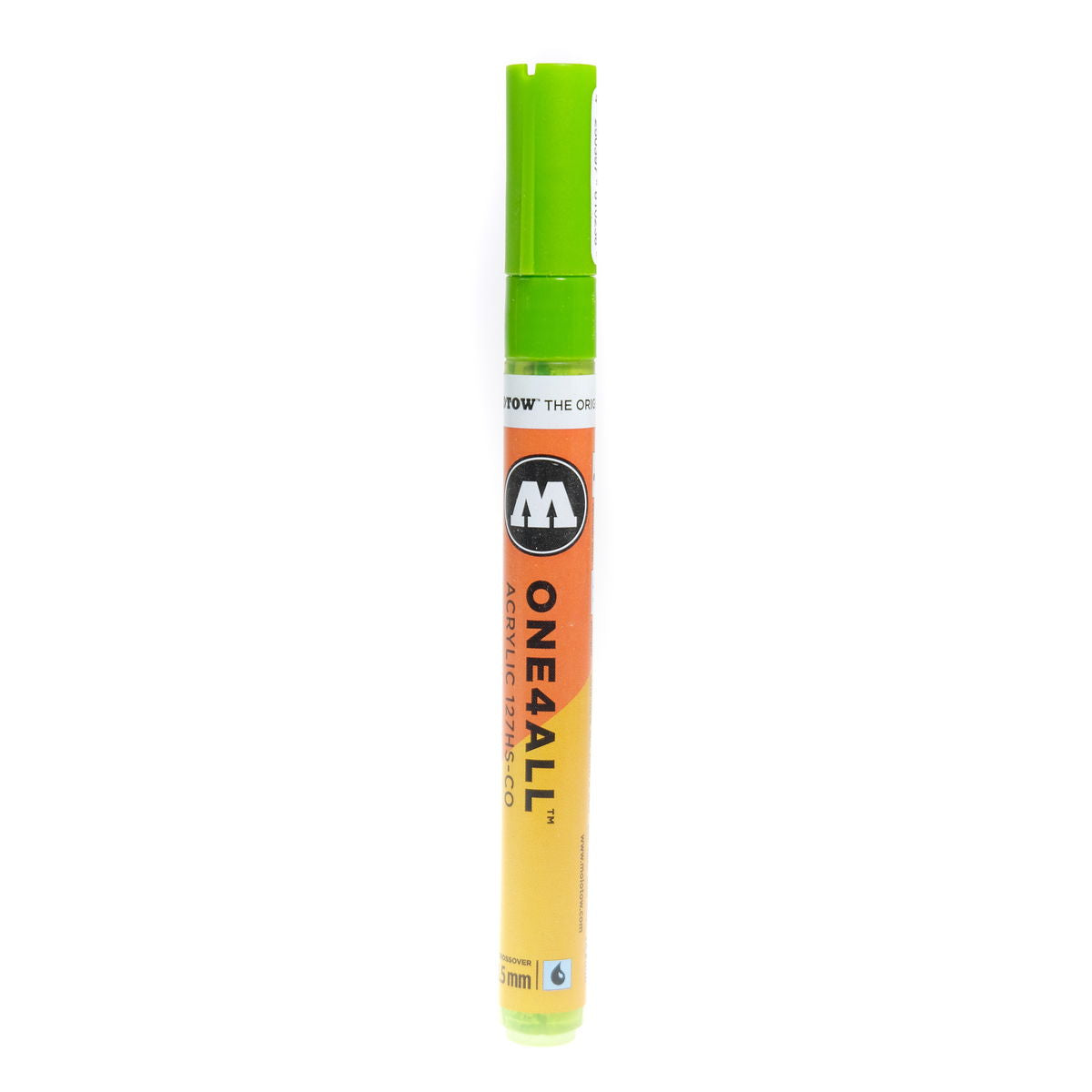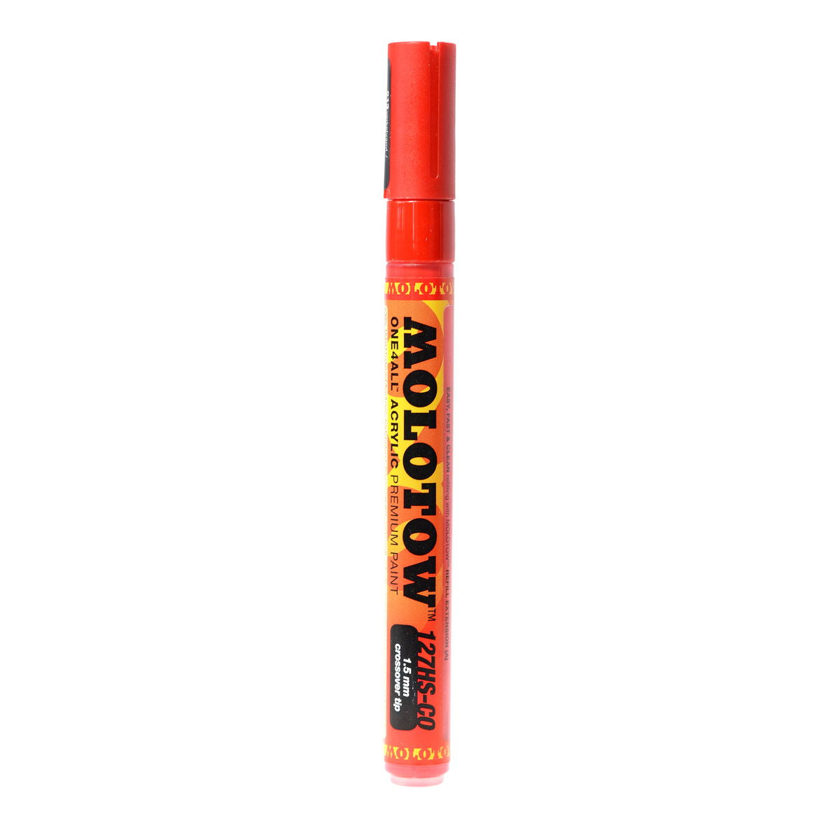 The Molotow One4All Acrylic Paint Makers are versatile and the part of most revolutionary and innovative paint system worldwide. The highly pigmented, solvent free acrylic-based hybrid-paint covers nearly every surface indoor and outdoor. Features include: exchangeable tips, dilutable with water or acetone, patented capillary technology, Flowmaster pump-valve, mixing balls, high-tight cap with rolling stop, refillable with One4All refills, high-covering and UV resistant. Available in 1 mm extra-fine, 1.5 mm crossover, 2 mm fine, 4 mm round, and 15 mm standard size nibs. With a variety of 50 fantastic colors, these markers are the perfect tool for creating hip urban art and much more.