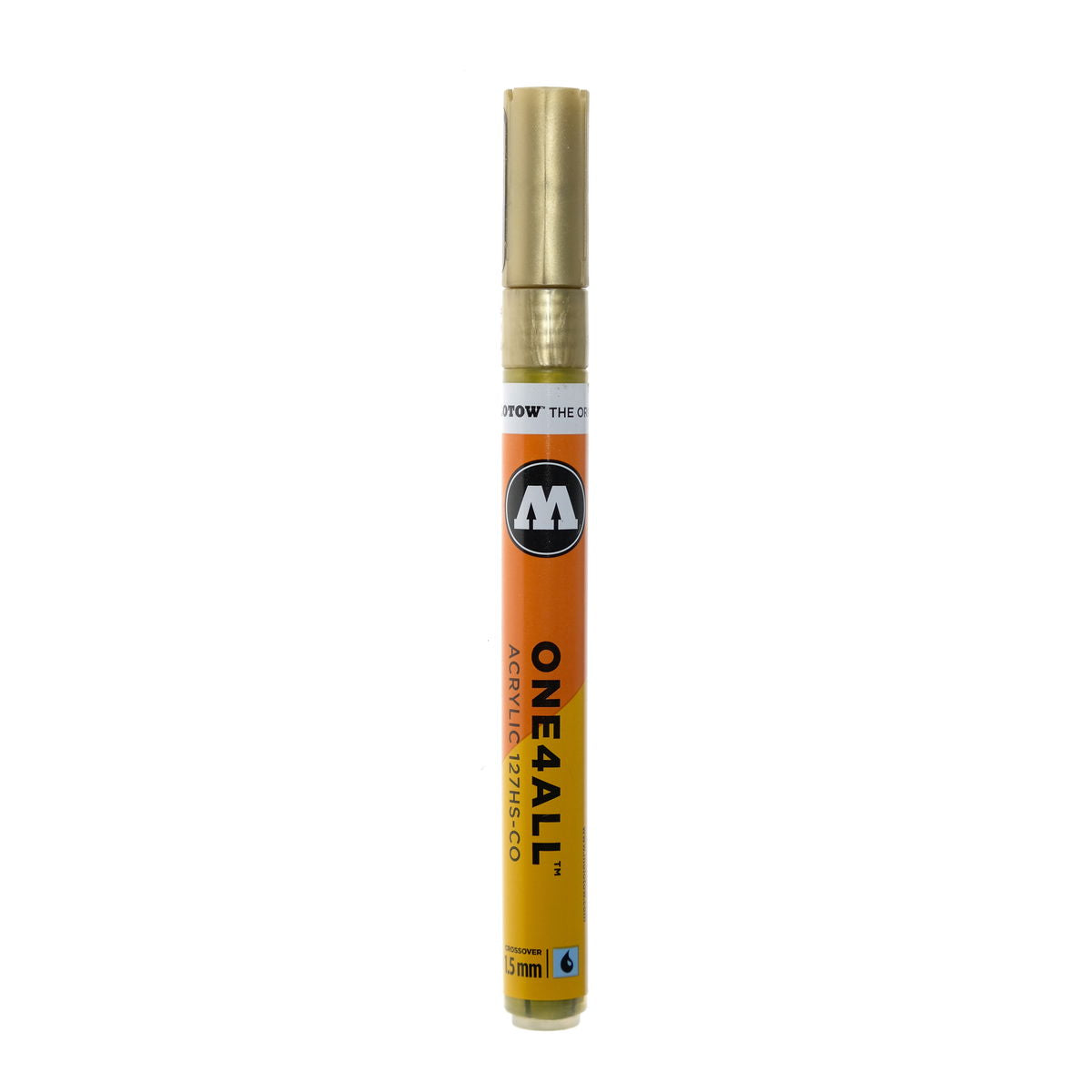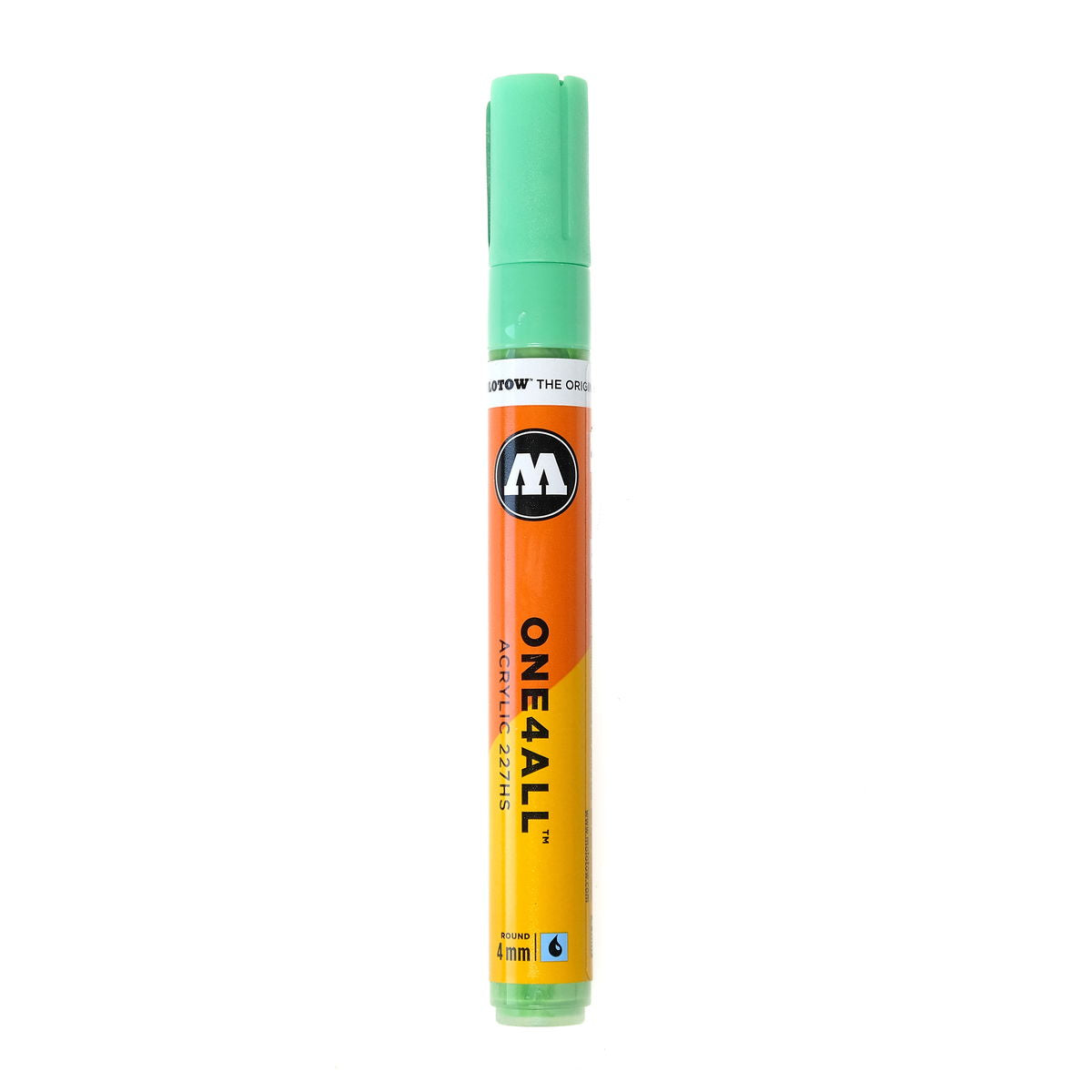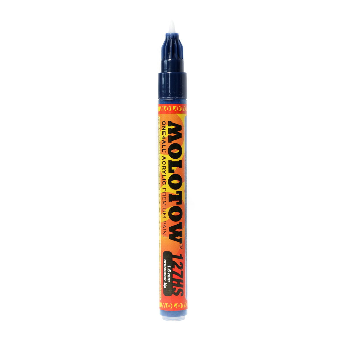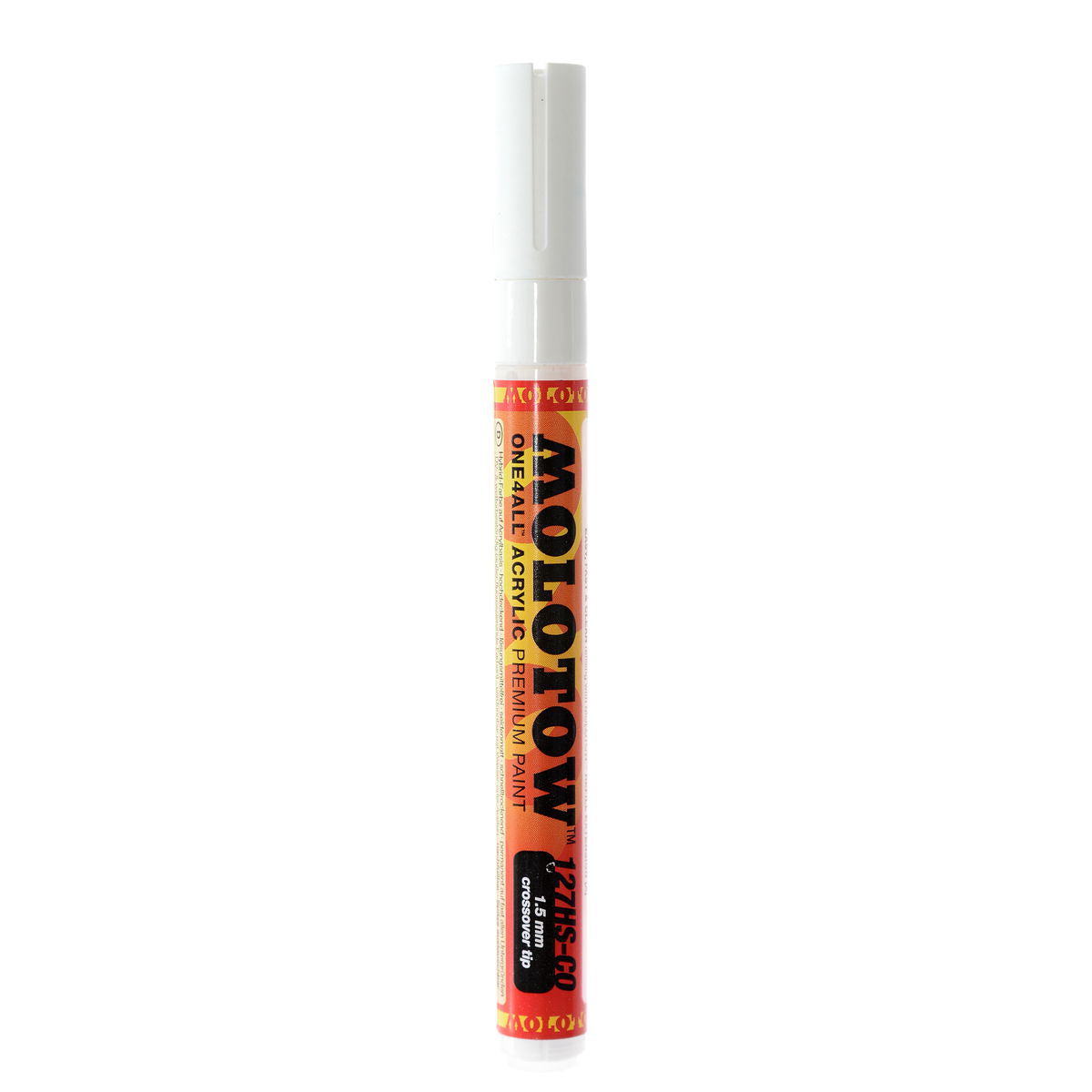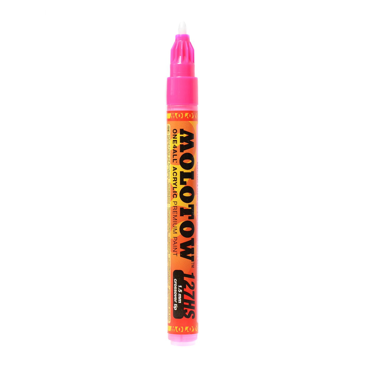 The Molotow One4All Acrylic Paint Makers are versatile and the part of most revolutionary and innovative paint system worldwide. The highly pigmented, solvent free acrylic-based hybrid-paint covers nearly every surface indoor and outdoor. Features include: exchangeable tips, dilutable with water or acetone, patented capillary technology, Flowmaster pump-valve, mixing balls, high-tight cap with rolling stop, refillable with One4All refills, high-covering and UV resistant. Available in 1 mm extra-fine, 1.5 mm crossover, 2 mm fine, 4 mm round, and 15 mm standard size nibs. With a variety of 50 fantastic colors, these markers are the perfect tool for creating hip urban art and much more.