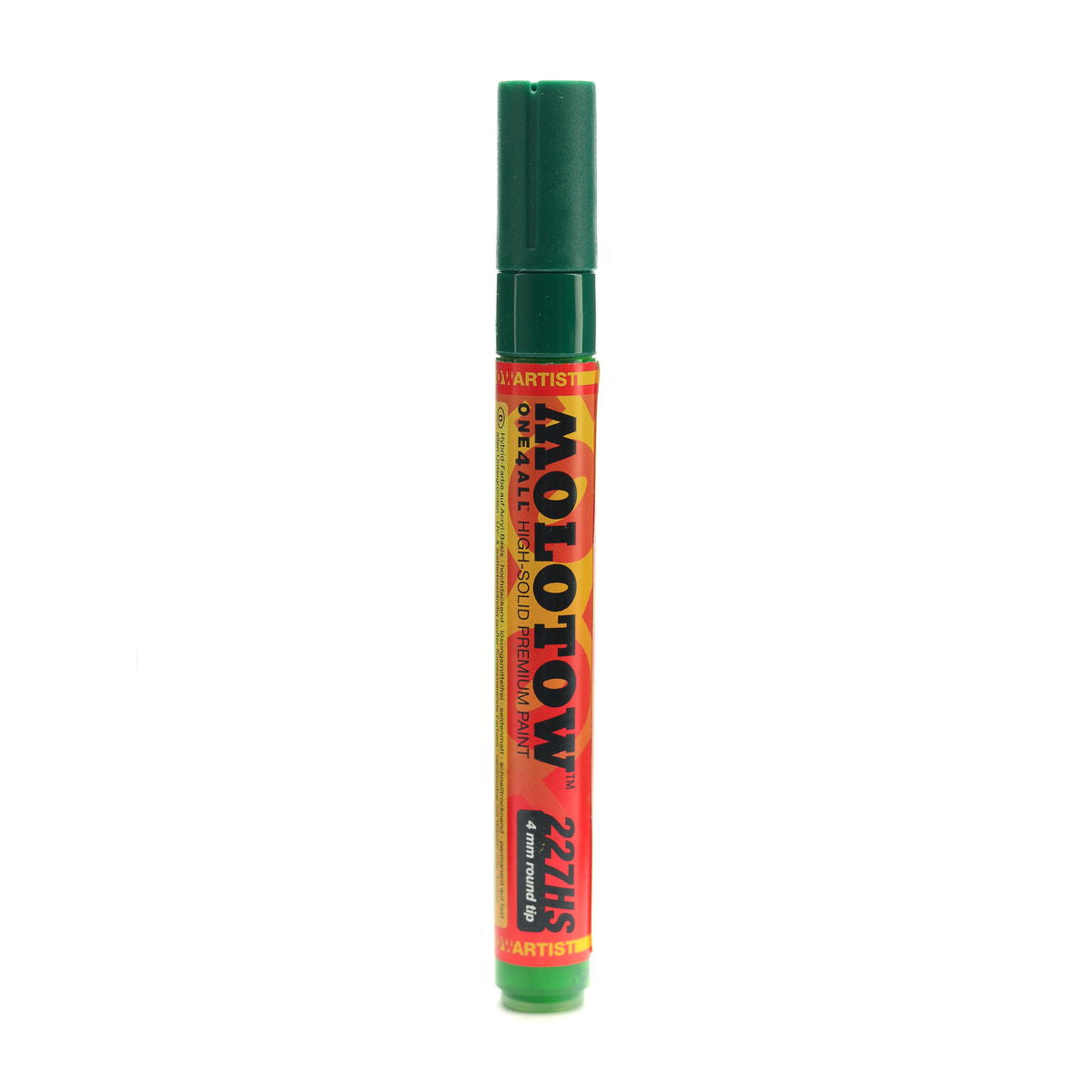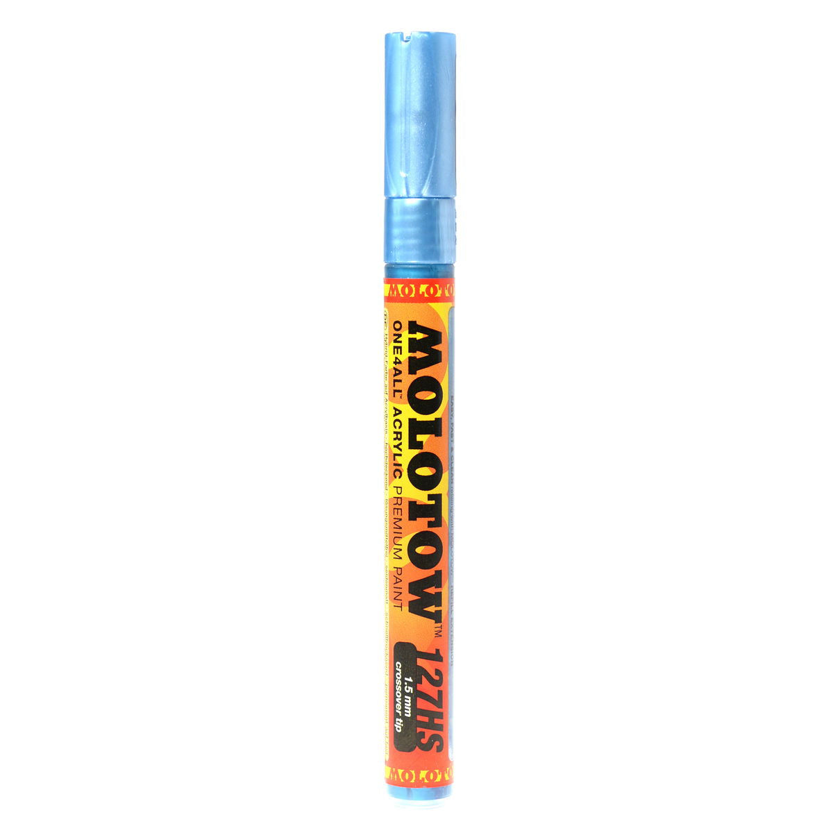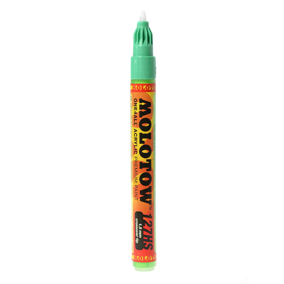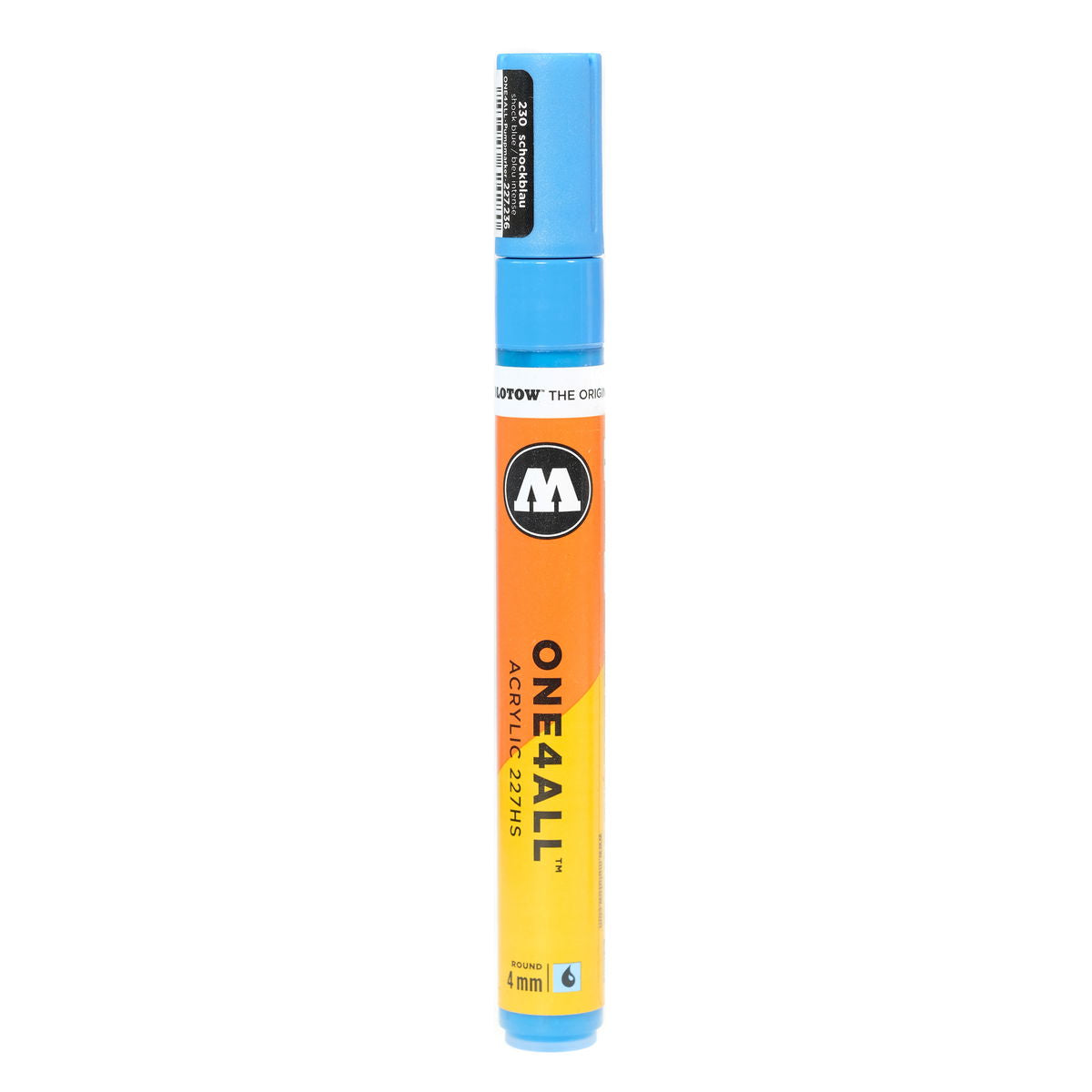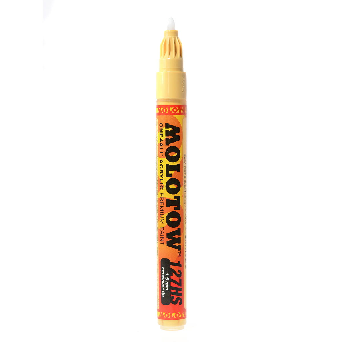 The Molotow One4All Acrylic Paint Makers are versatile and the part of most revolutionary and innovative paint system worldwide. The highly pigmented, solvent free acrylic-based hybrid-paint covers nearly every surface indoor and outdoor. Features include: exchangeable tips, dilutable with water or acetone, patented capillary technology, Flowmaster pump-valve, mixing balls, high-tight cap with rolling stop, refillable with One4All refills, high-covering and UV resistant. Available in 1 mm extra-fine, 1.5 mm crossover, 2 mm fine, 4 mm round, and 15 mm standard size nibs. With a variety of 50 fantastic colors, these markers are the perfect tool for creating hip urban art and much more.